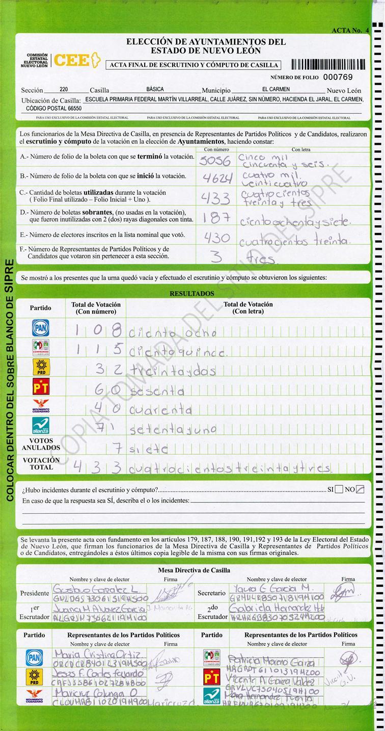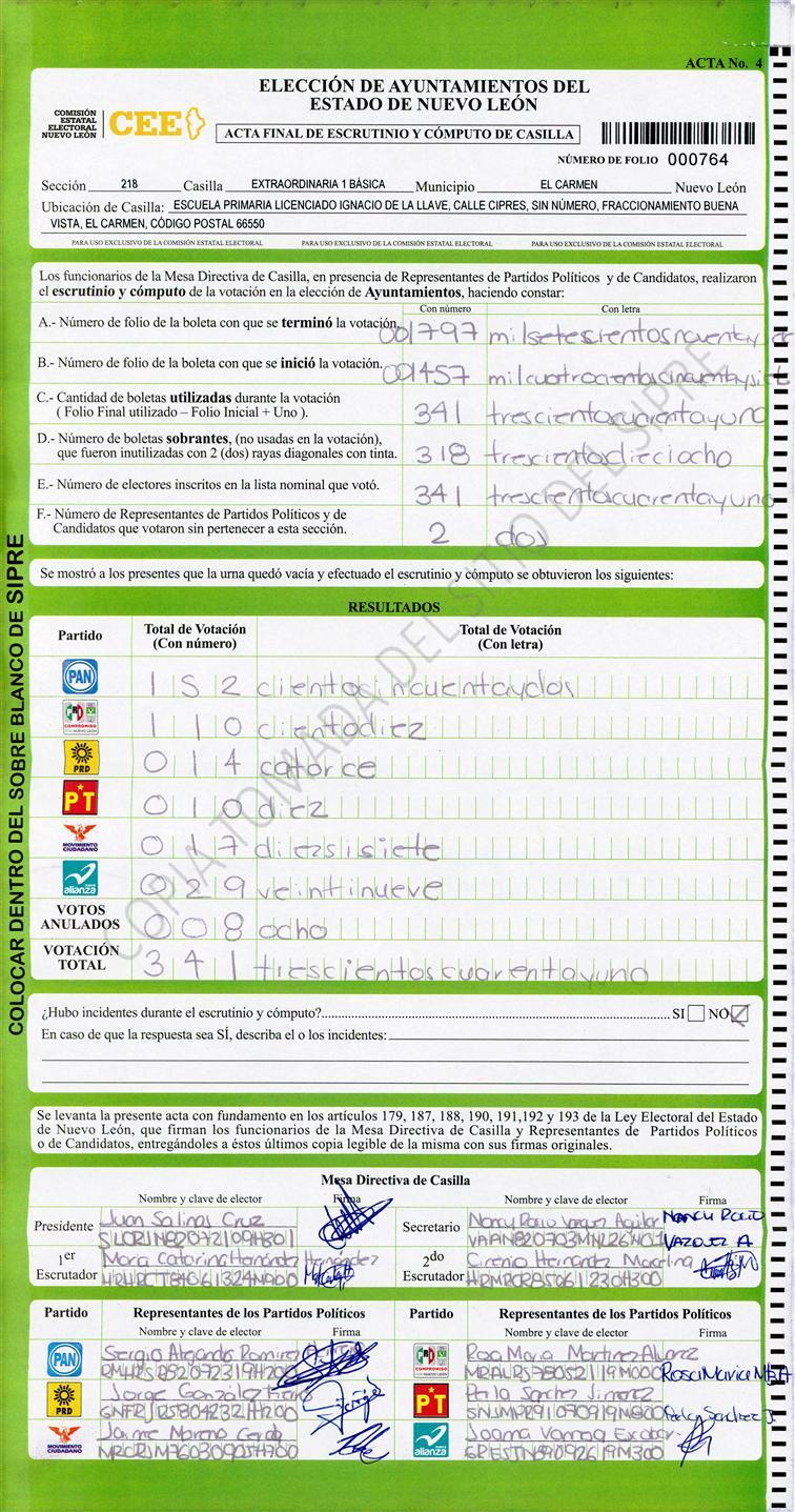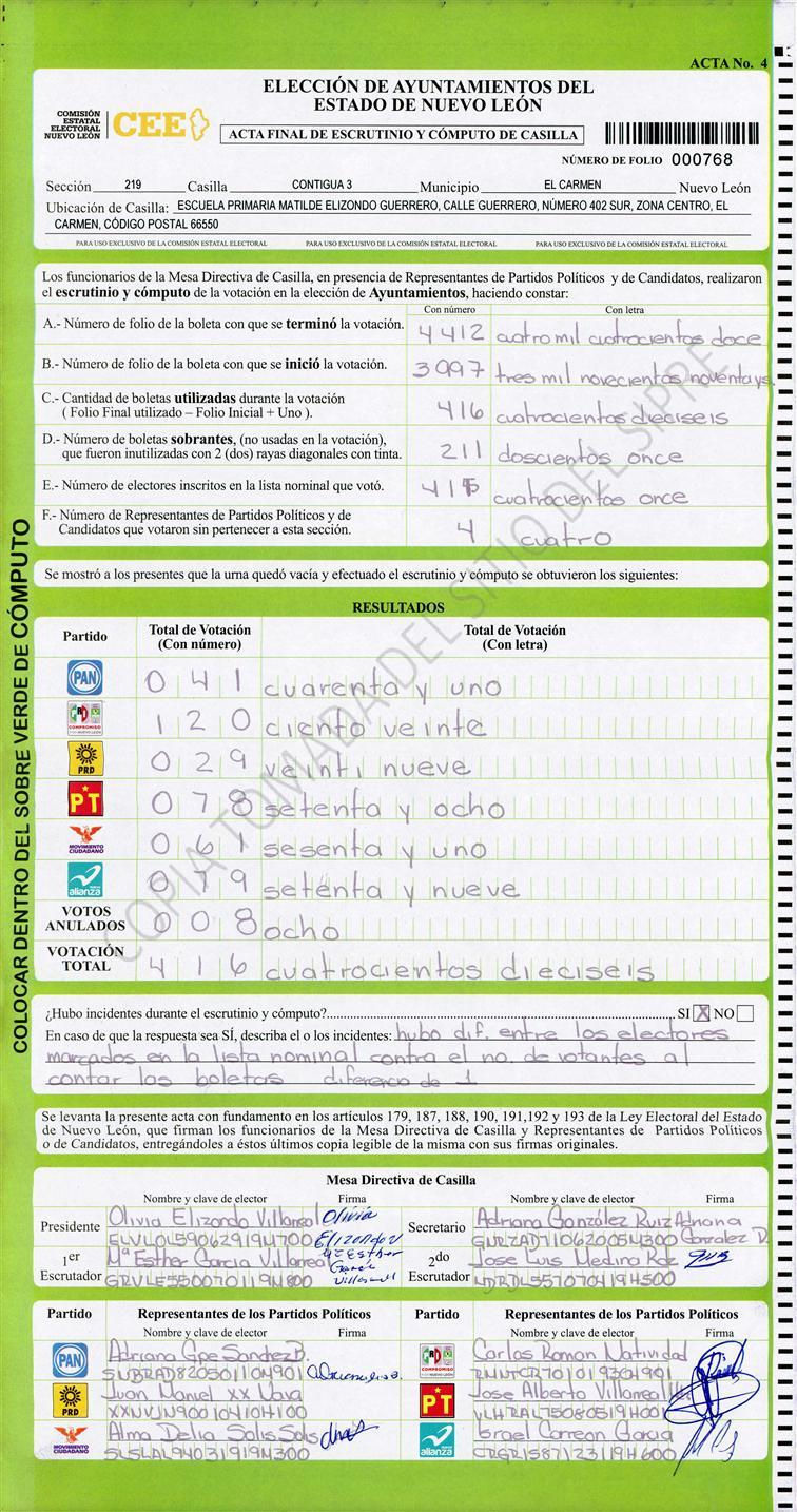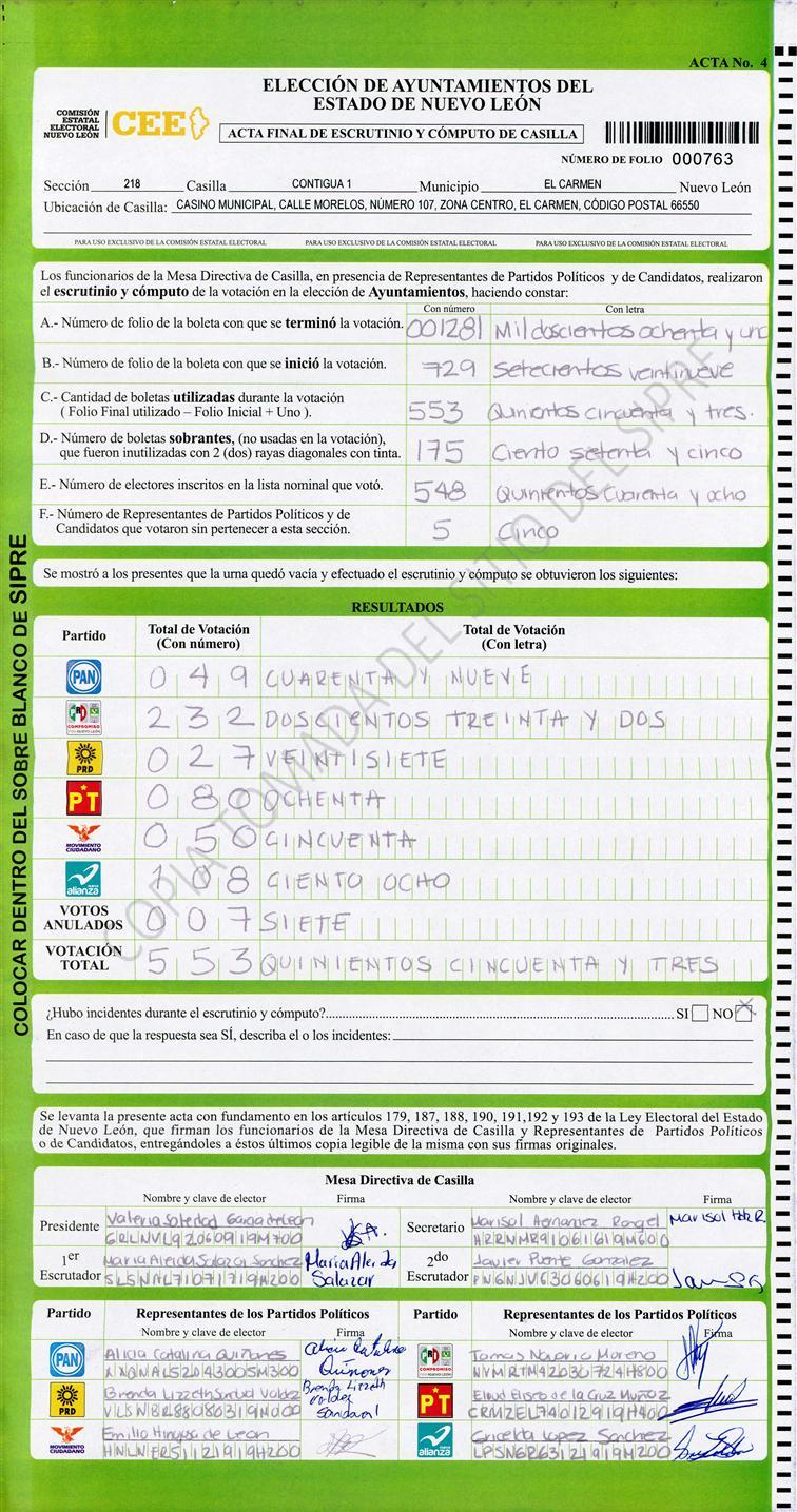 , (8) Copiado Movido , (9) Con Signos Inválidos , (10) Excede Lista Nominal , (11) Otra |