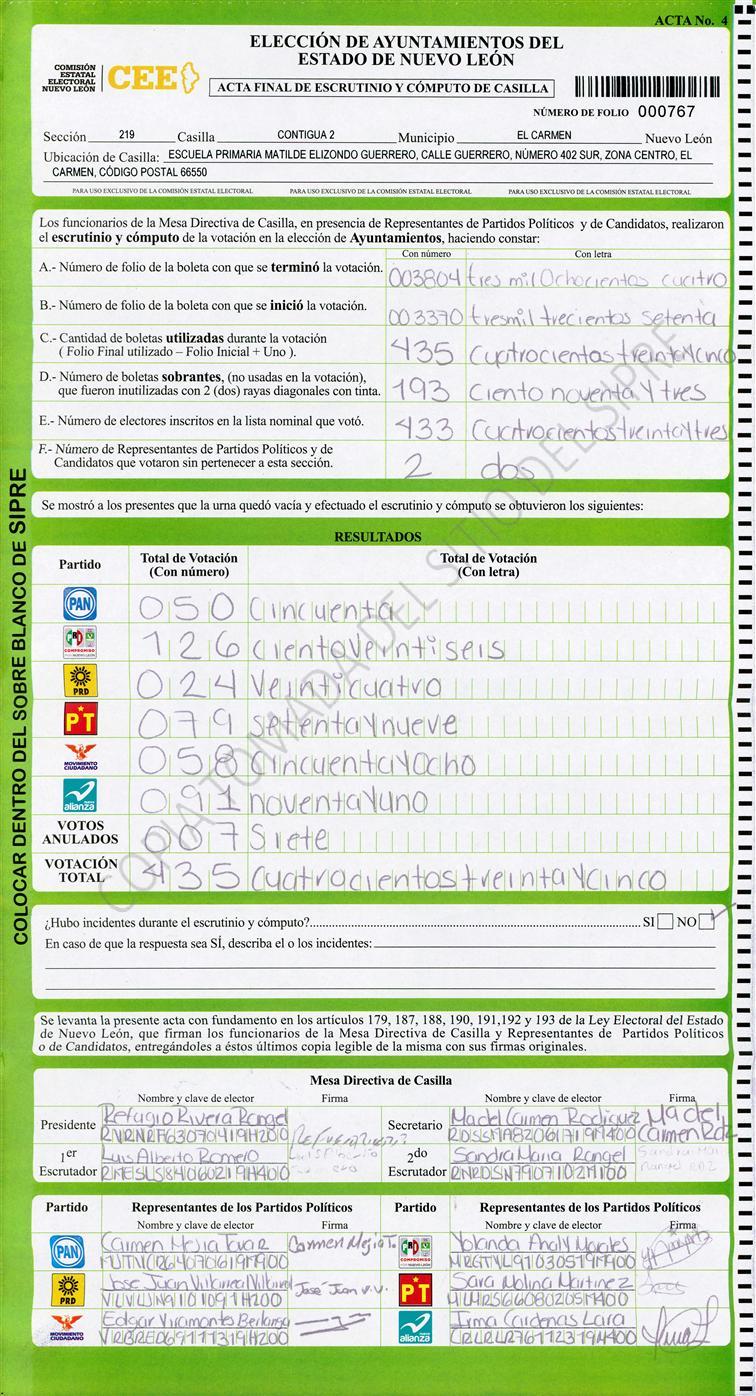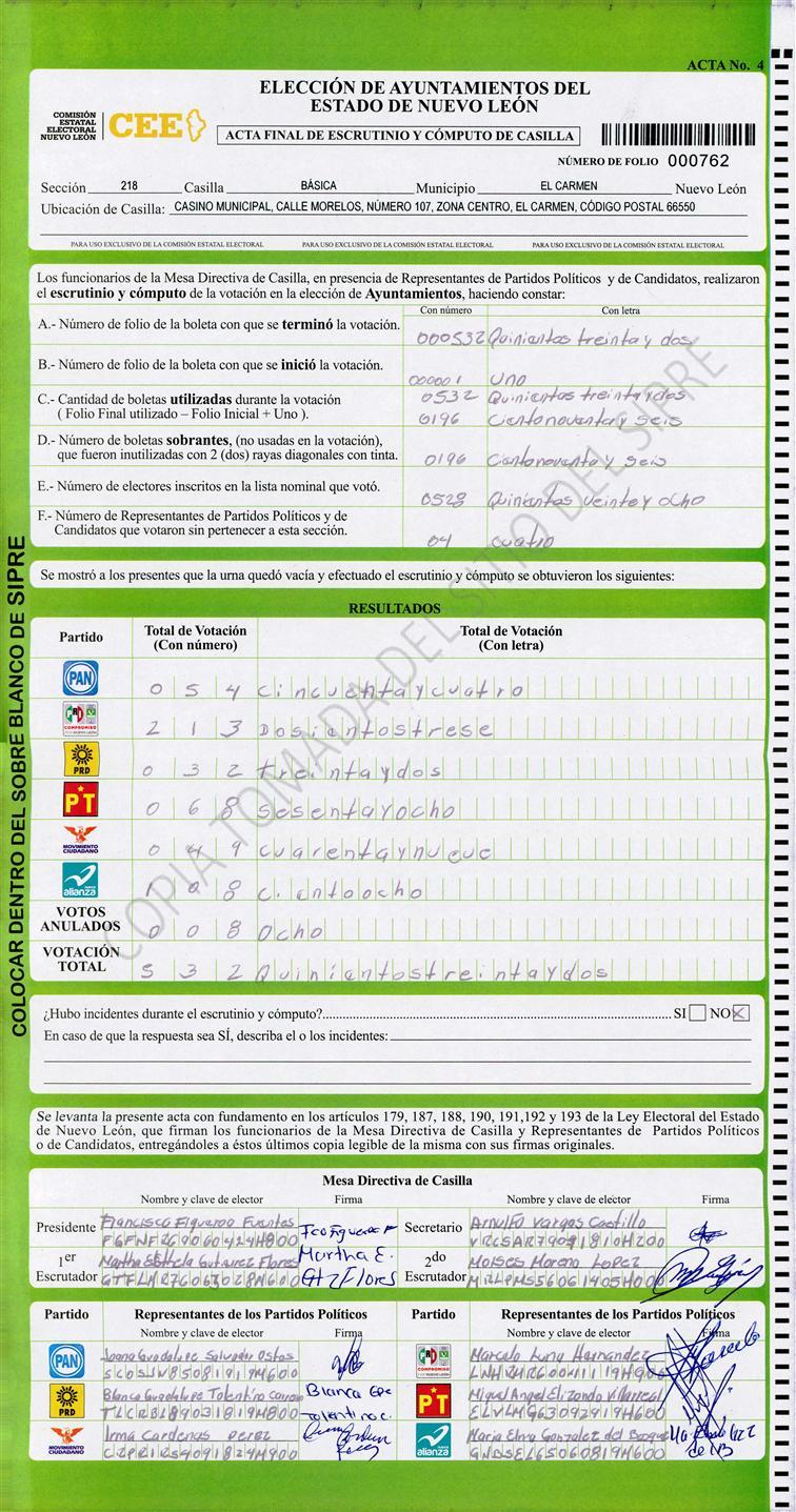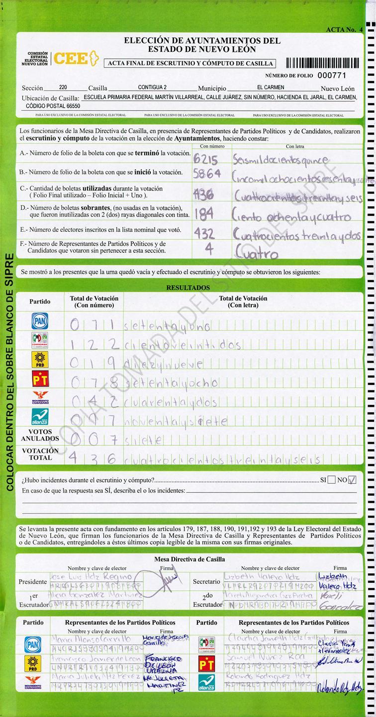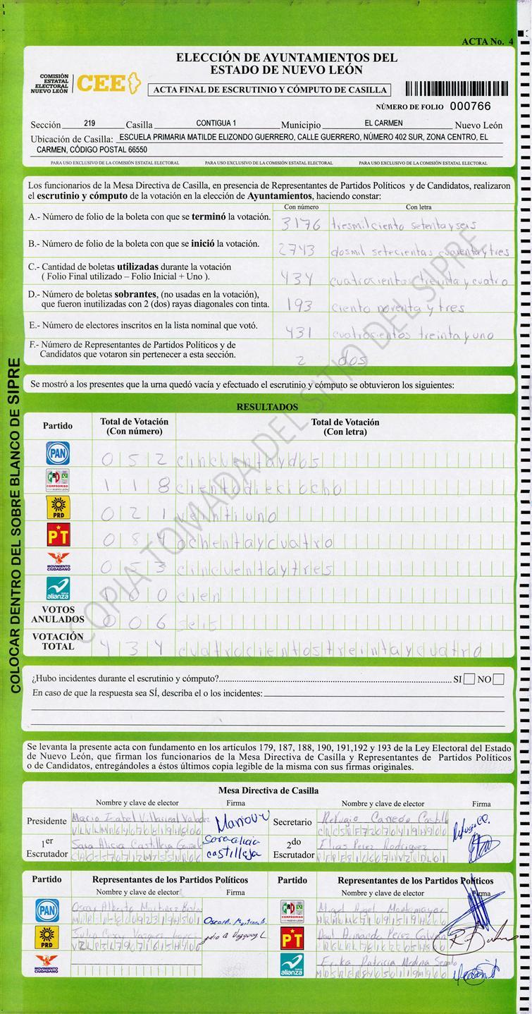 , (8) Copiado Movido , (9) Con Signos Inválidos , (10) Excede Lista Nominal , (11) Otra |