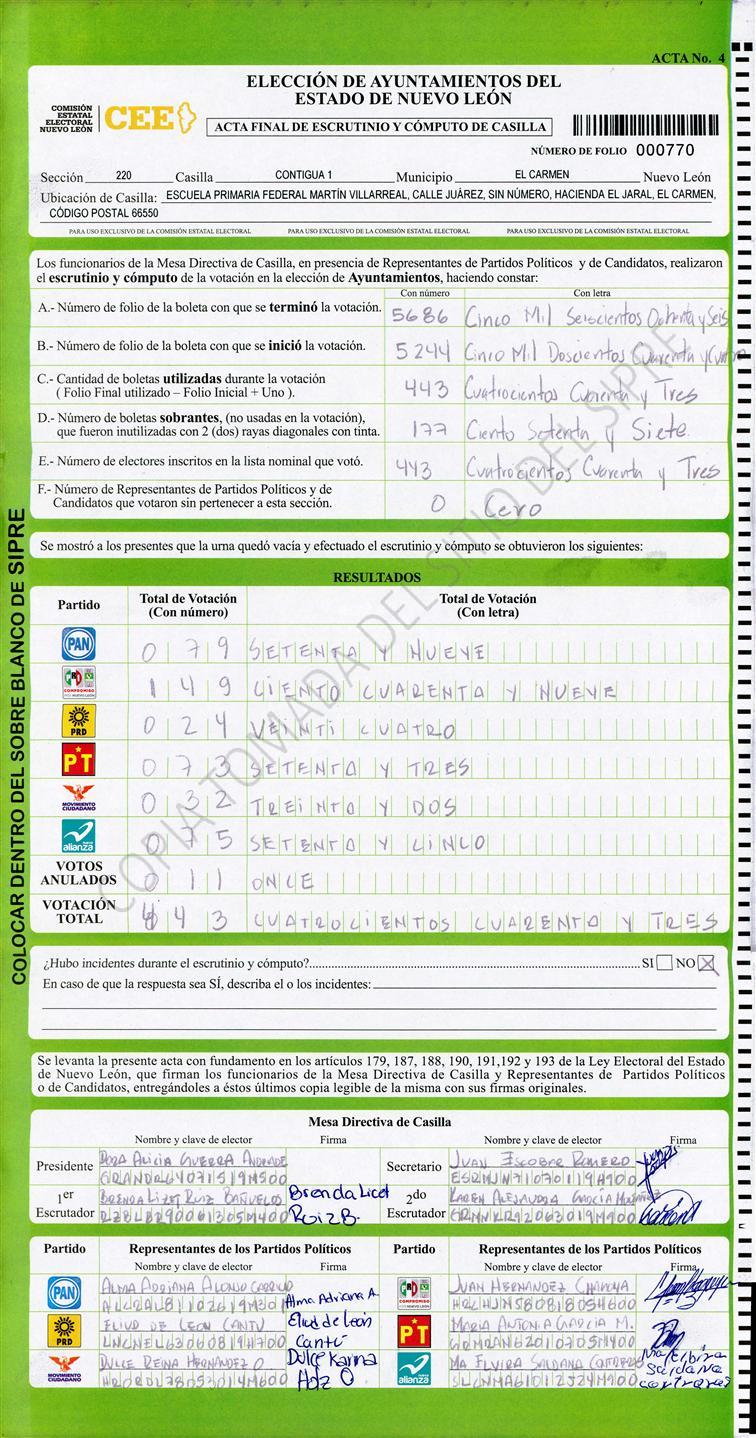 Acta con Incidencia: No hay acta |