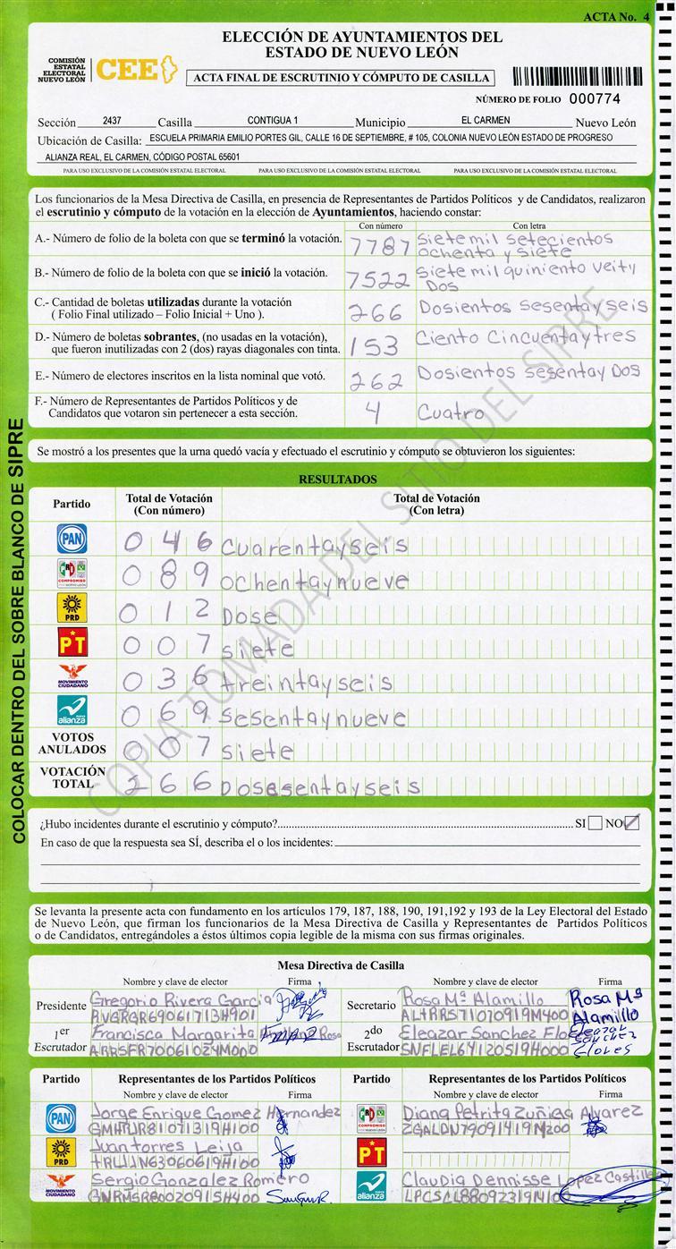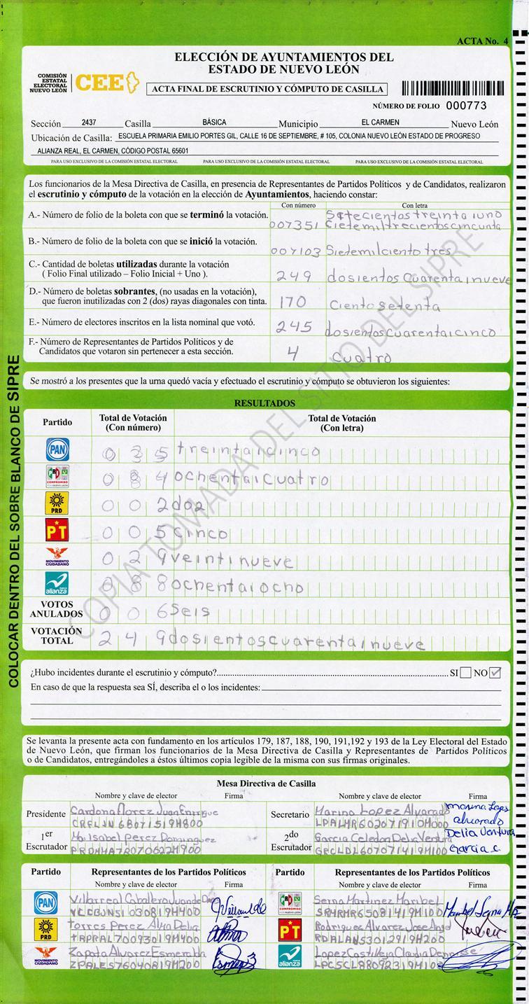 | Sección | Casilla | ![]() |