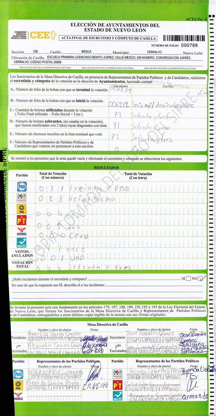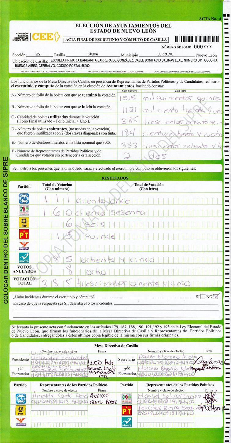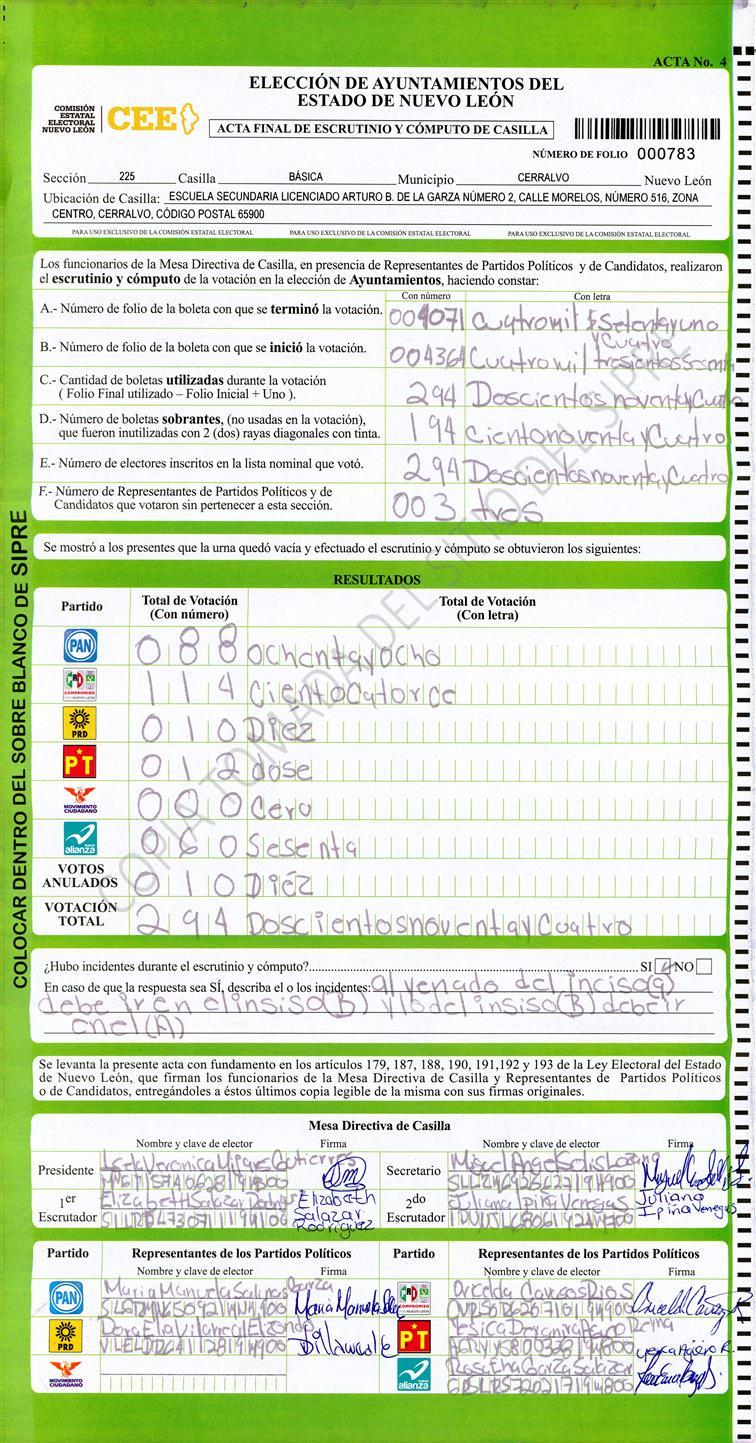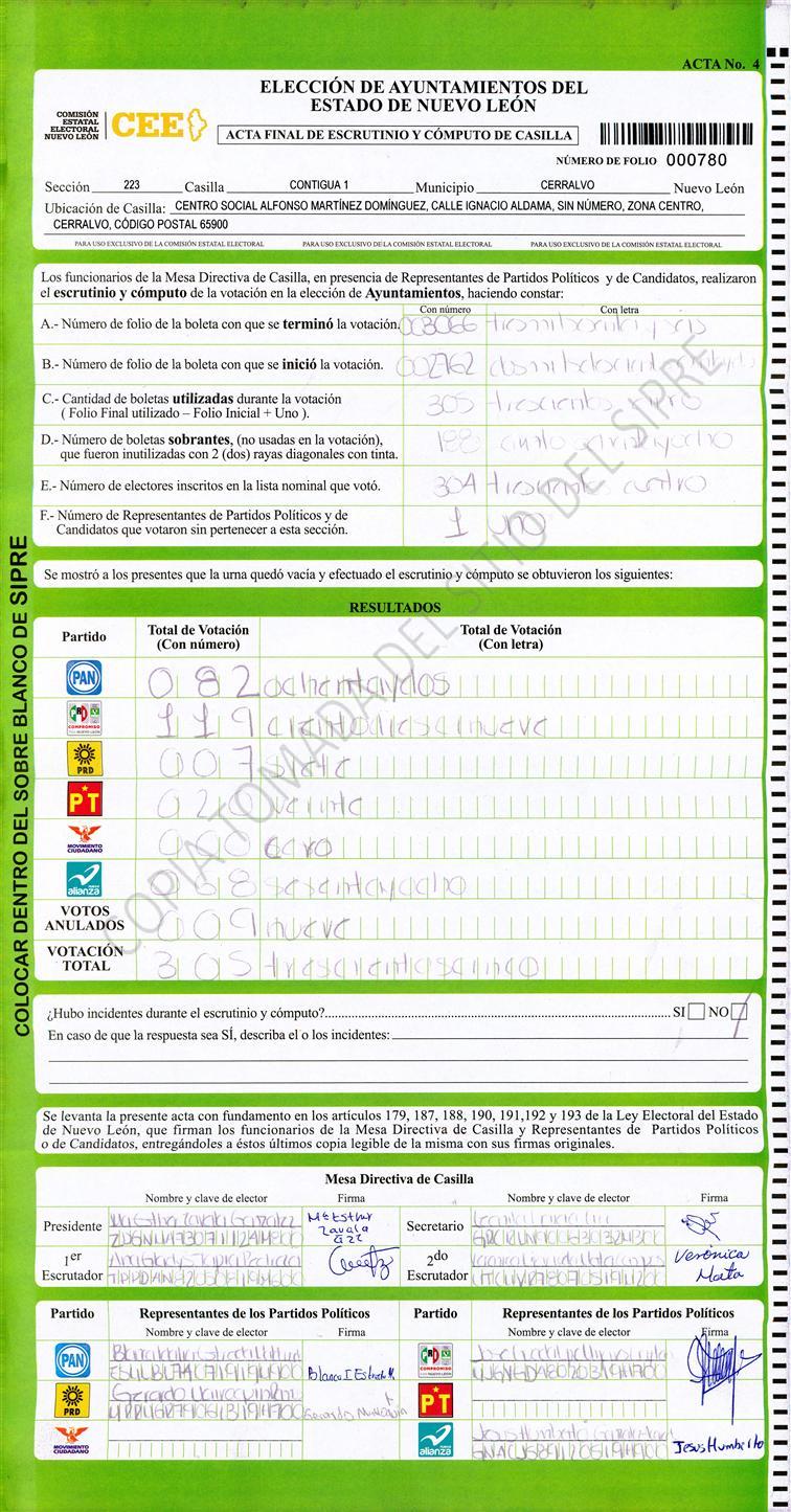 , (8) Copiado Movido , (9) Con Signos Inválidos , (10) Excede Lista Nominal , (11) Otra |