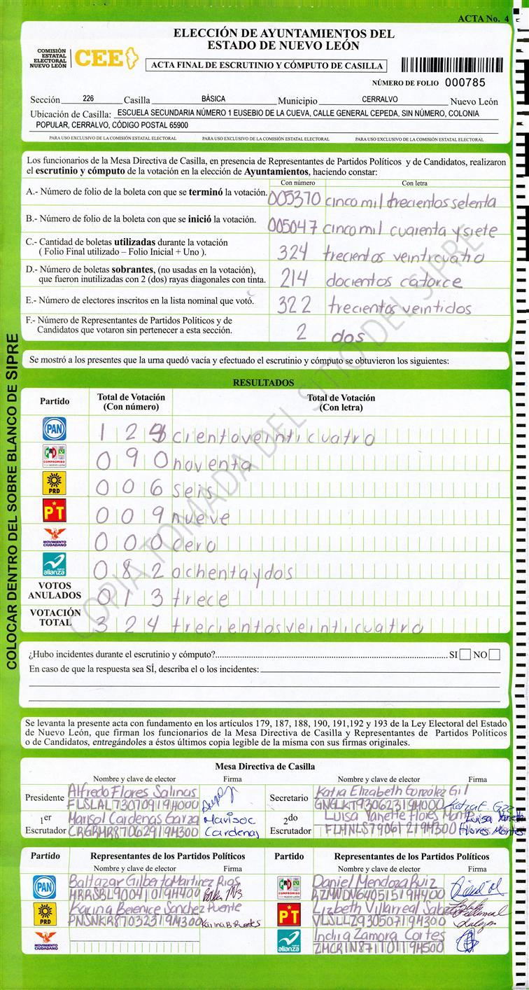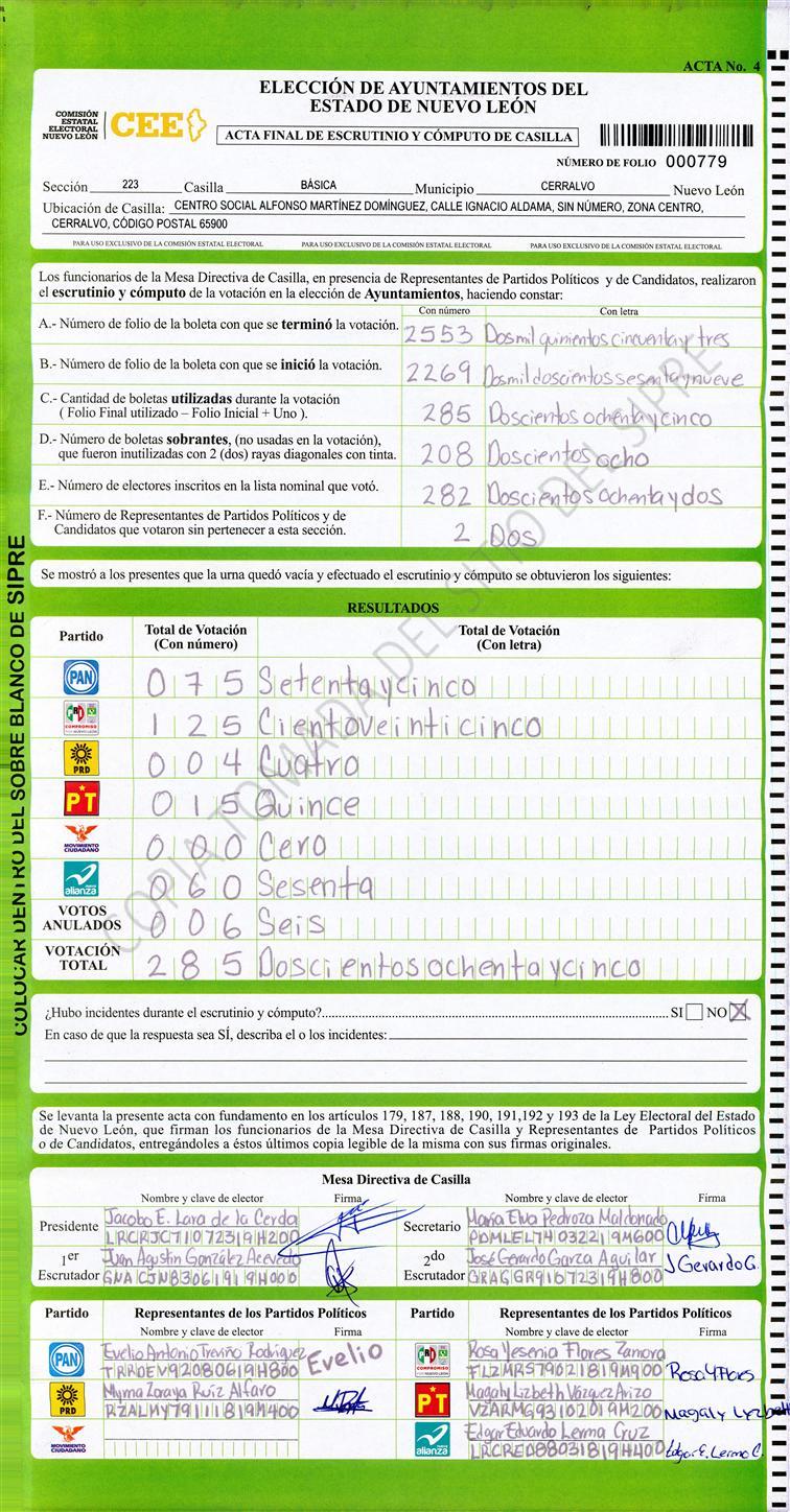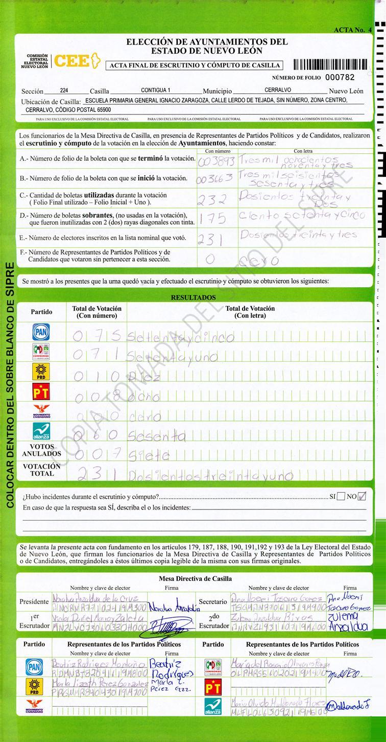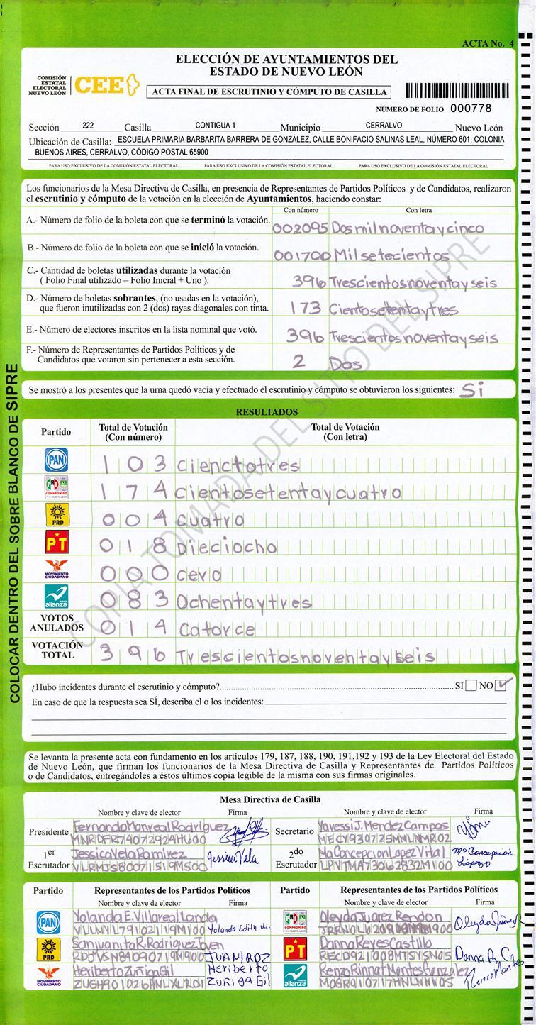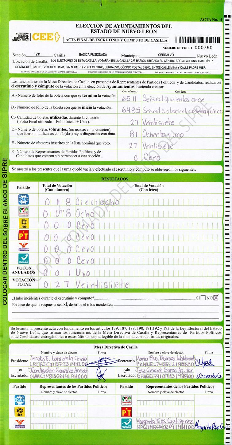 , (8) Copiado Movido , (9) Con Signos Inválidos , (10) Excede Lista Nominal , (11) Otra |