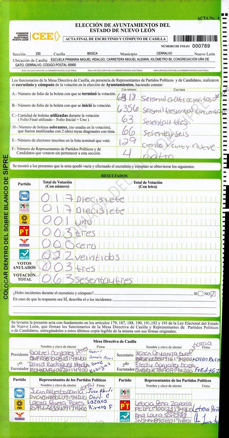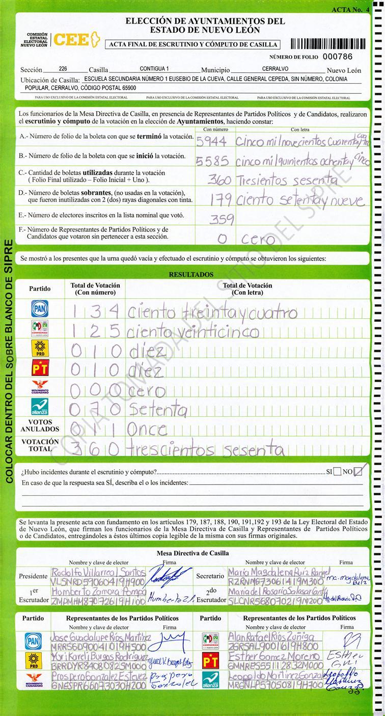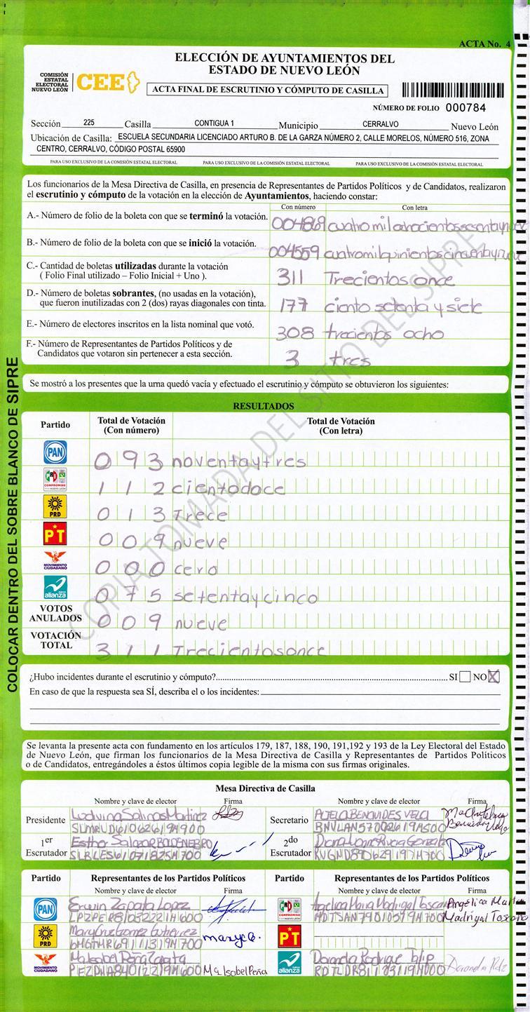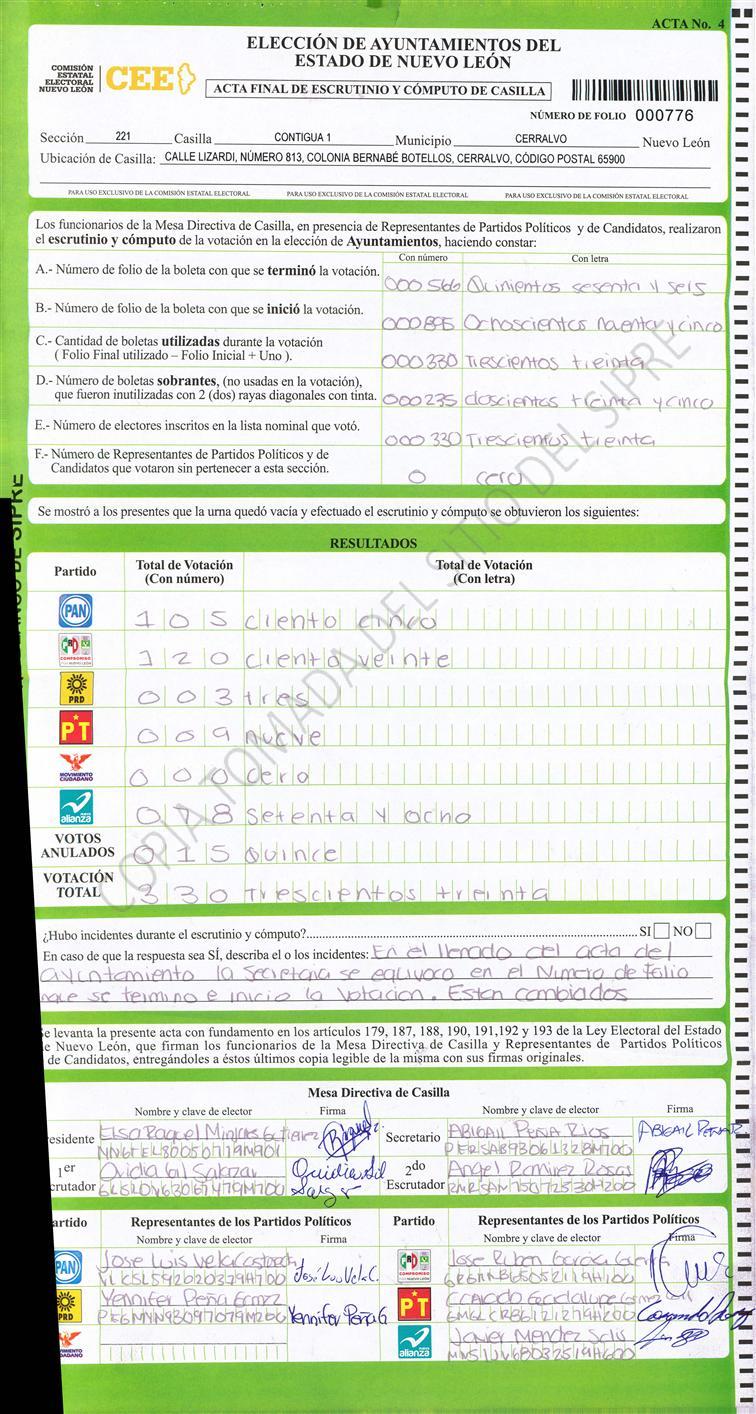 , (8) Copiado Movido , (9) Con Signos Inválidos , (10) Excede Lista Nominal , (11) Otra |