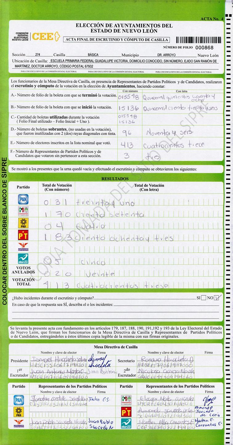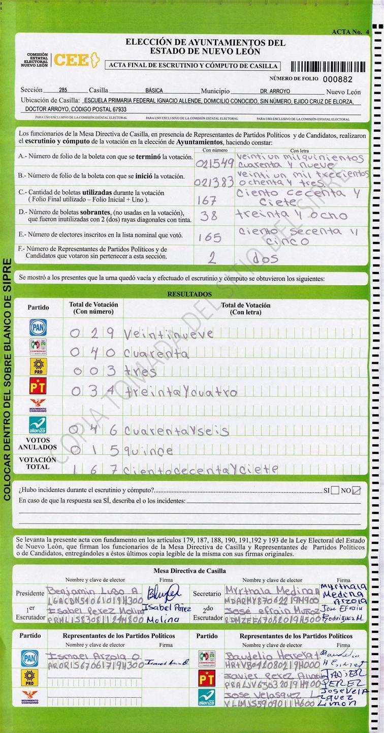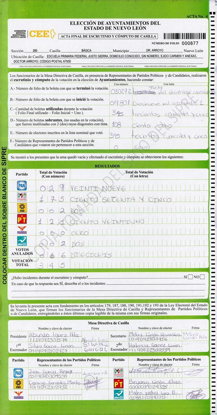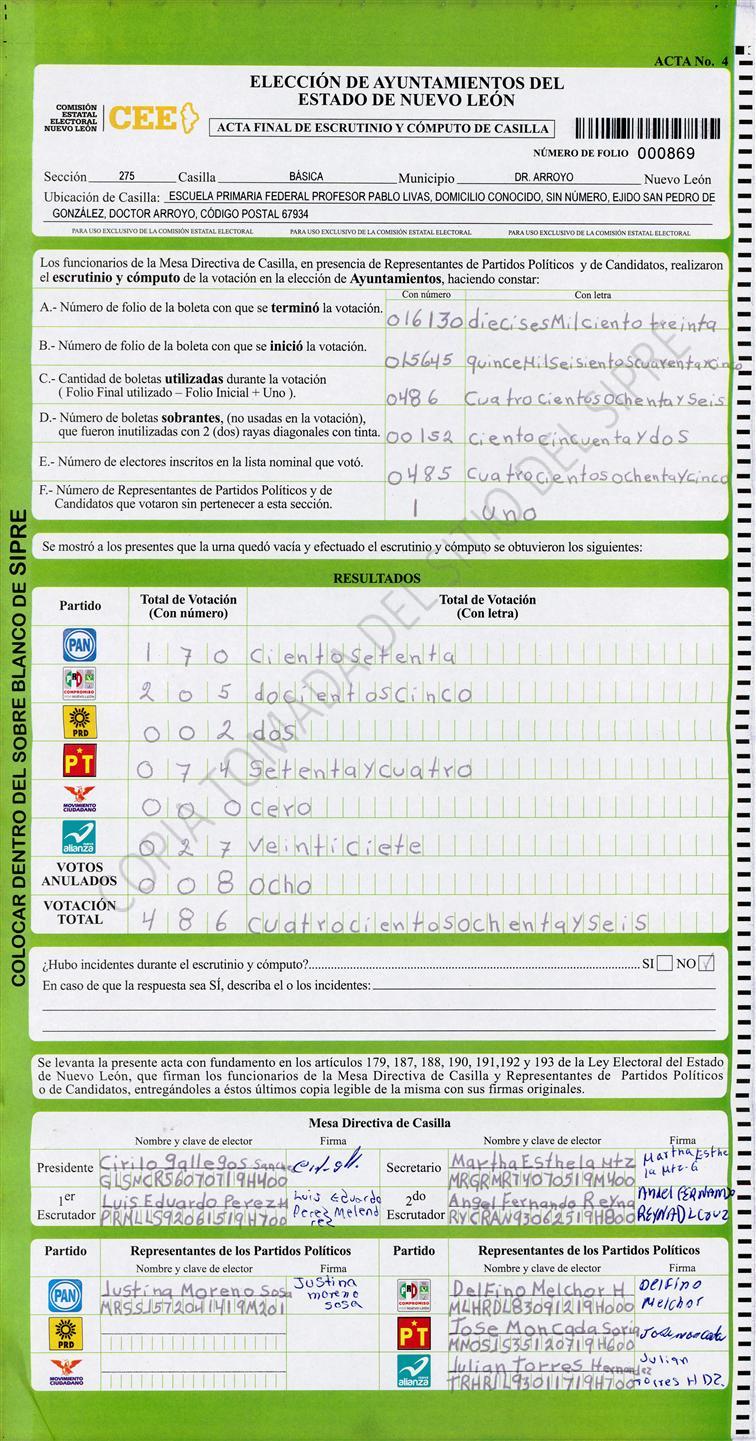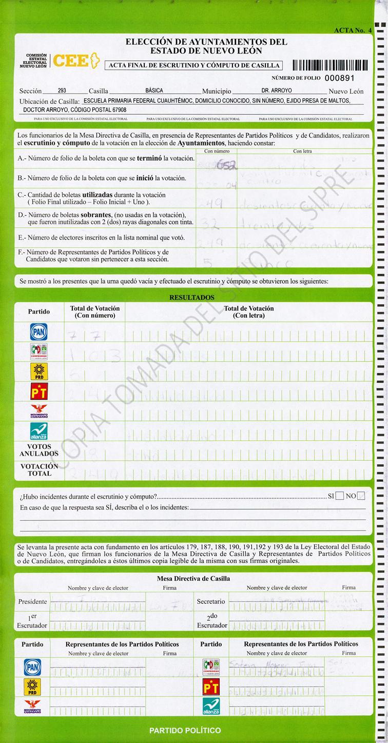 , (8) Copiado Movido , (9) Con Signos Inválidos , (10) Excede Lista Nominal , (11) Otra |