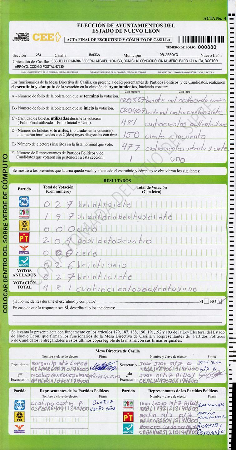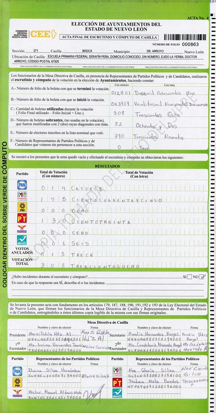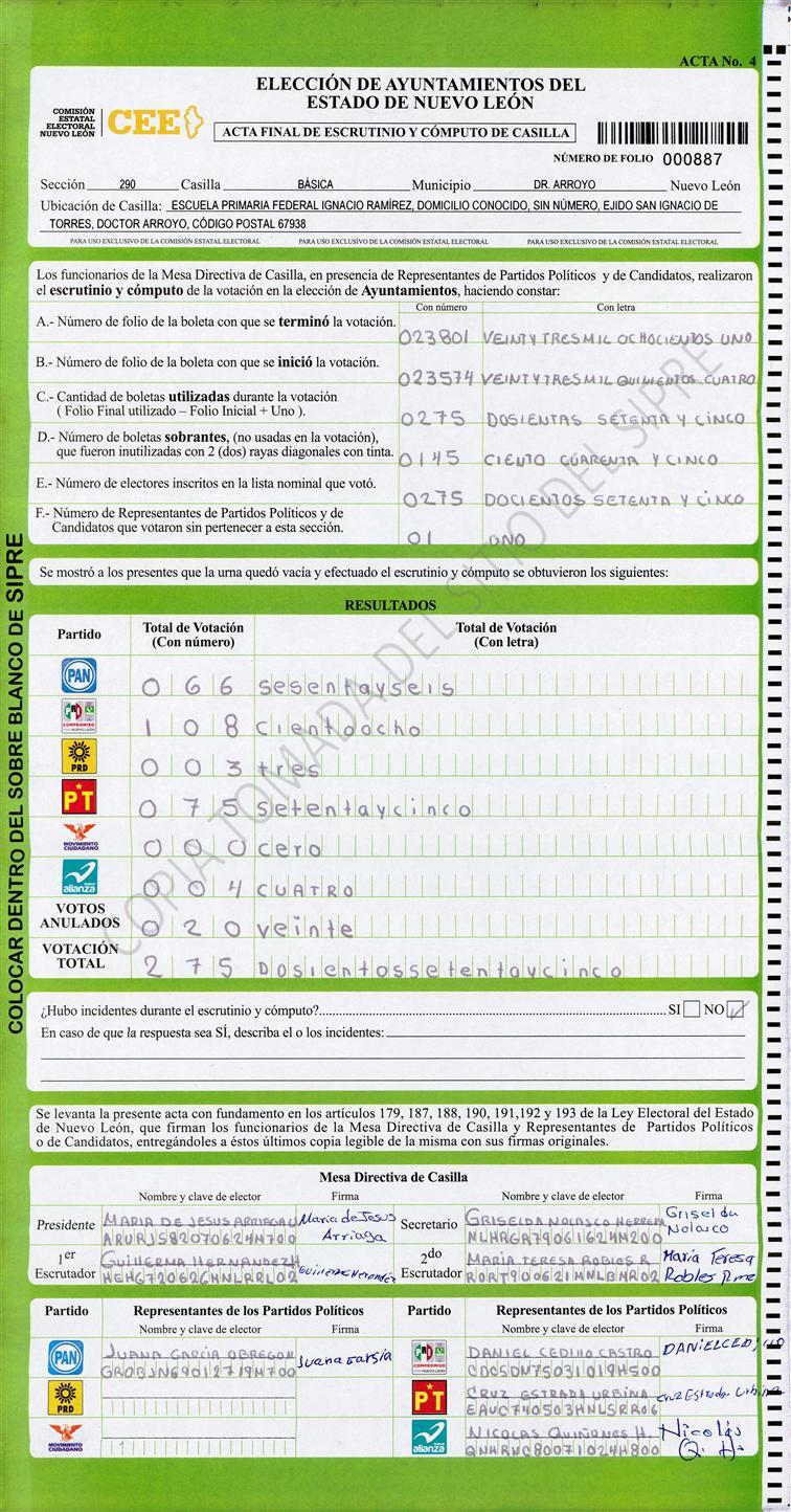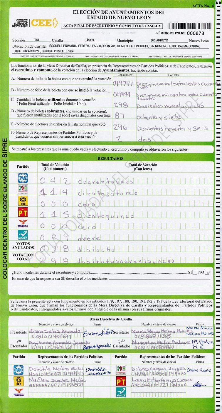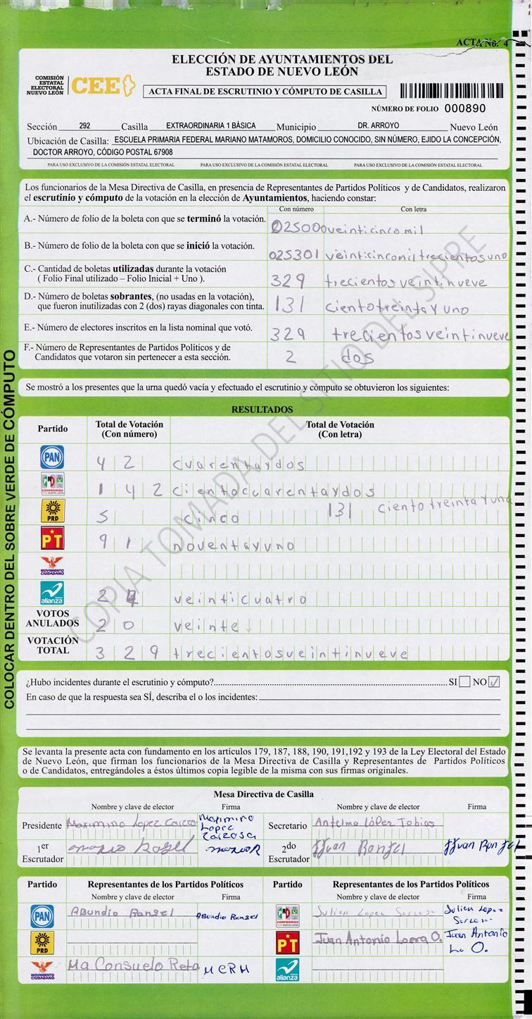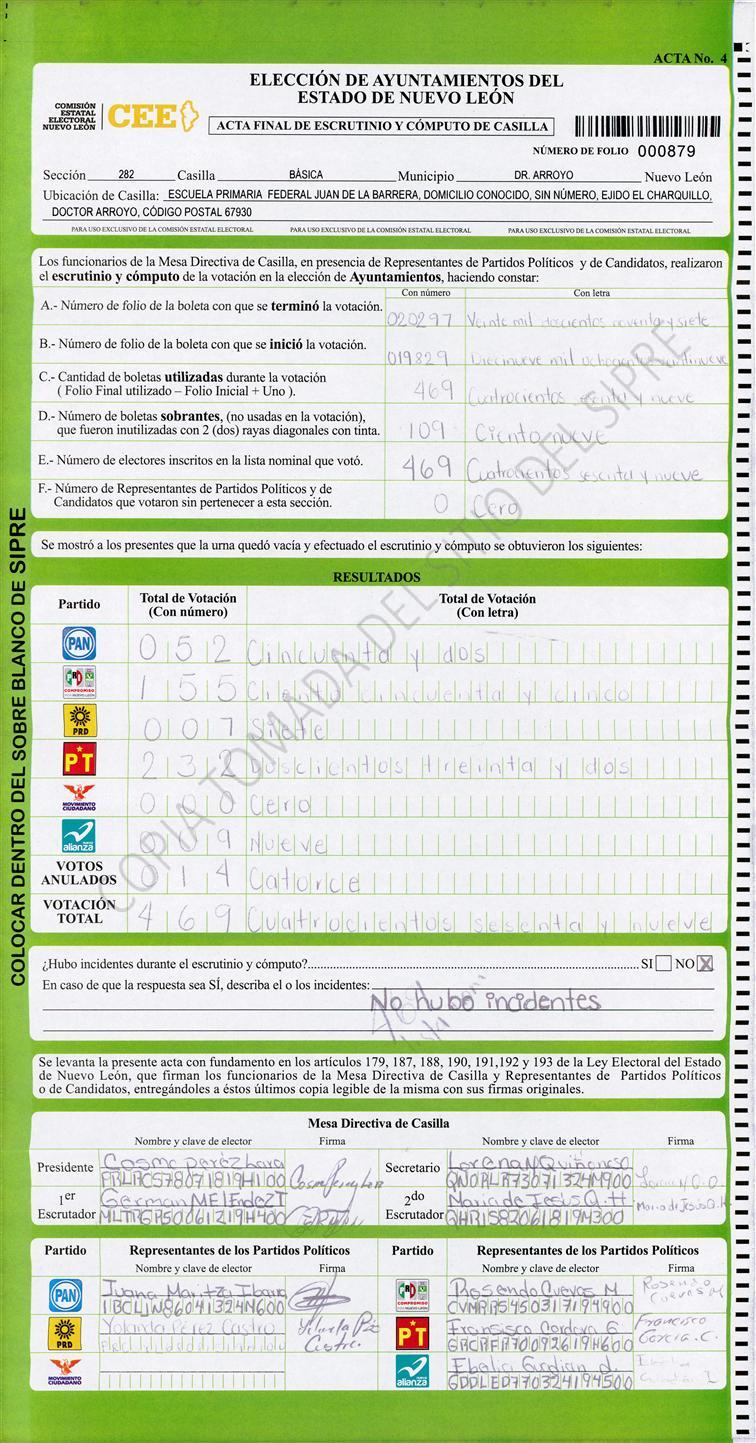 , (8) Copiado Movido , (9) Con Signos Inválidos , (10) Excede Lista Nominal , (11) Otra |