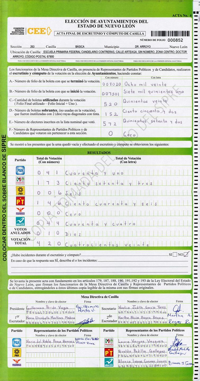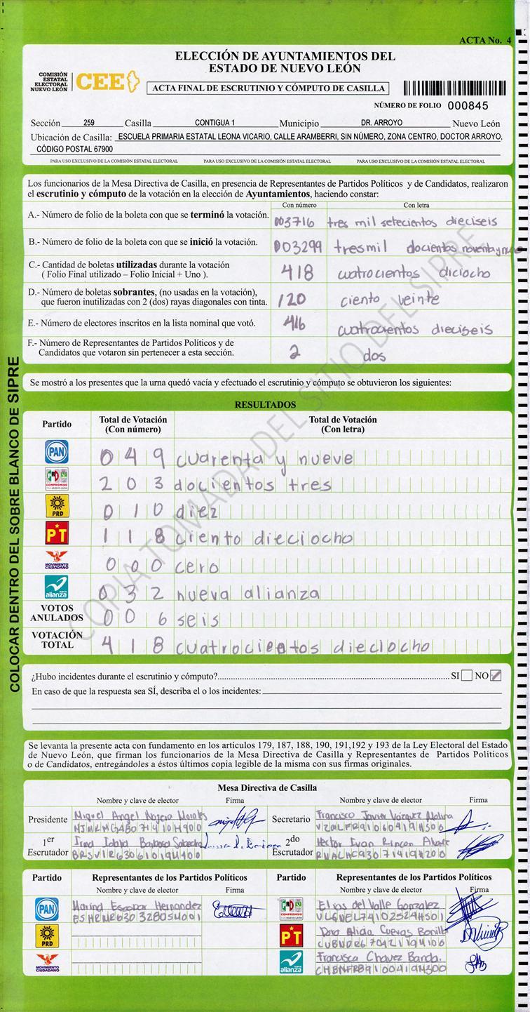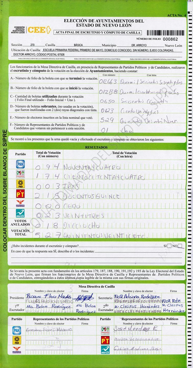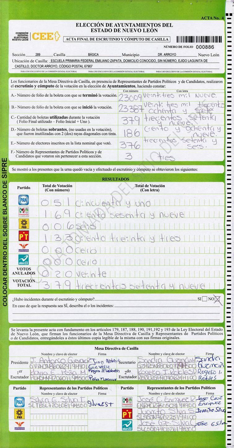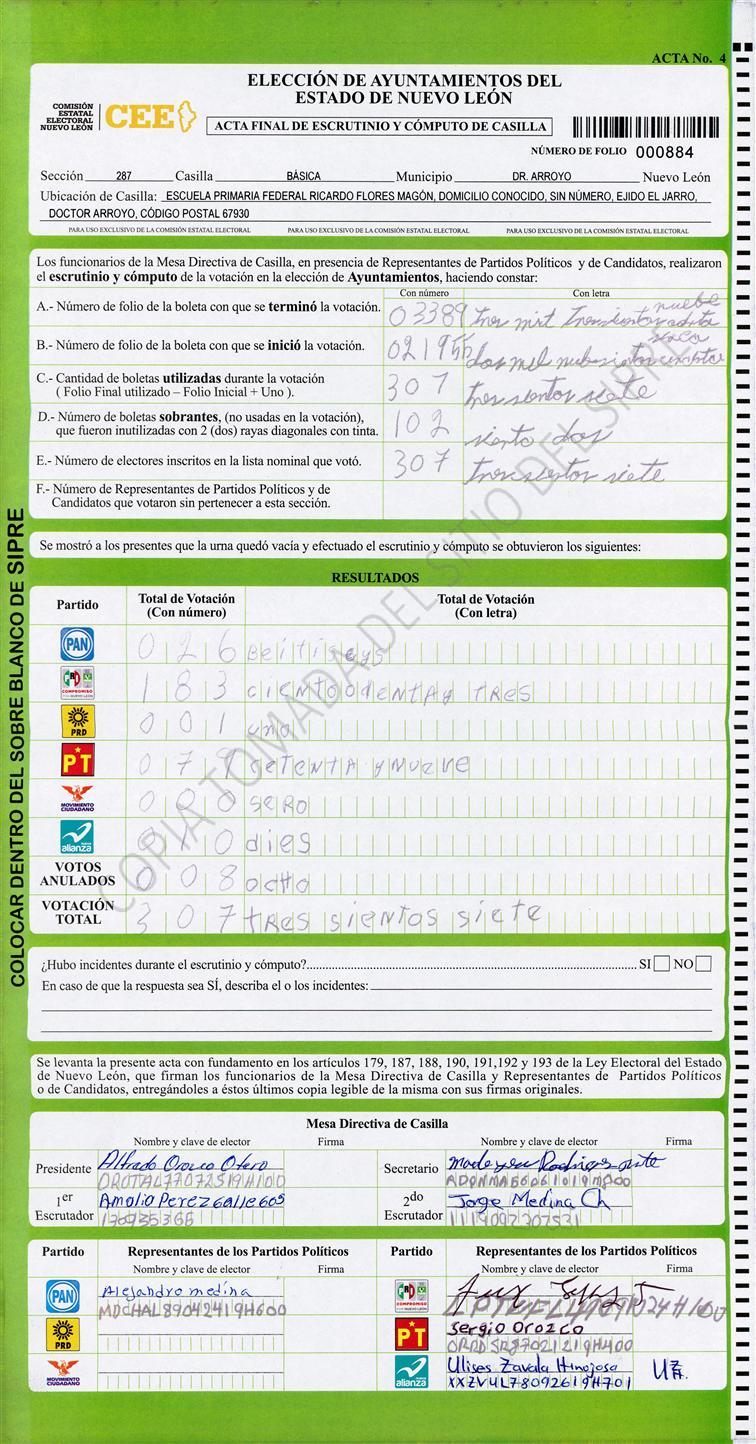 , (8) Copiado Movido , (9) Con Signos Inválidos , (10) Excede Lista Nominal , (11) Otra |