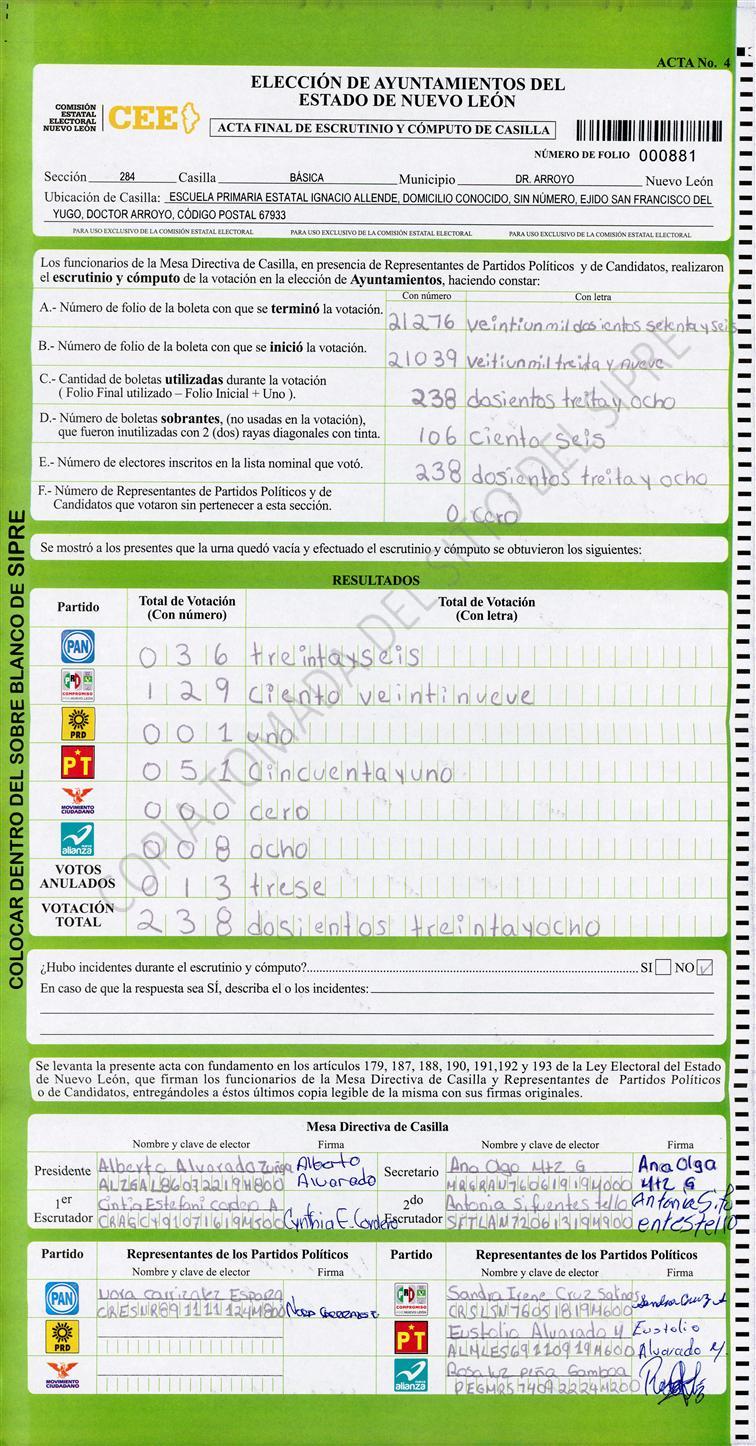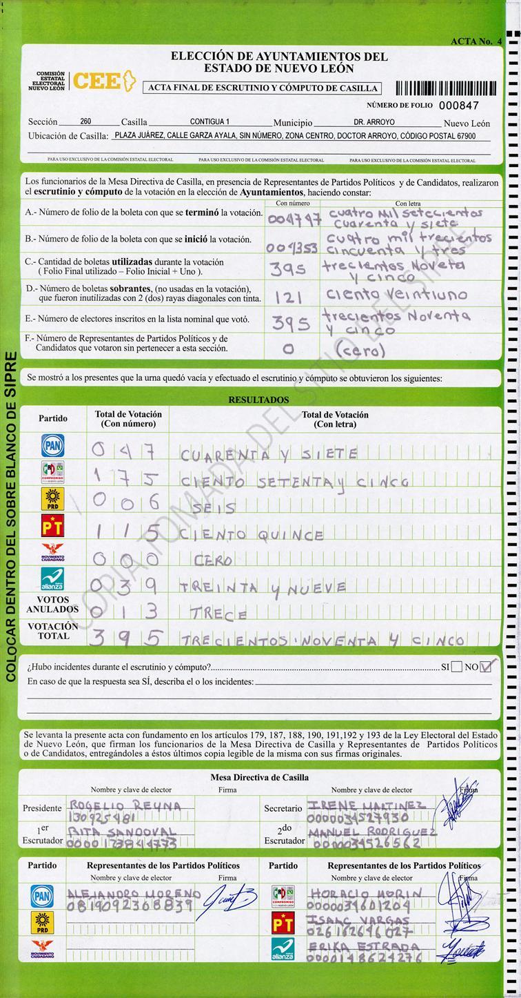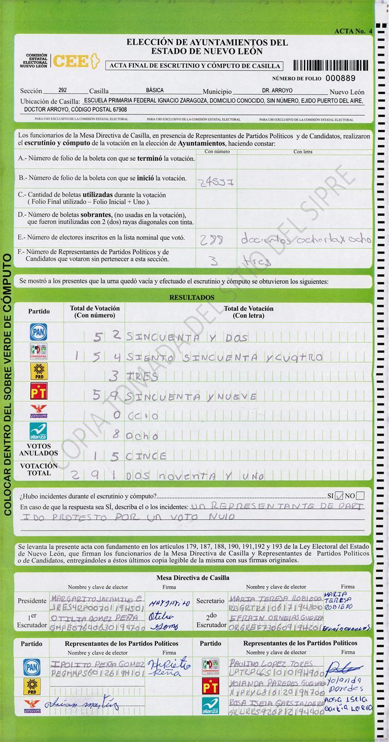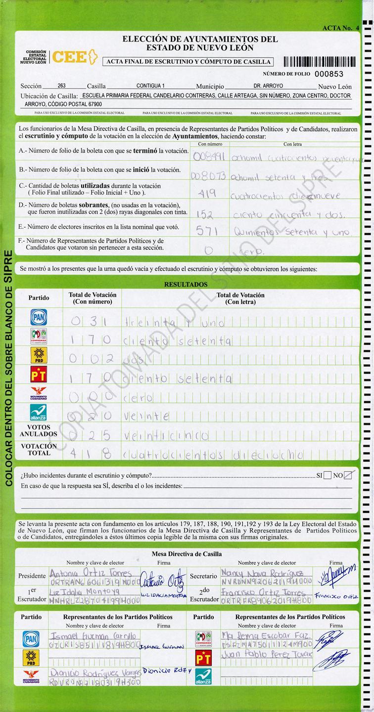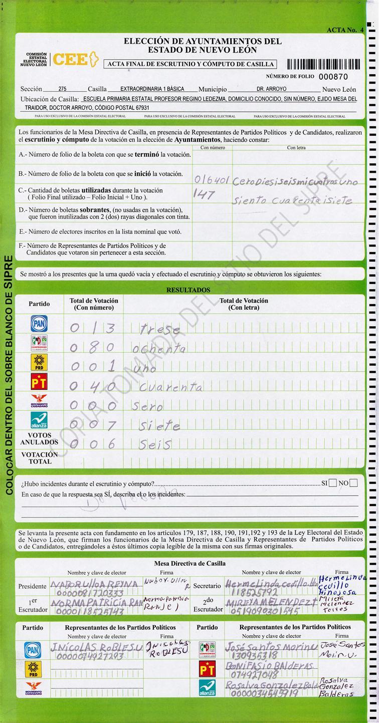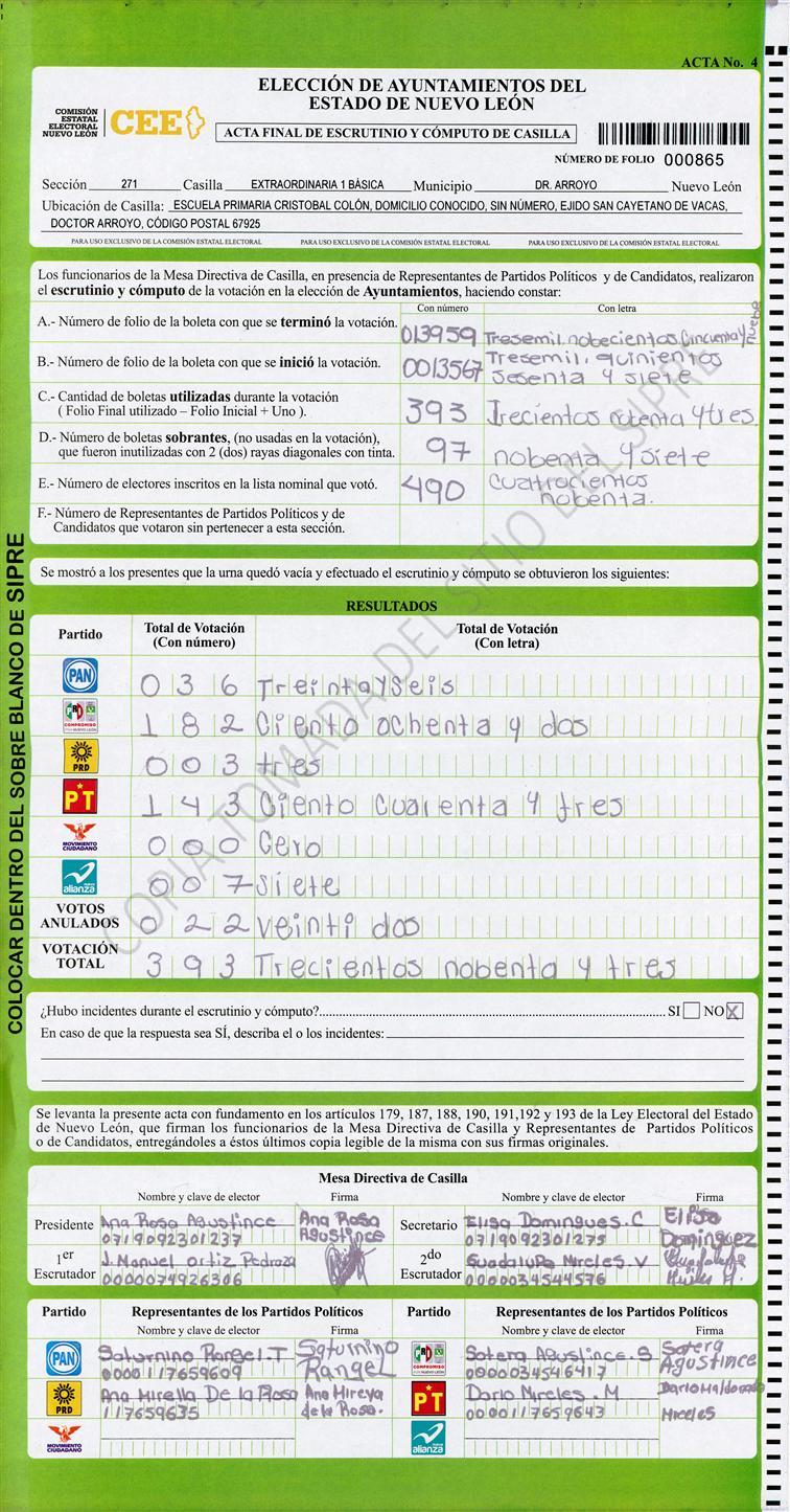 , (8) Copiado Movido , (9) Con Signos Inválidos , (10) Excede Lista Nominal , (11) Otra |