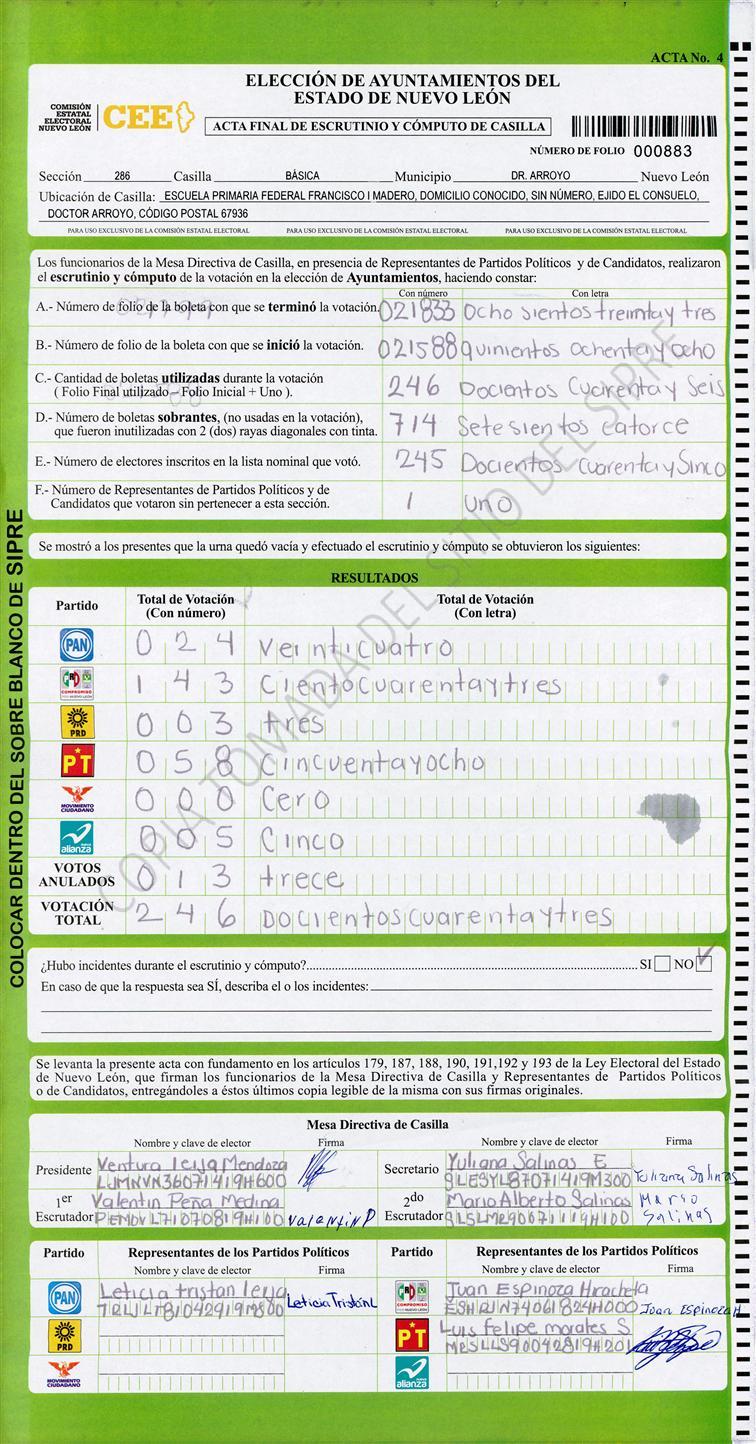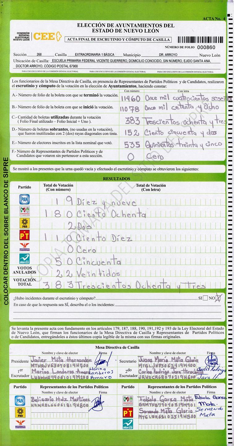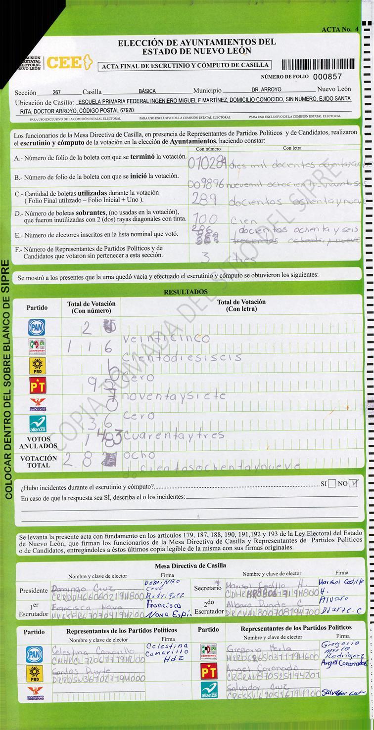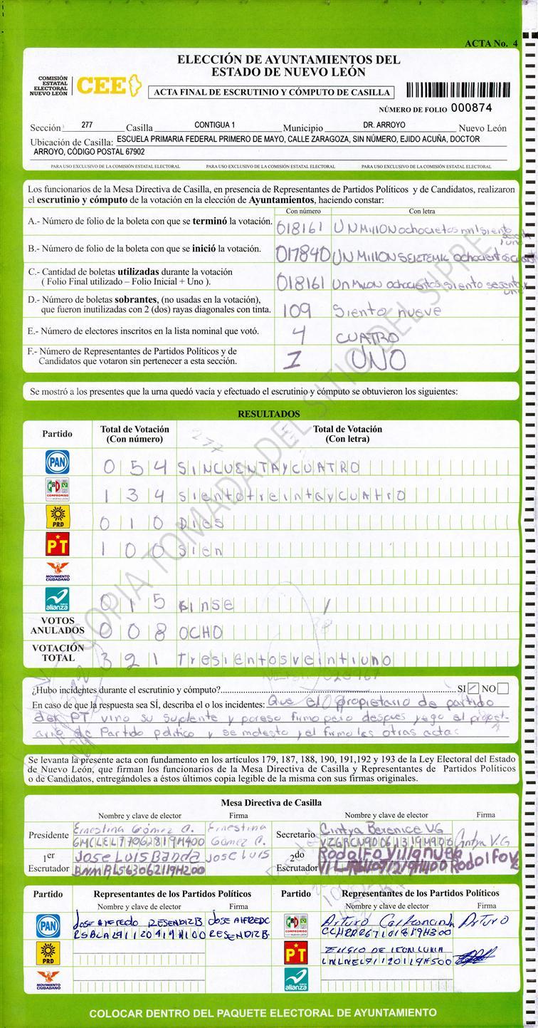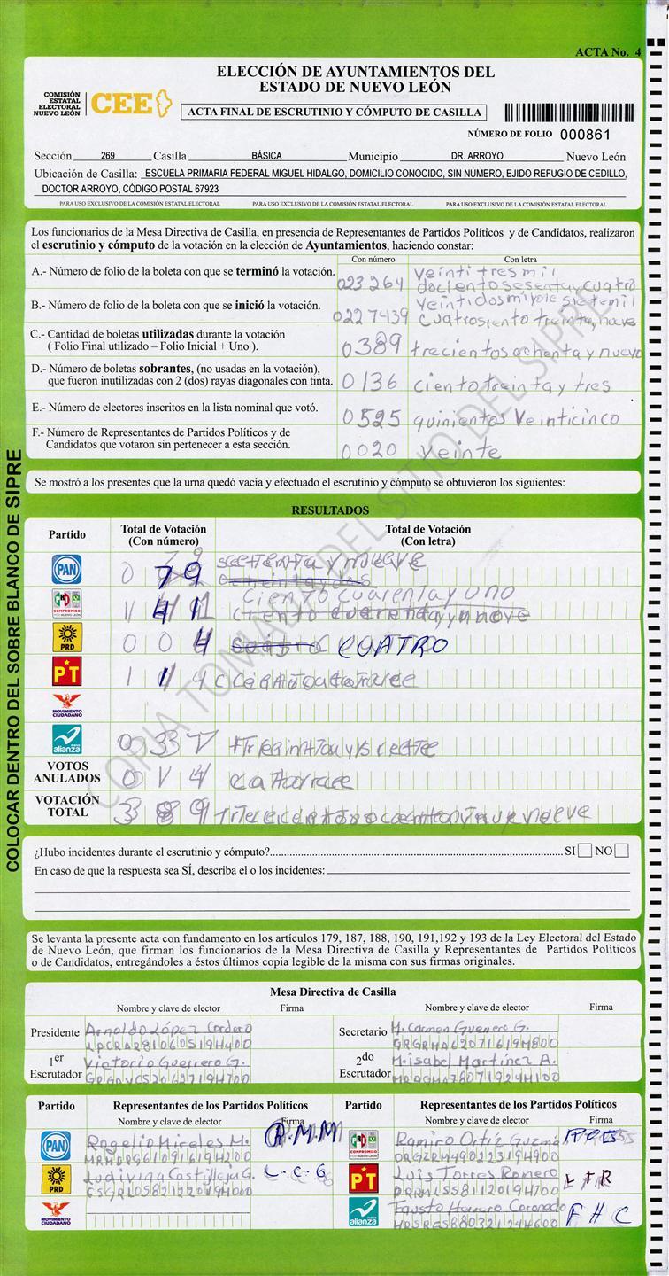 , (8) Copiado Movido , (9) Con Signos Inválidos , (10) Excede Lista Nominal , (11) Otra |