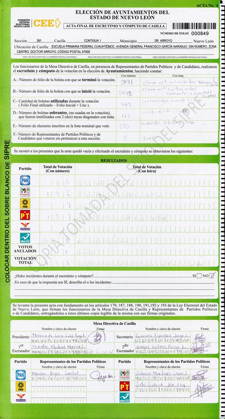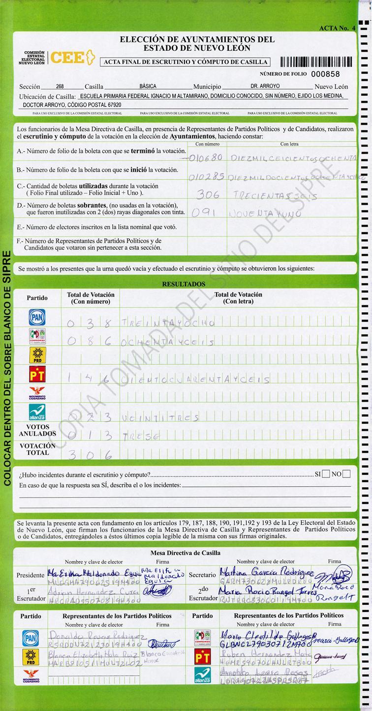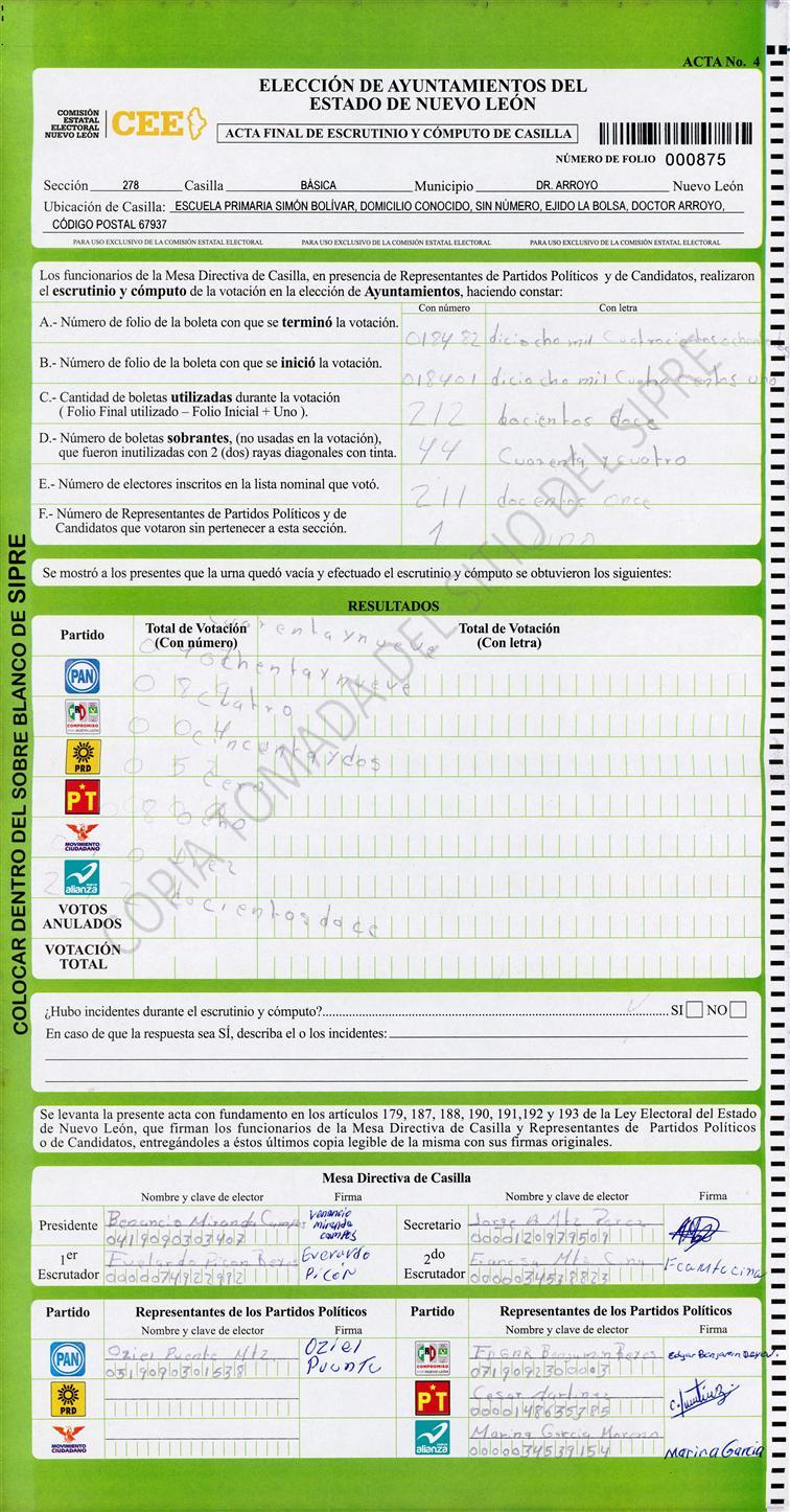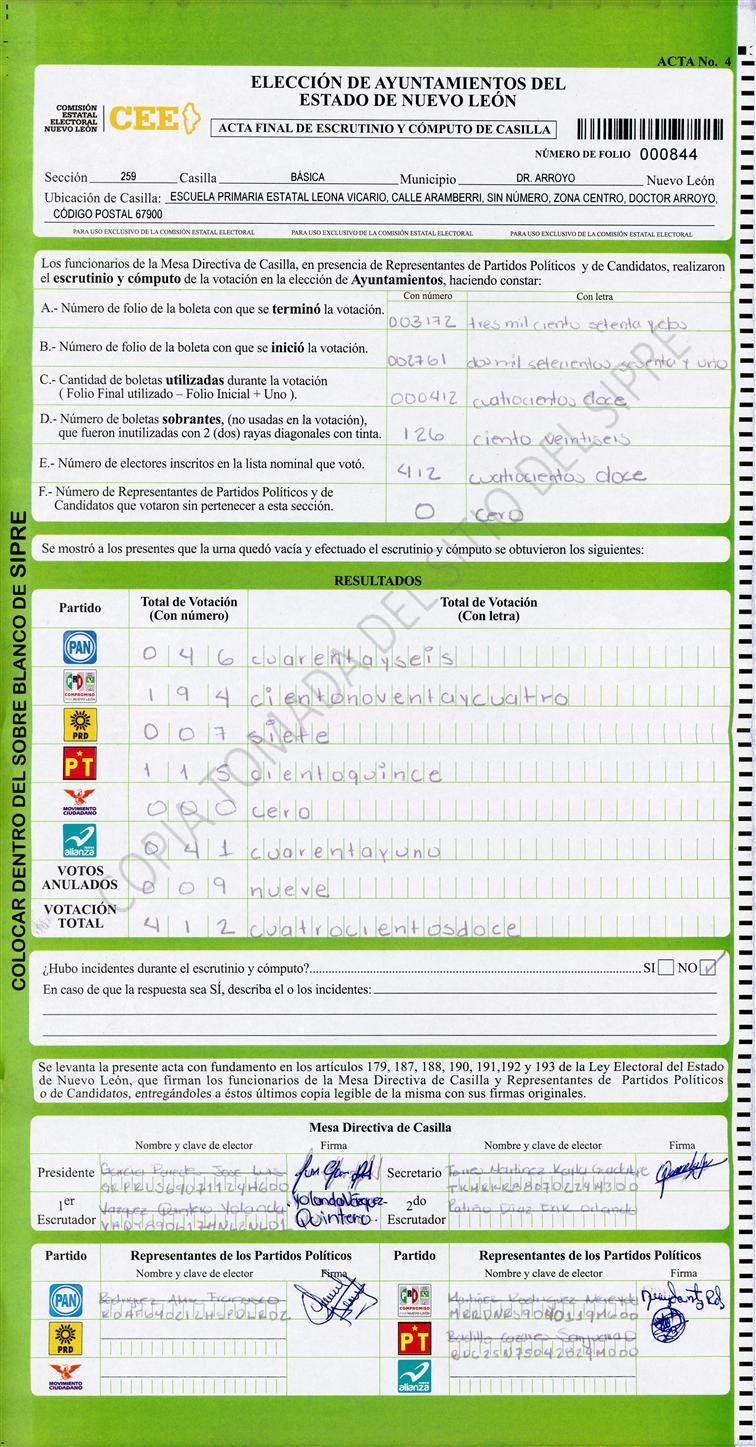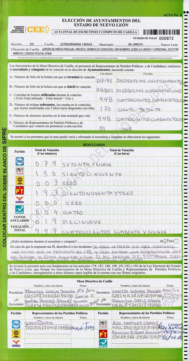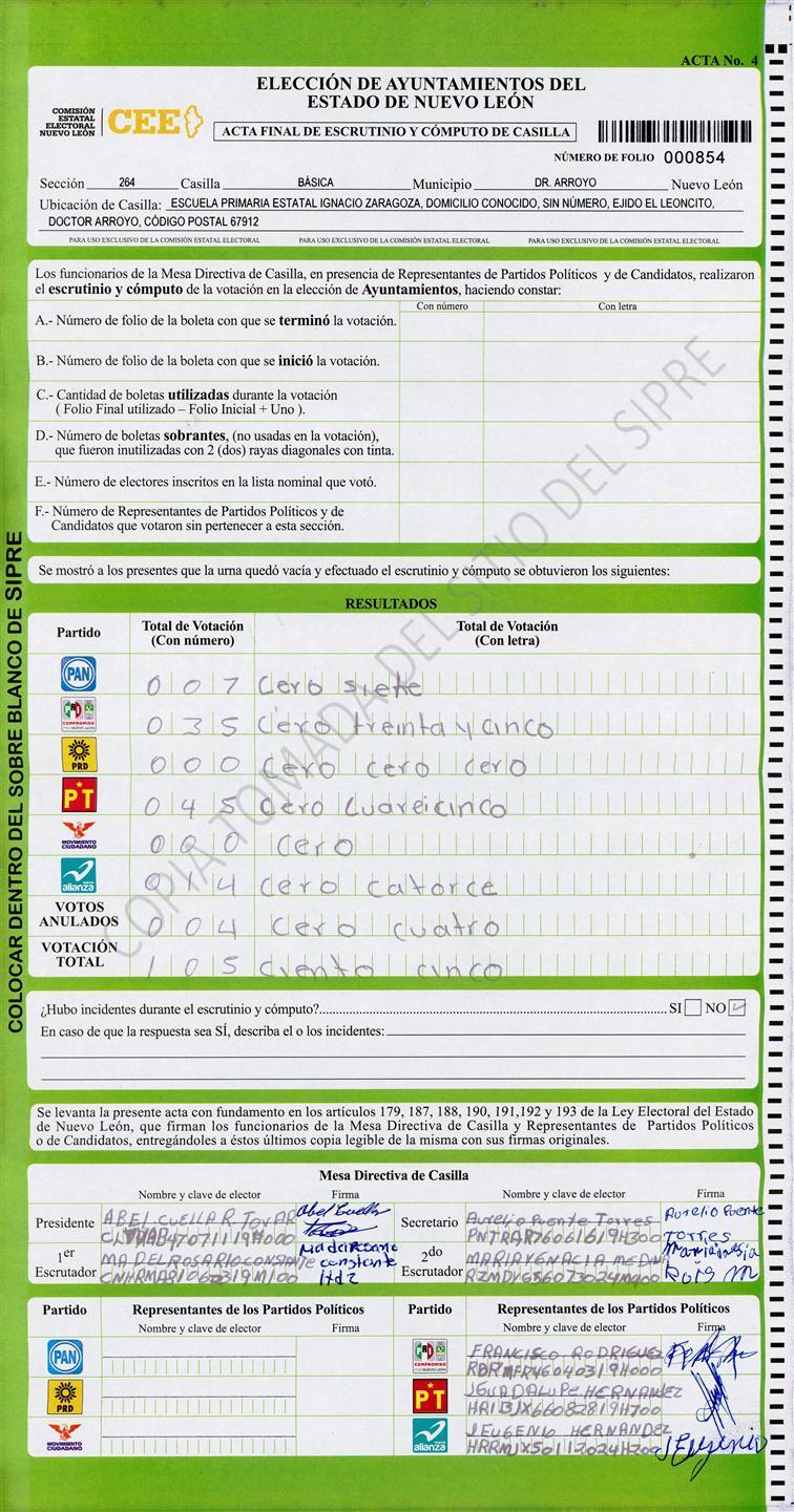 , (8) Copiado Movido , (9) Con Signos Inválidos , (10) Excede Lista Nominal , (11) Otra |