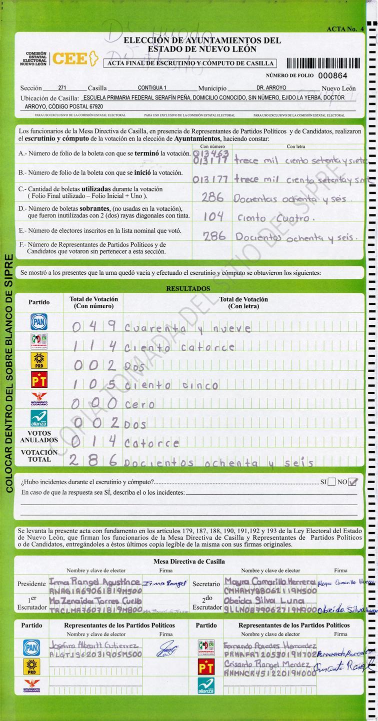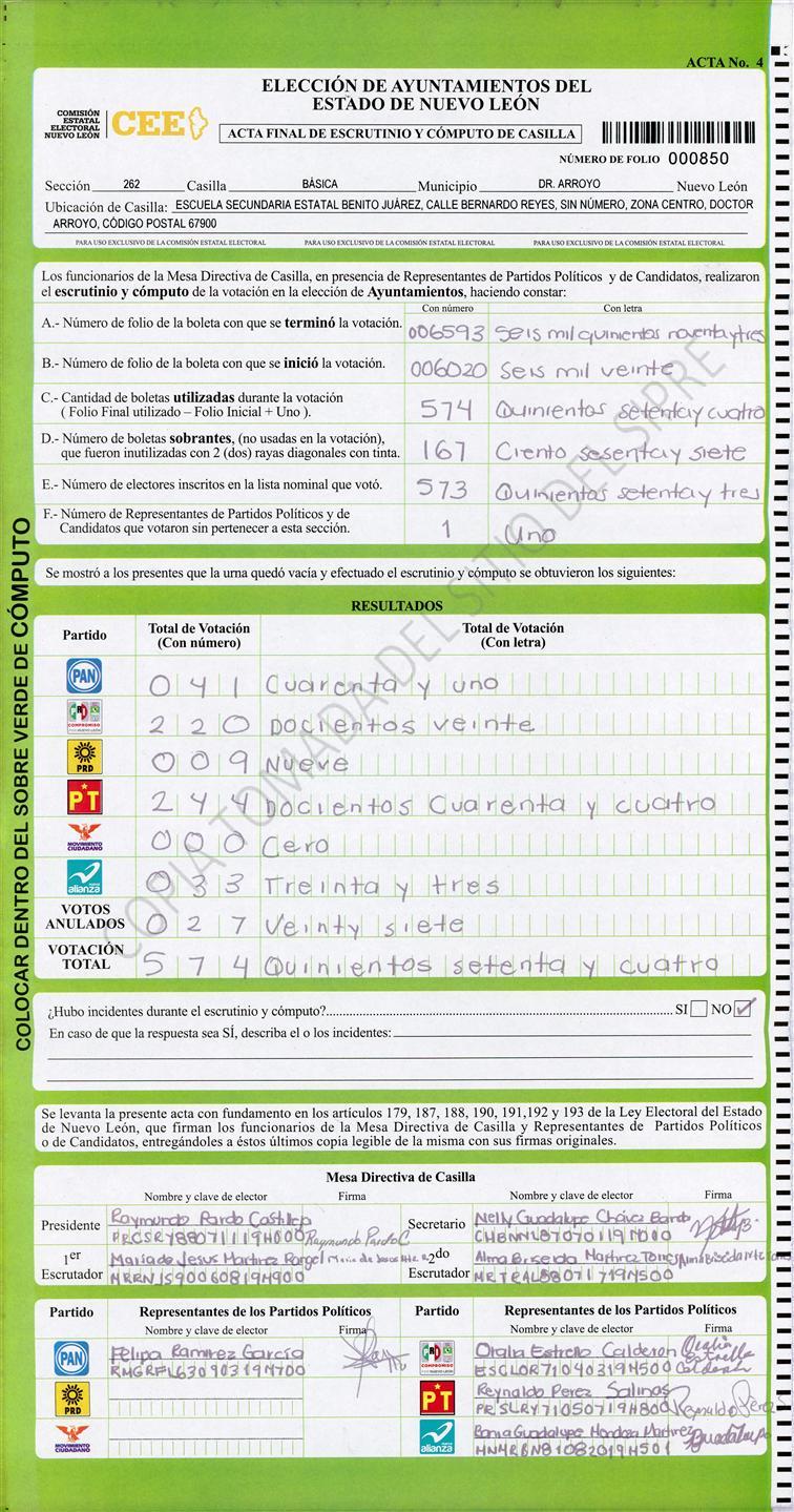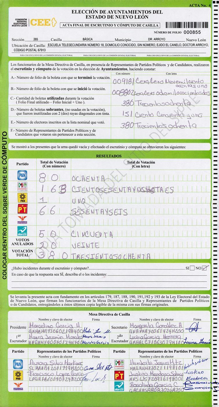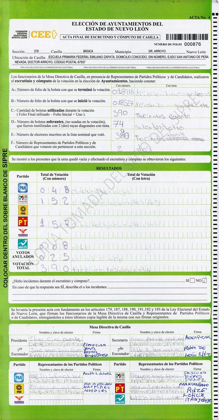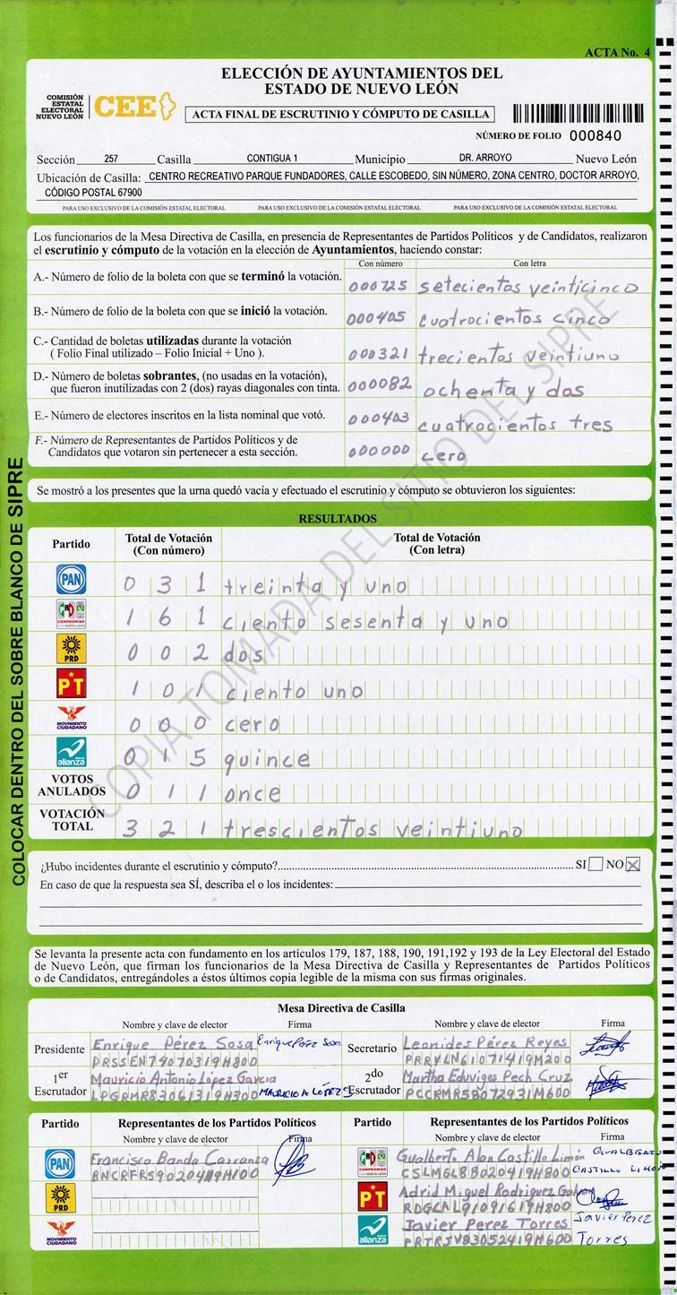 , (8) Copiado Movido , (9) Con Signos Inválidos , (10) Excede Lista Nominal , (11) Otra |