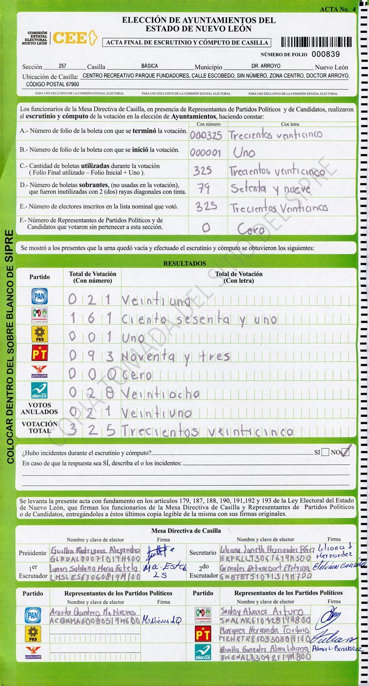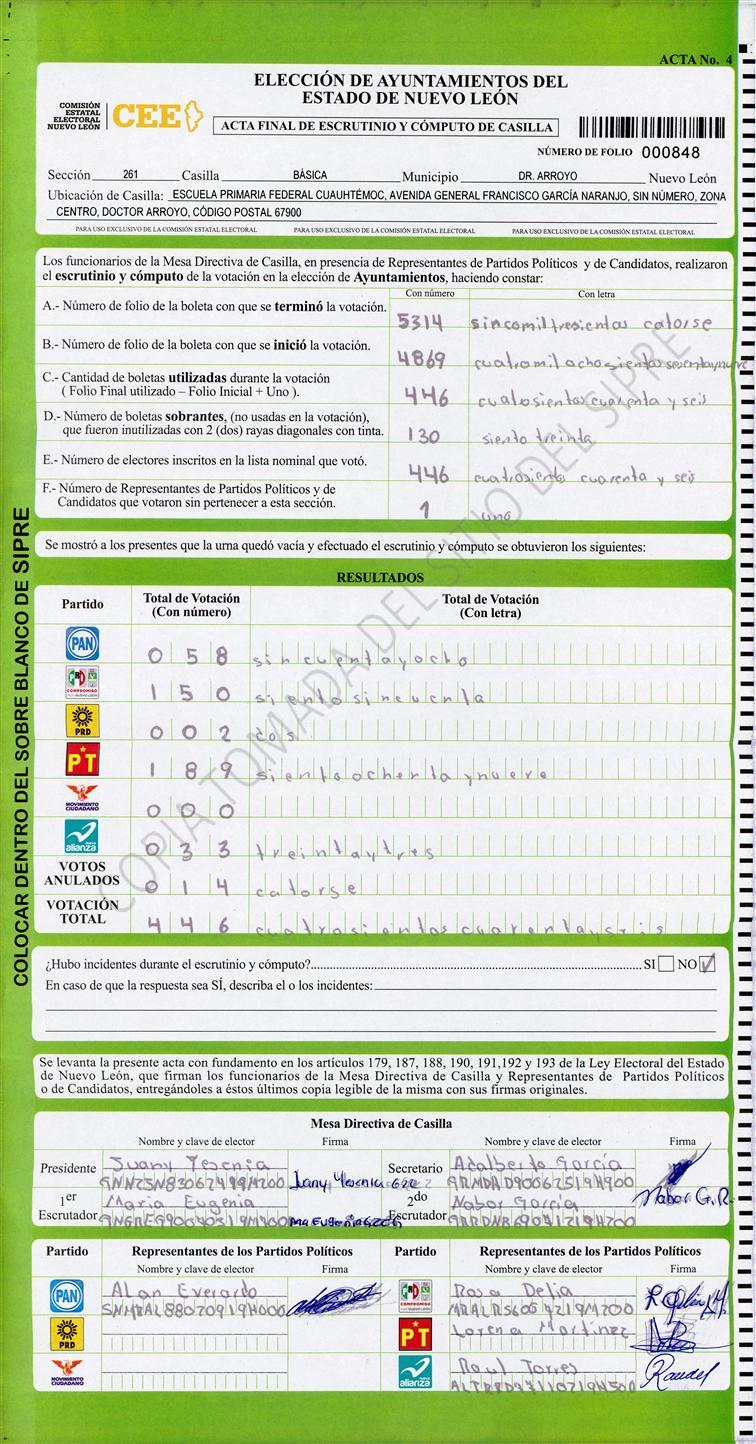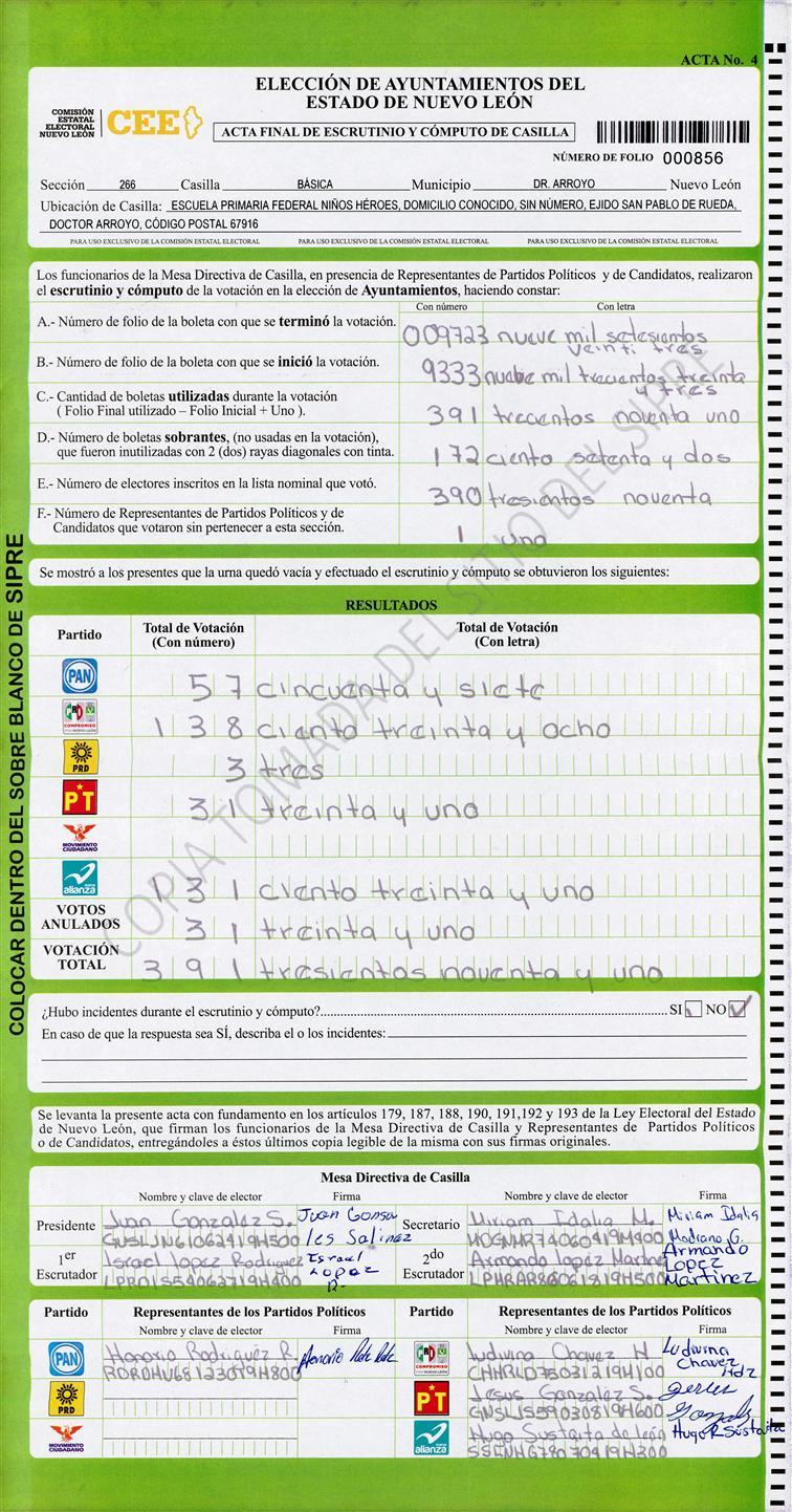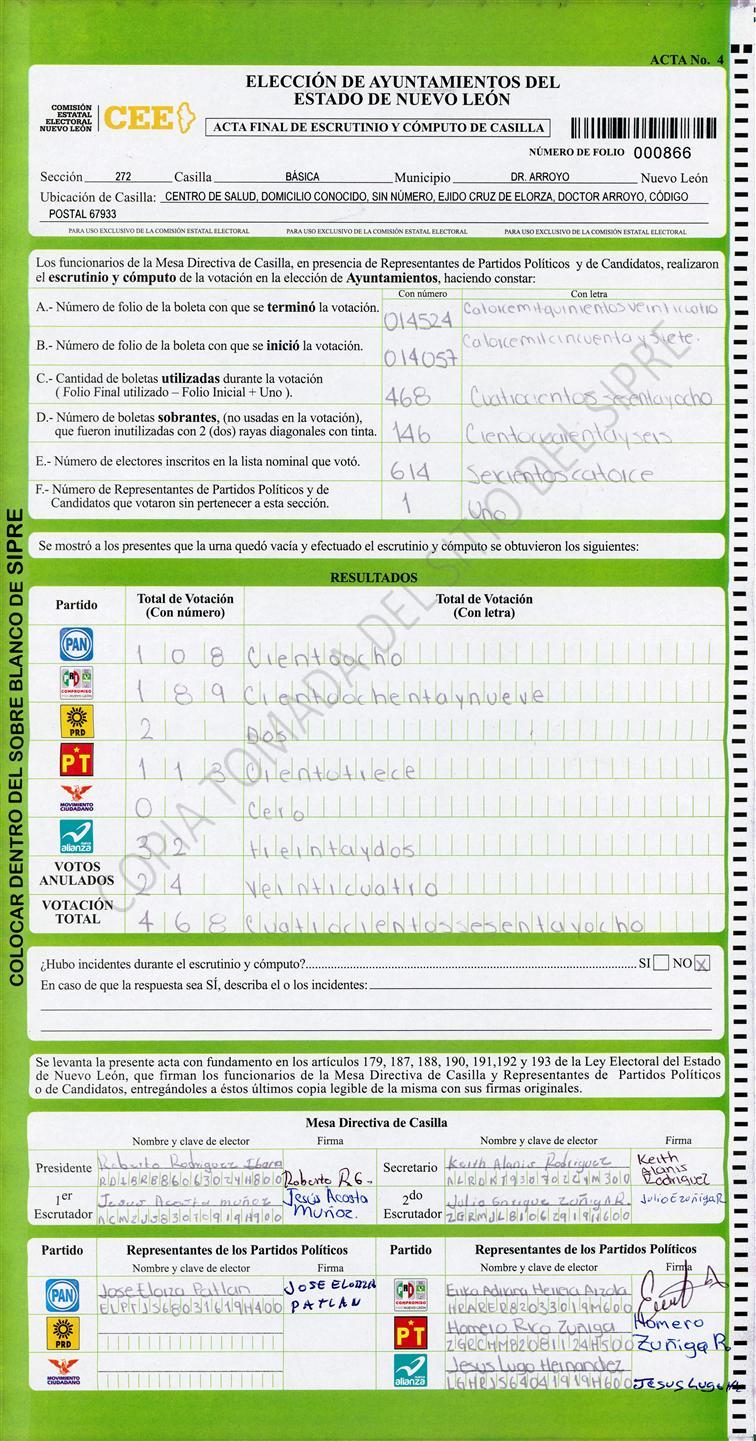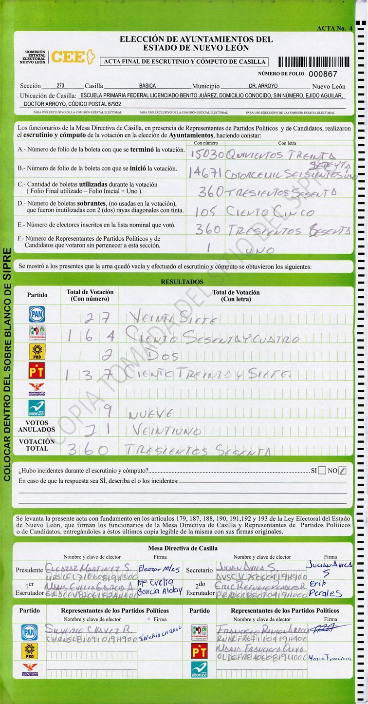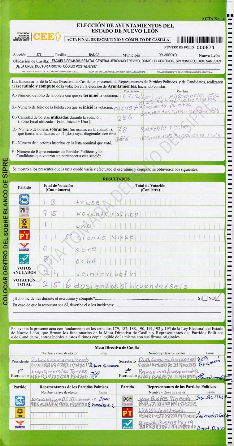 , (8) Copiado Movido , (9) Con Signos Inválidos , (10) Excede Lista Nominal , (11) Otra |