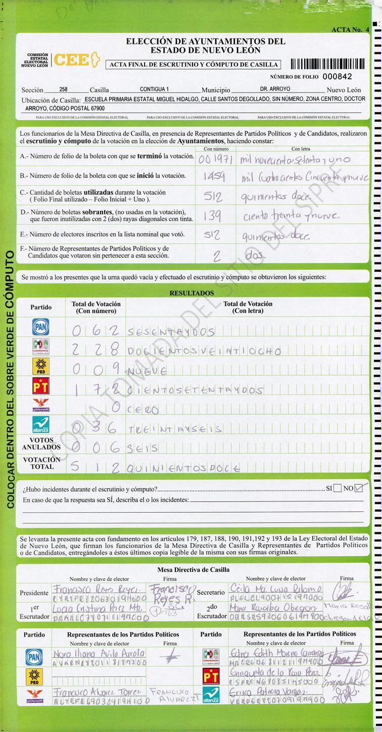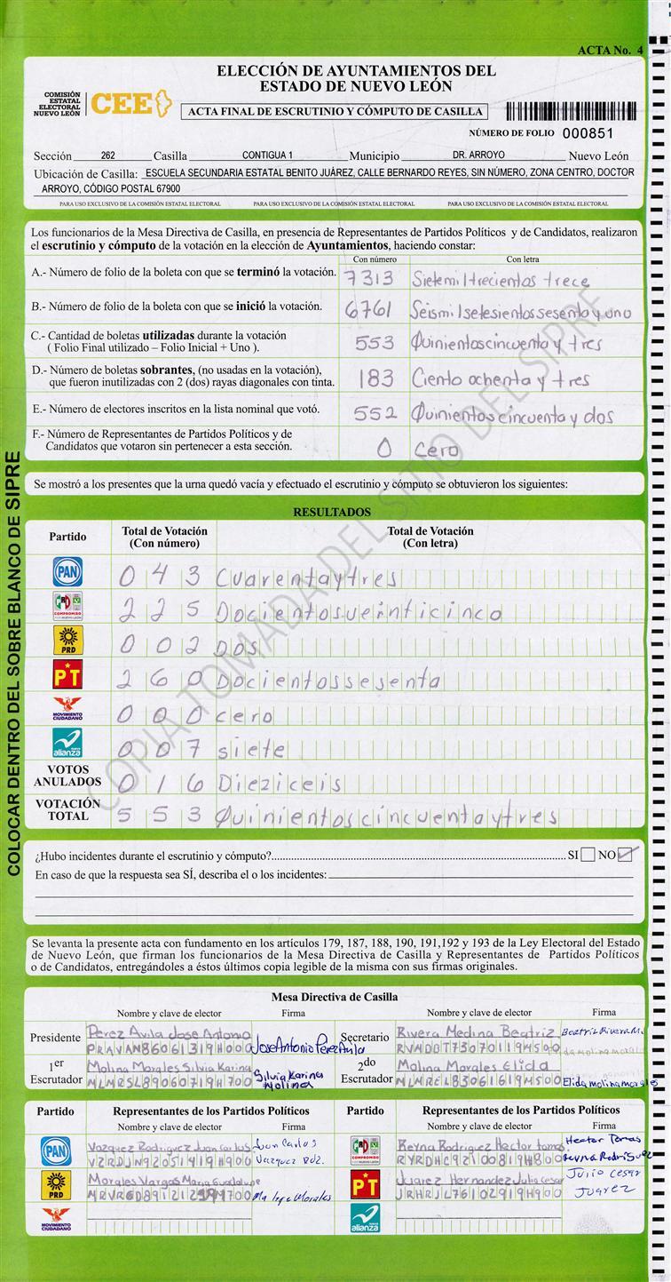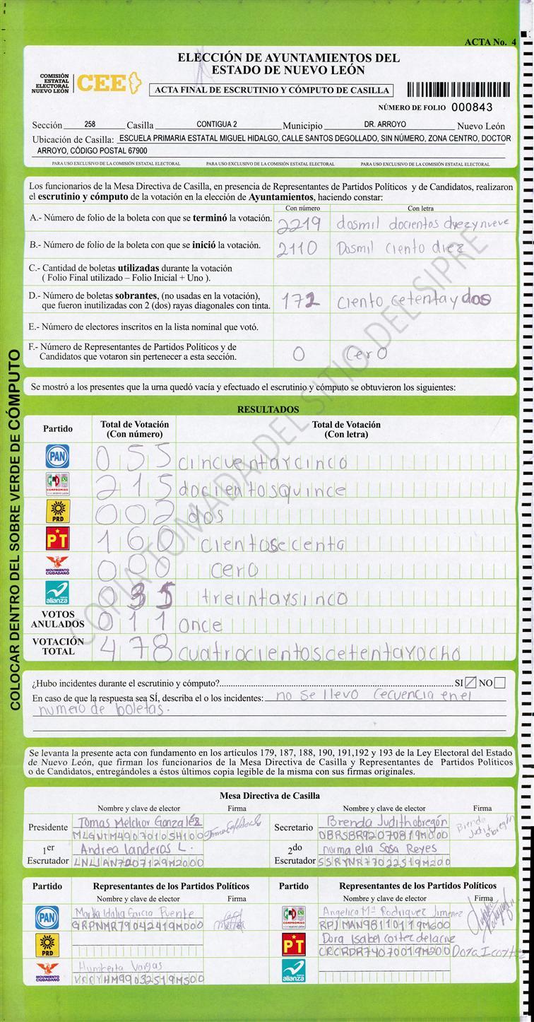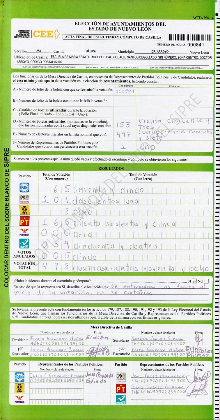 Acta con Incidencia: No hay acta |
