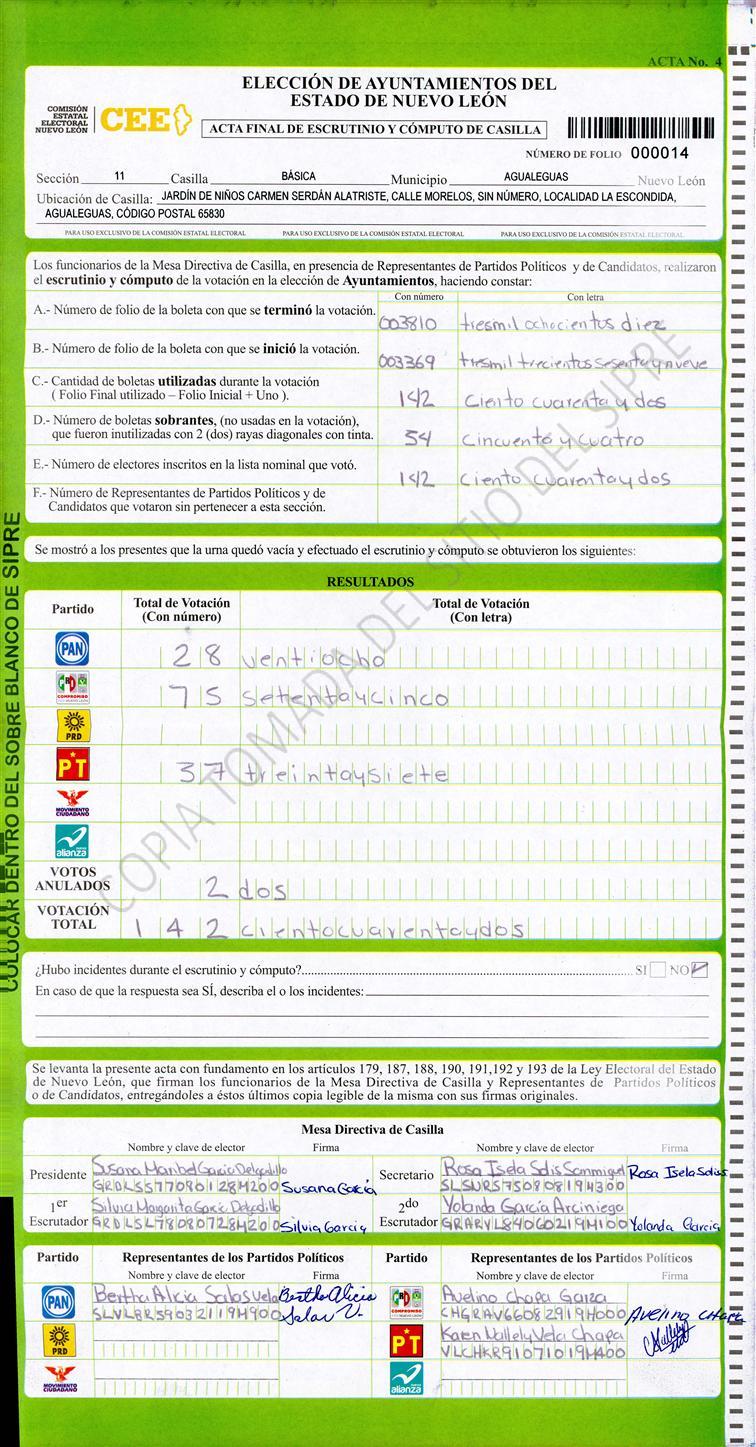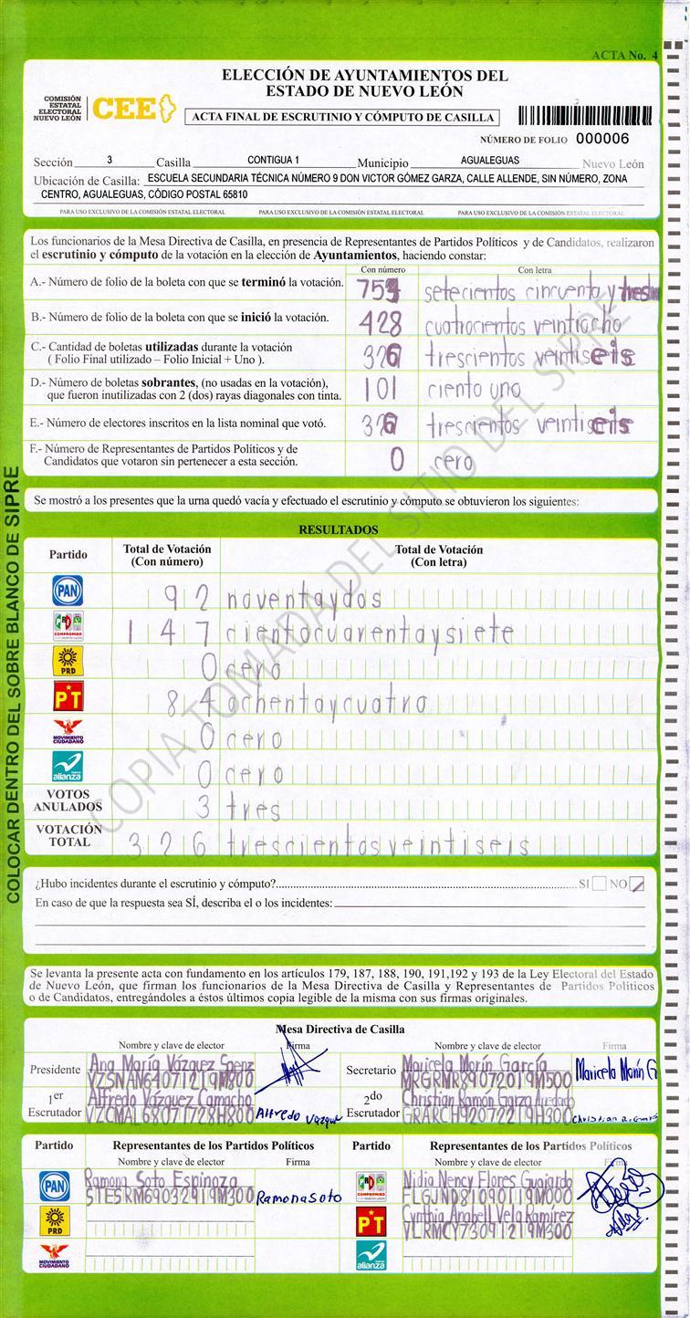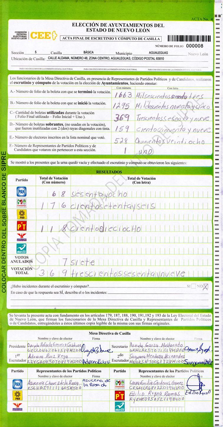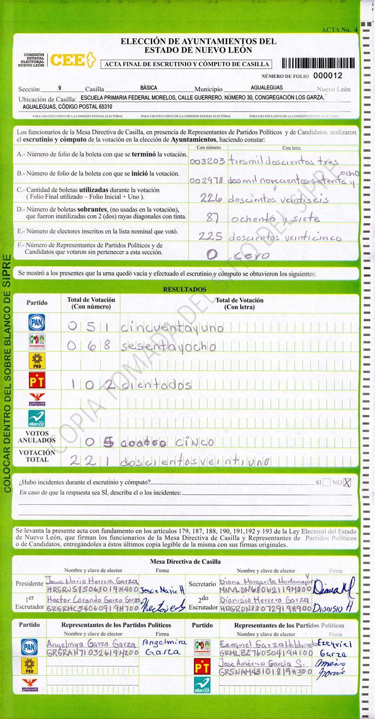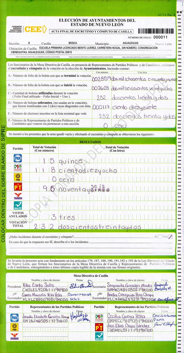 , (8) Copiado Movido , (9) Con Signos Inválidos , (10) Excede Lista Nominal , (11) Otra |