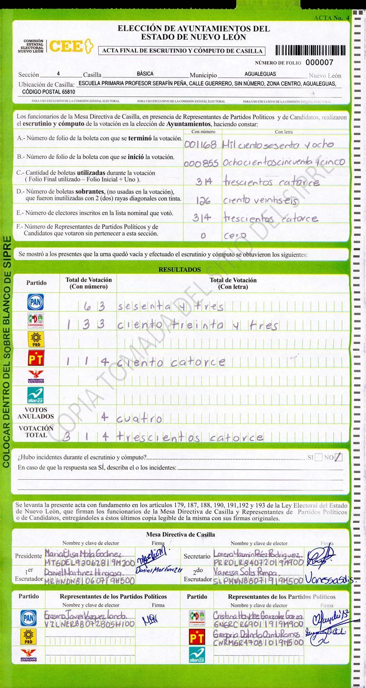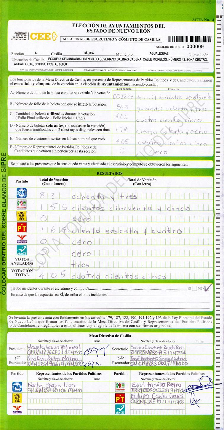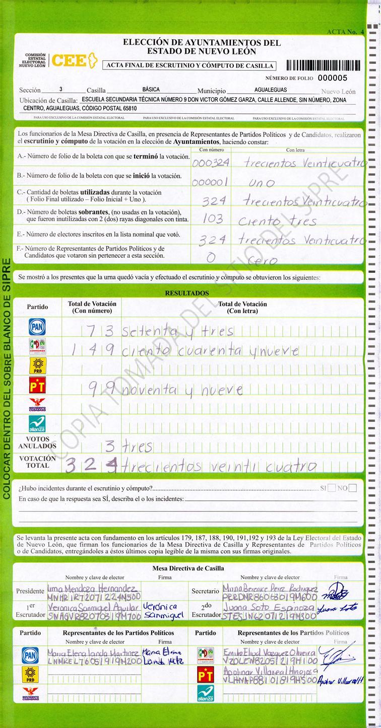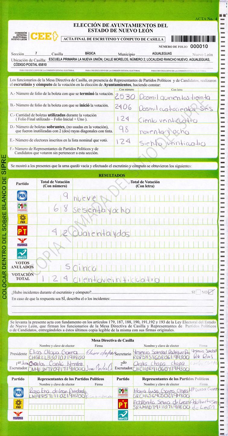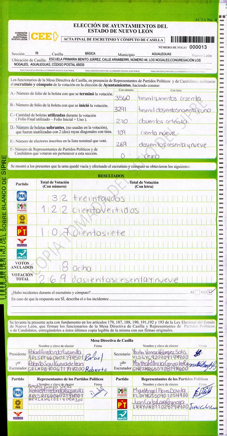 , (8) Copiado Movido , (9) Con Signos Inválidos , (10) Excede Lista Nominal , (11) Otra |