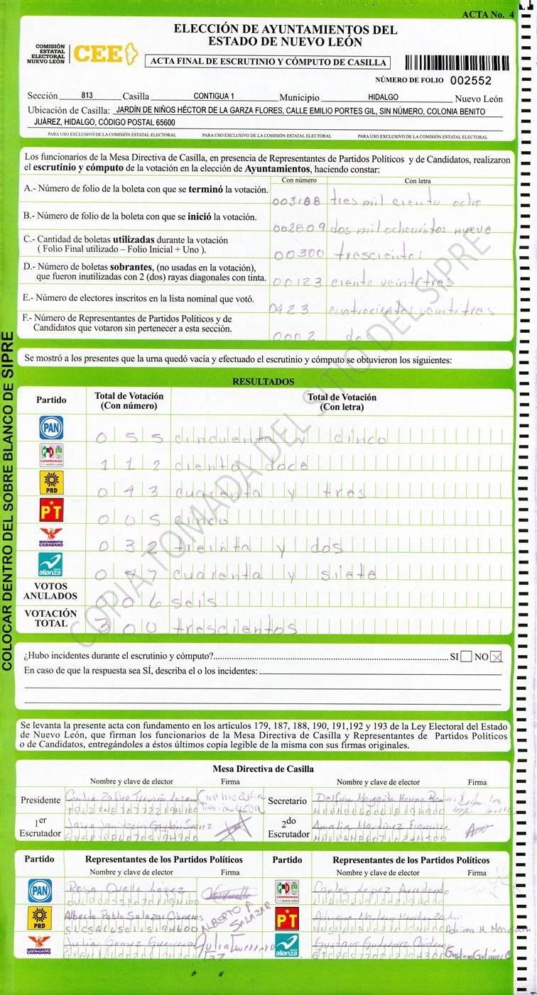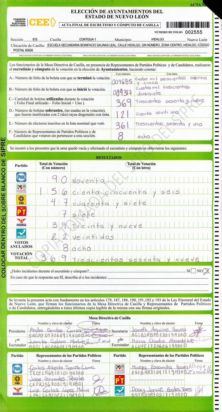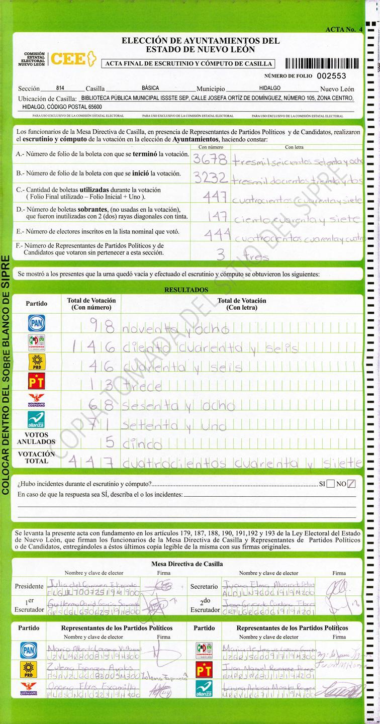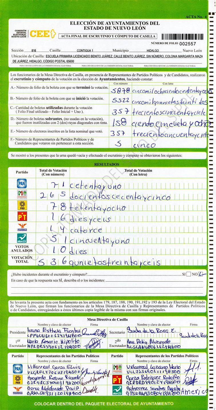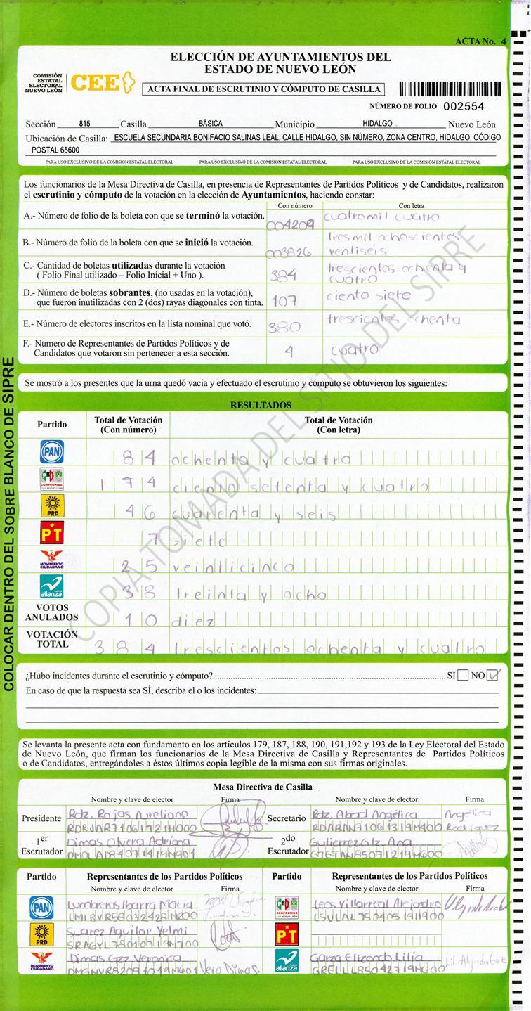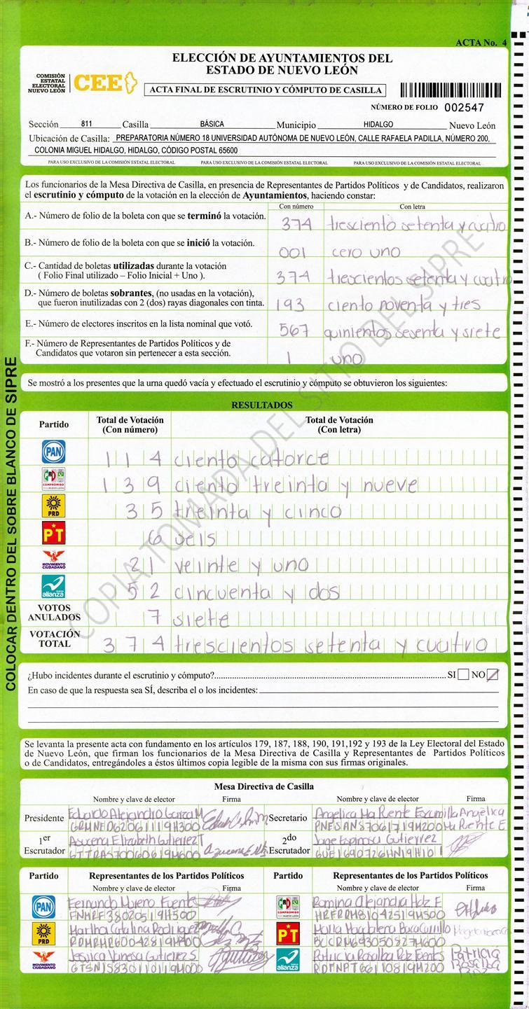 , (8) Copiado Movido , (9) Con Signos Inválidos , (10) Excede Lista Nominal , (11) Otra |
