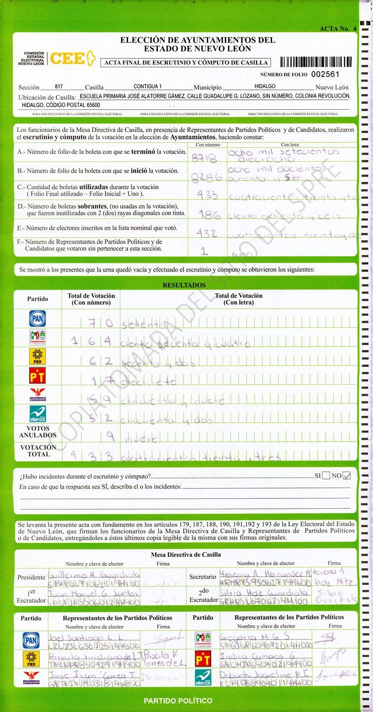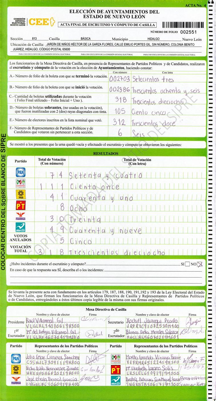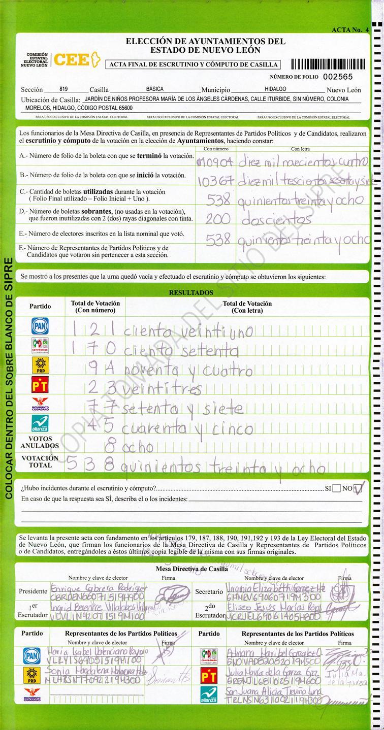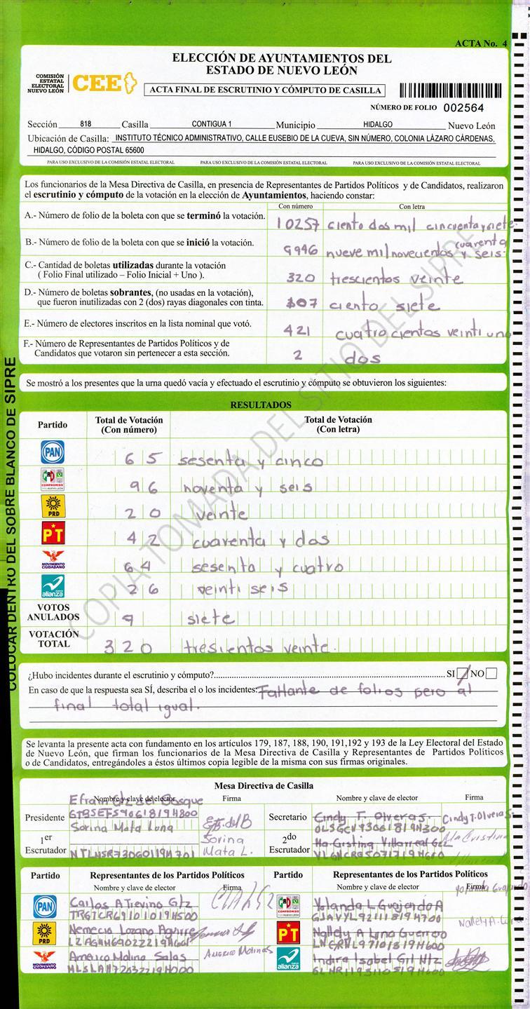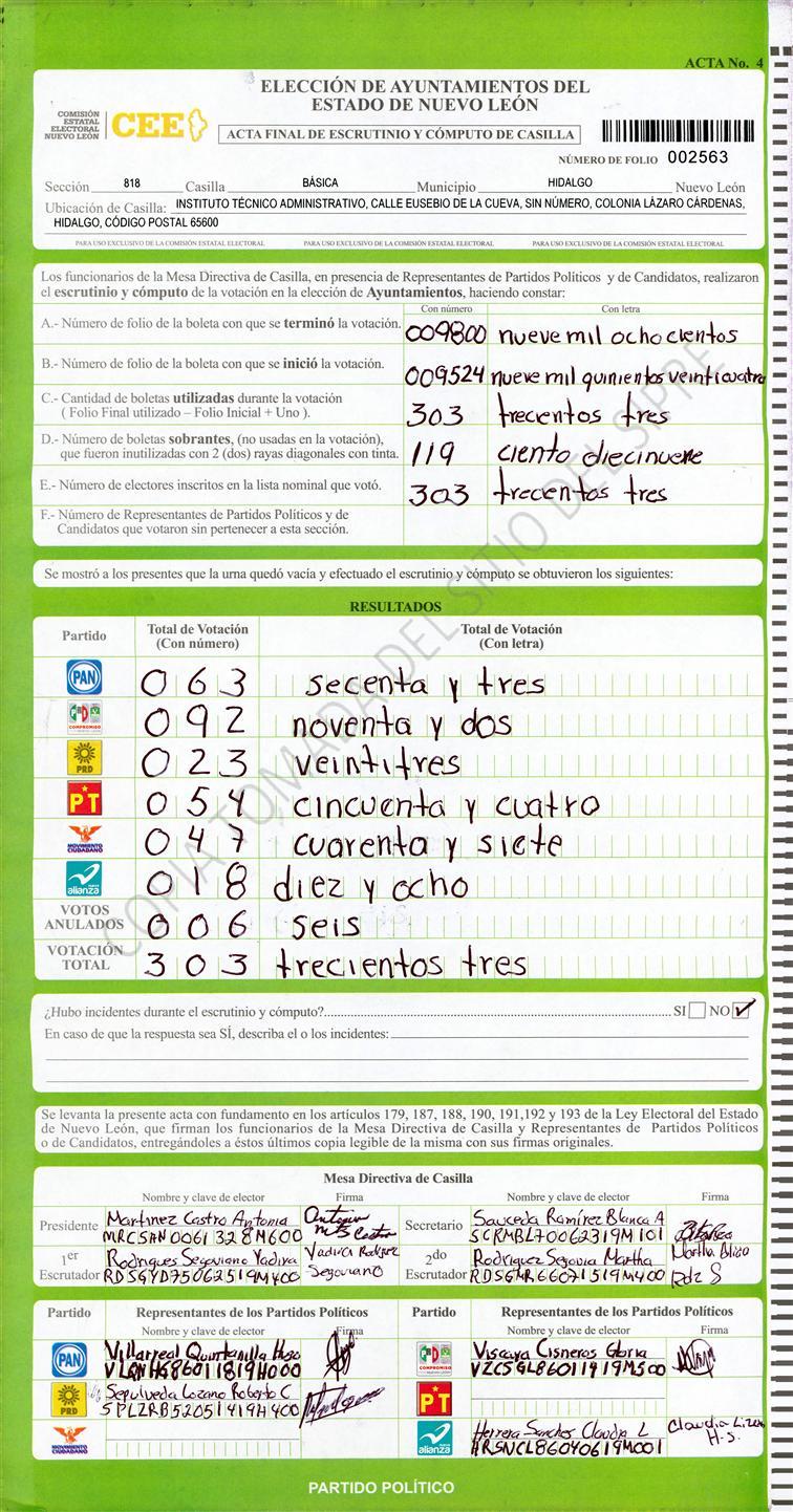 , (8) Copiado Movido , (9) Con Signos Inválidos , (10) Excede Lista Nominal , (11) Otra |