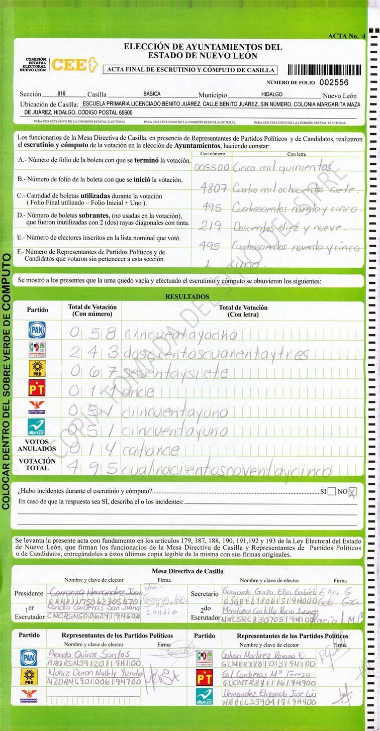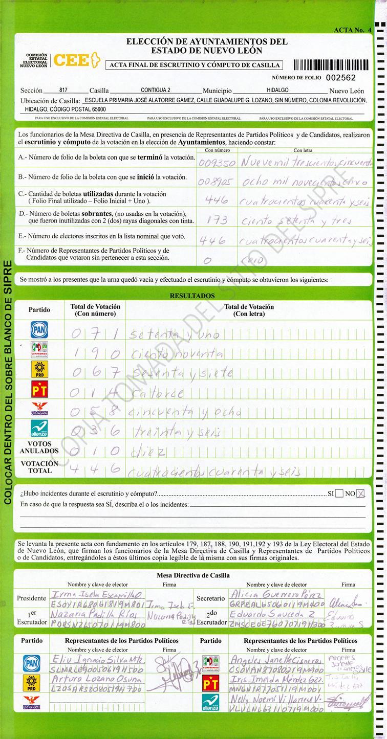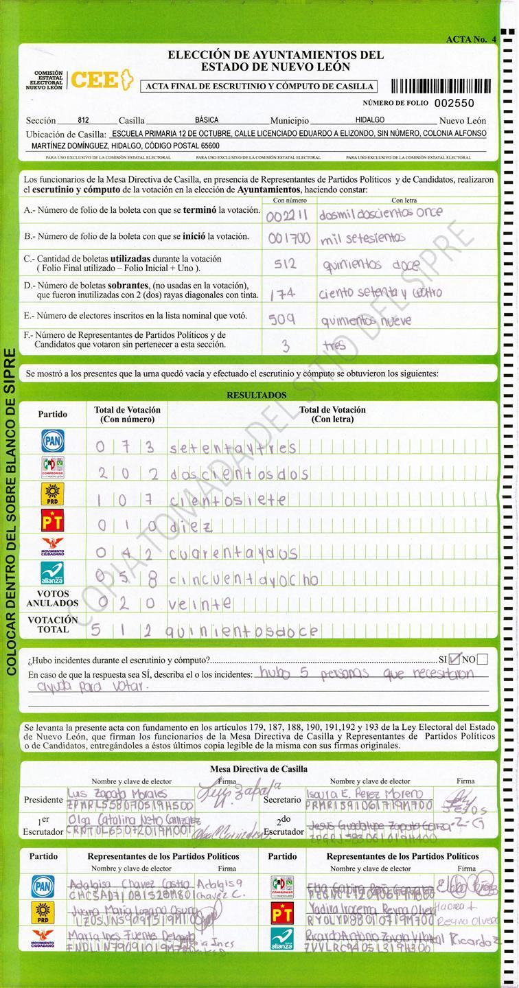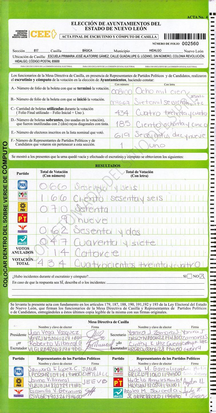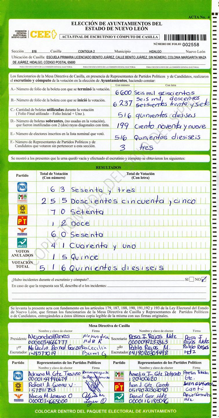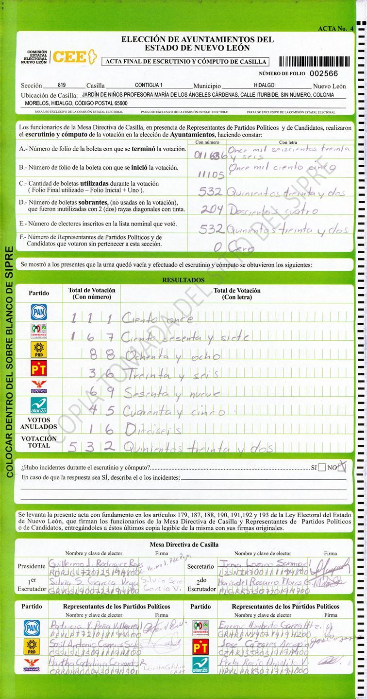 , (8) Copiado Movido , (9) Con Signos Inválidos , (10) Excede Lista Nominal , (11) Otra |