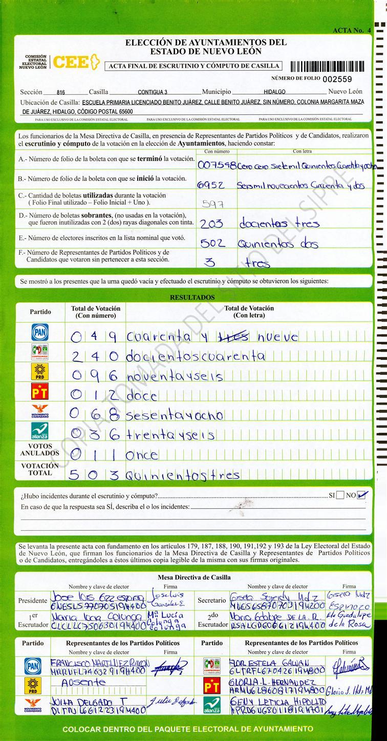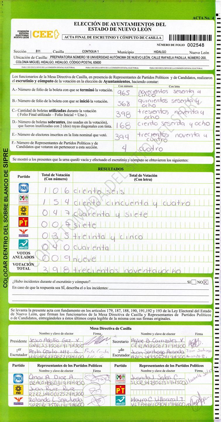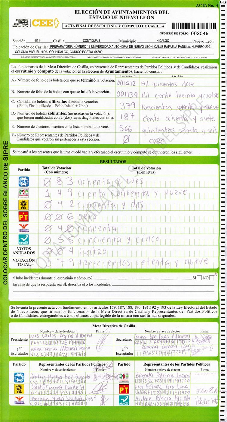 Acta con Incidencia: No hay acta |
