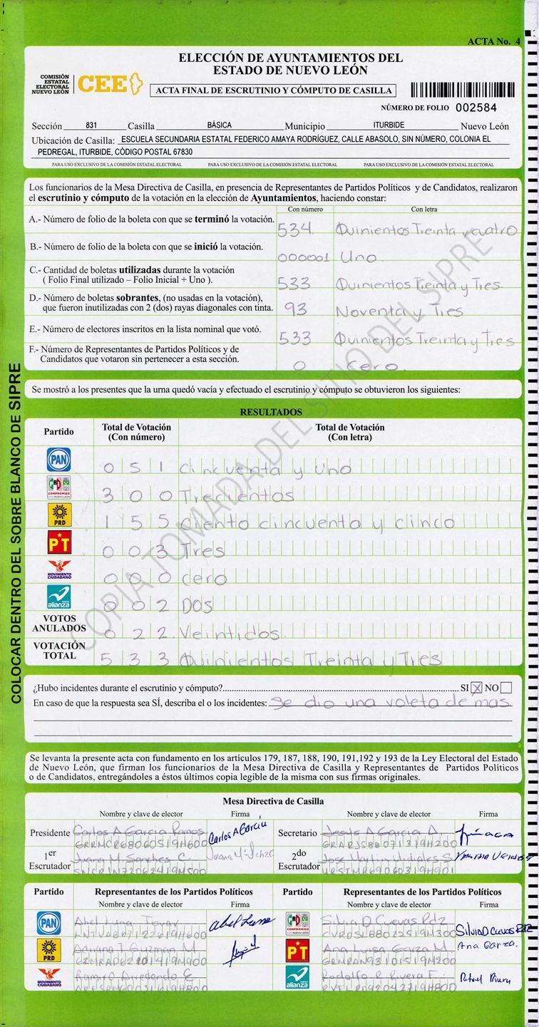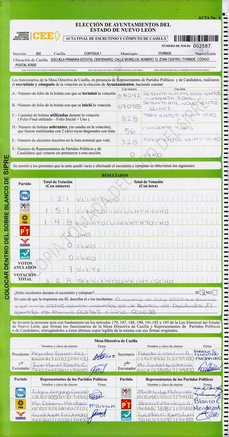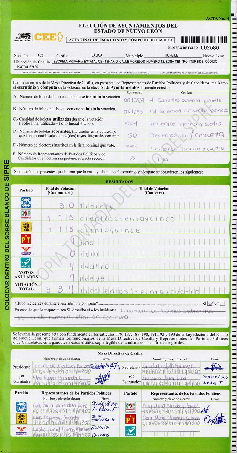 , (8) Copiado Movido , (9) Con Signos Inválidos , (10) Excede Lista Nominal , (11) Otra |