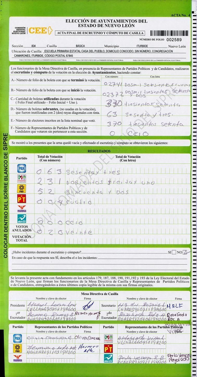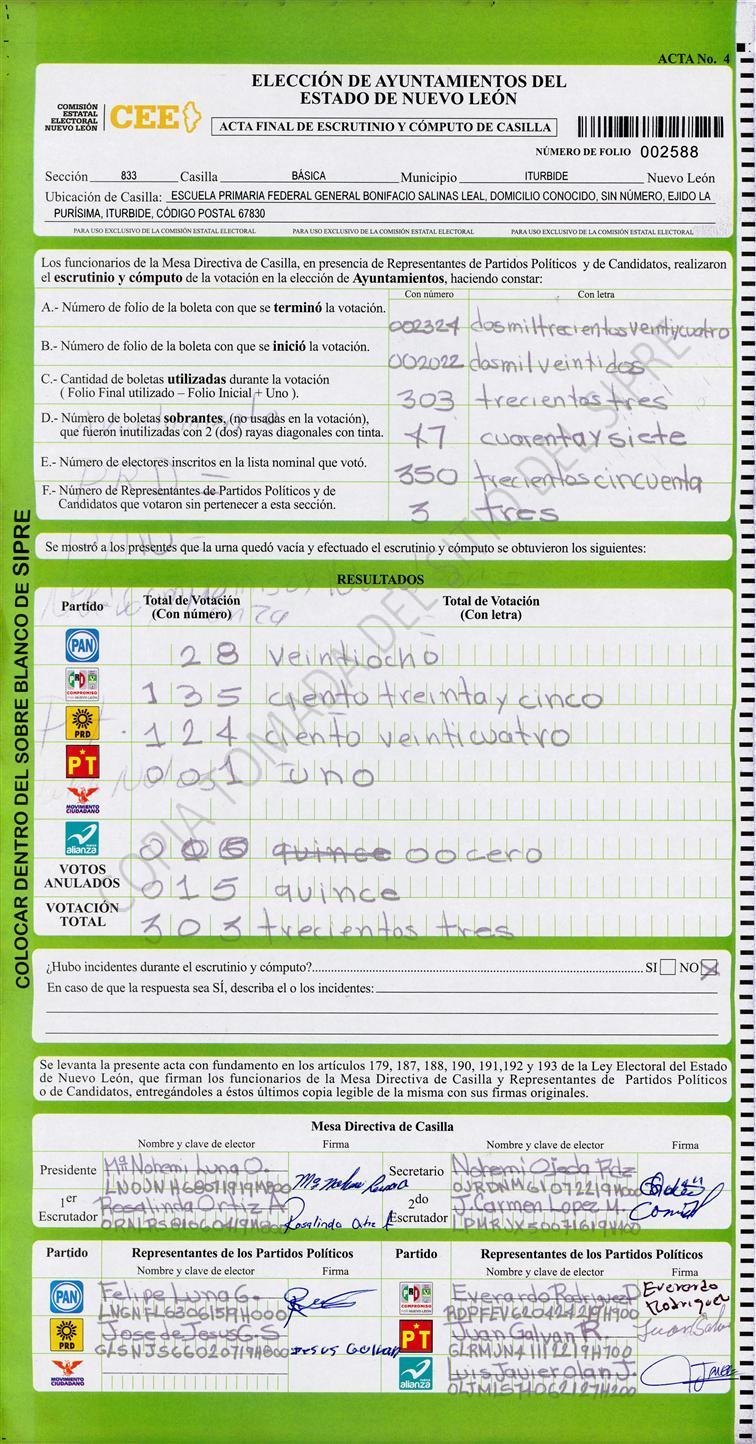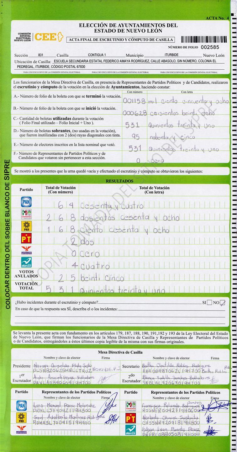 , (8) Copiado Movido , (9) Con Signos Inválidos , (10) Excede Lista Nominal , (11) Otra |