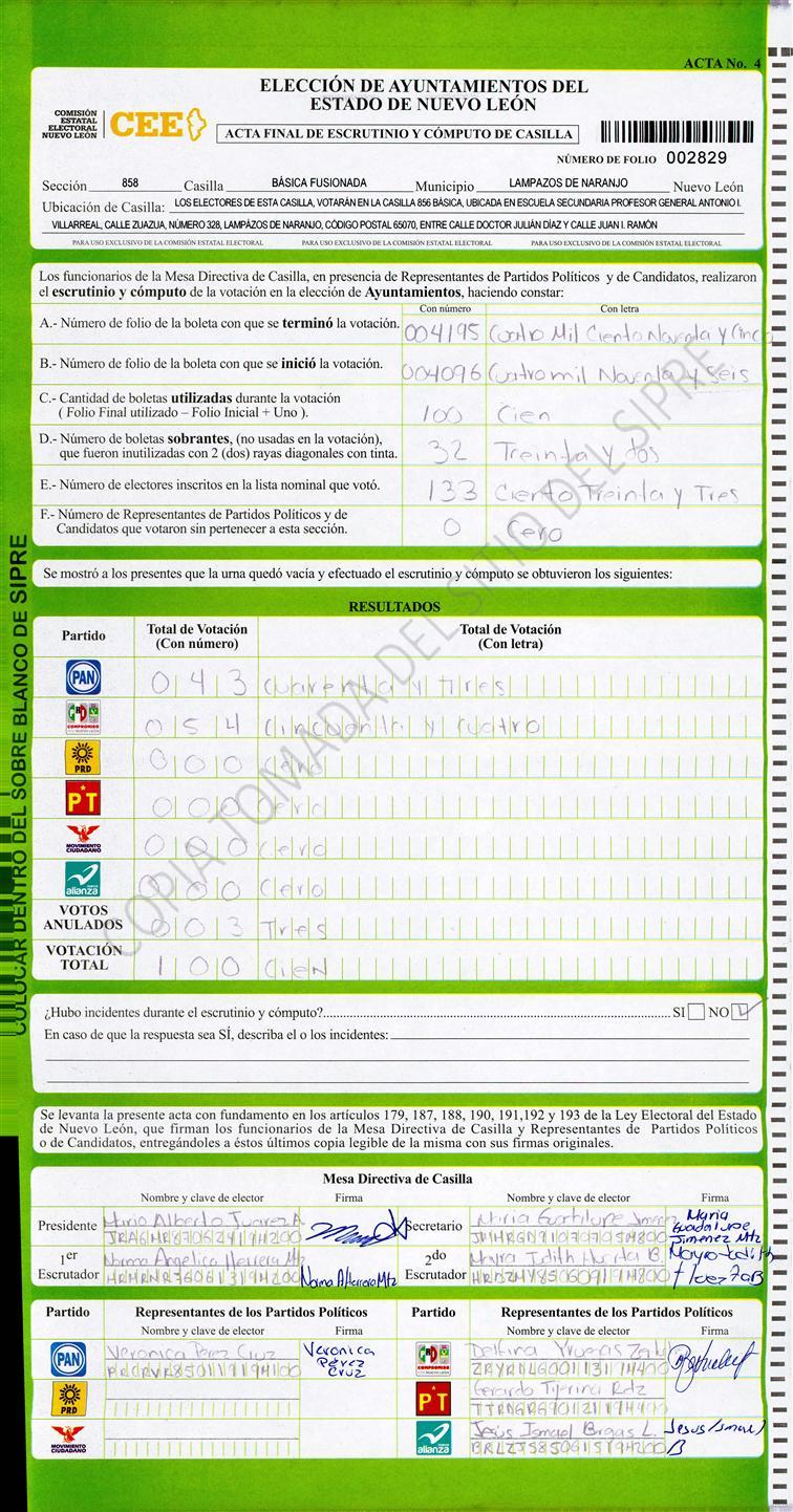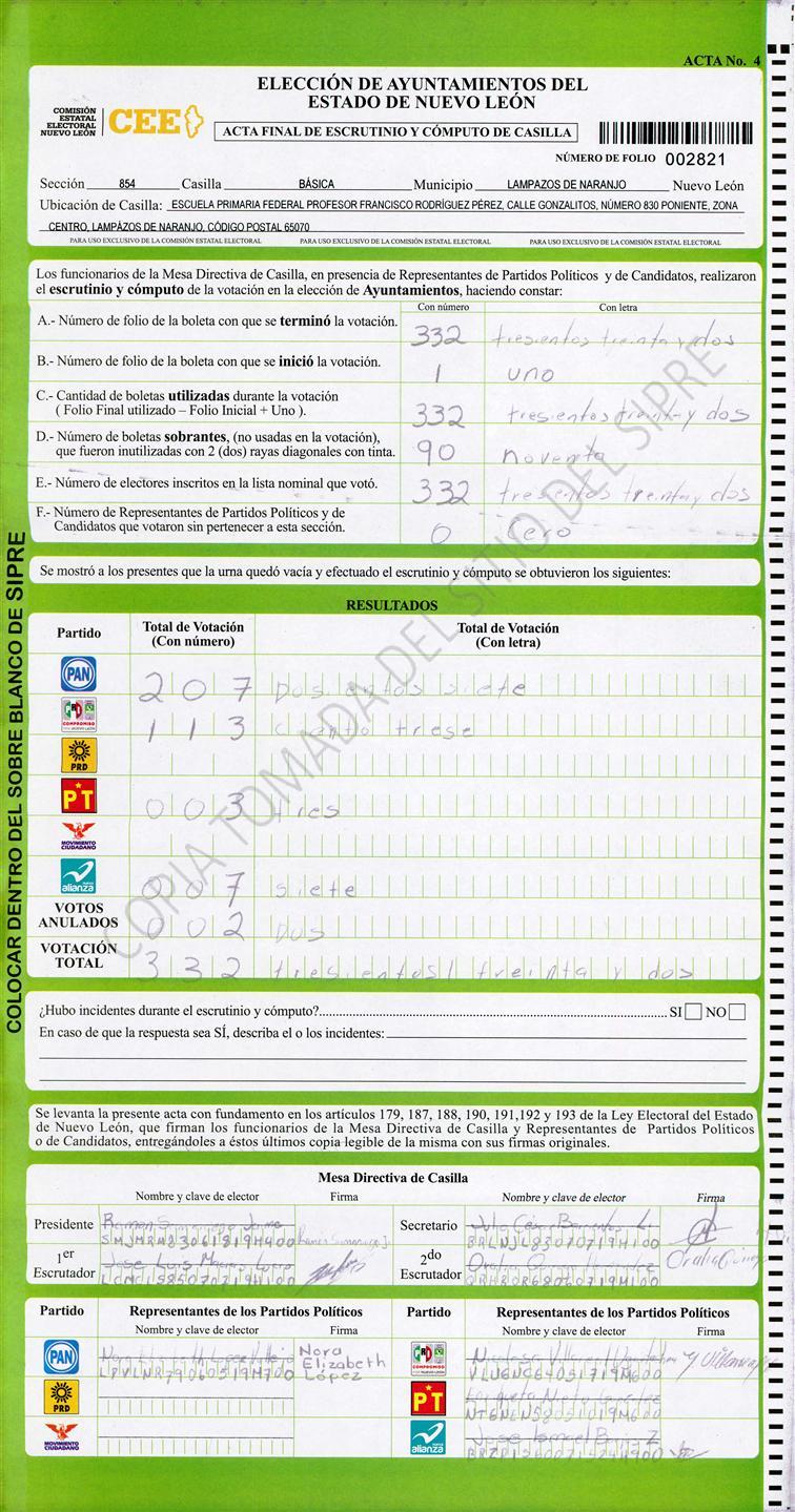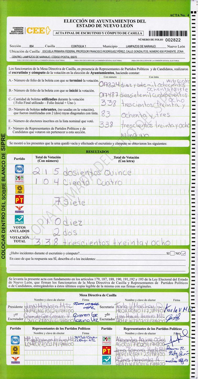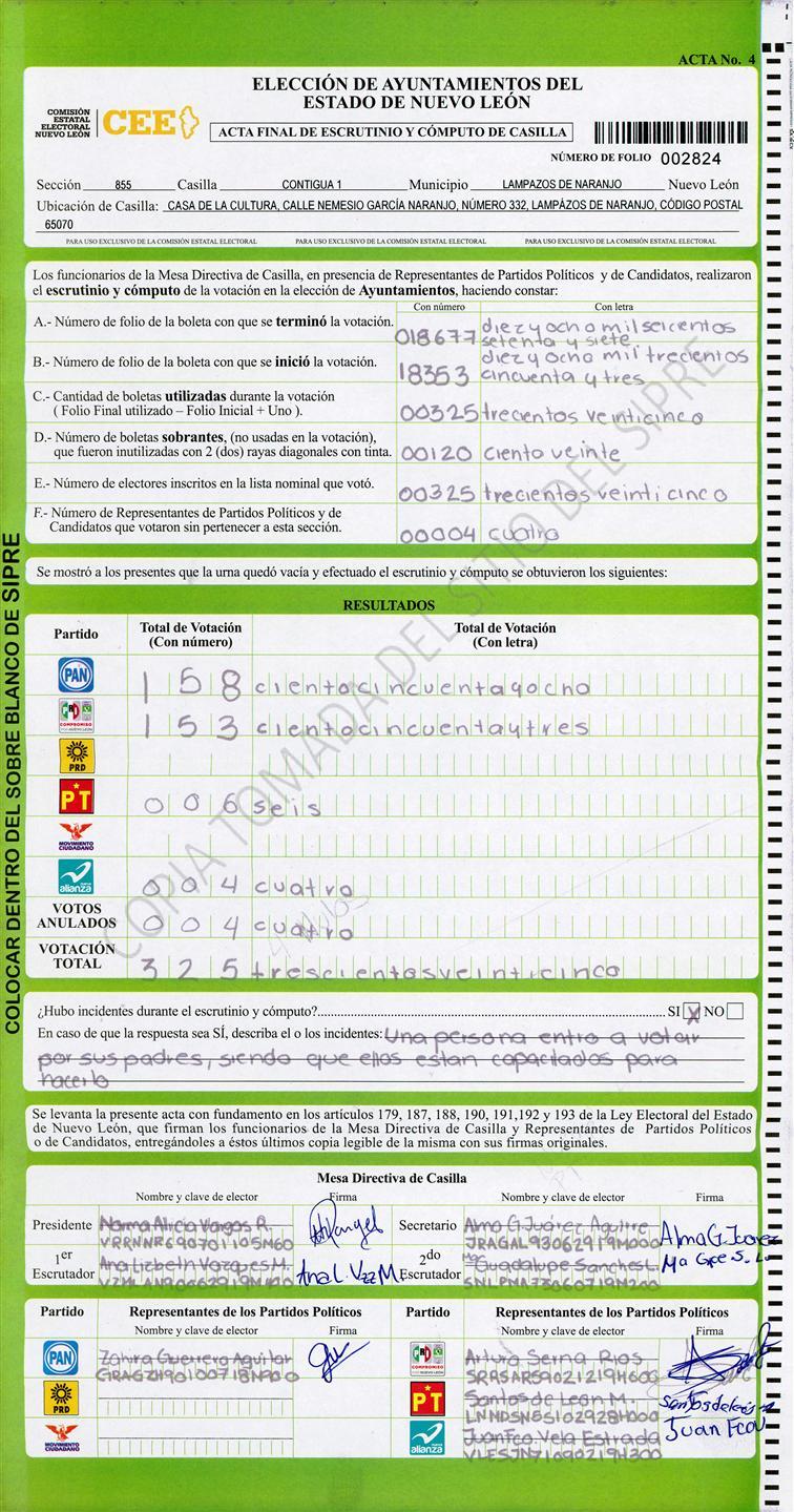 , (8) Copiado Movido , (9) Con Signos Inválidos , (10) Excede Lista Nominal , (11) Otra |