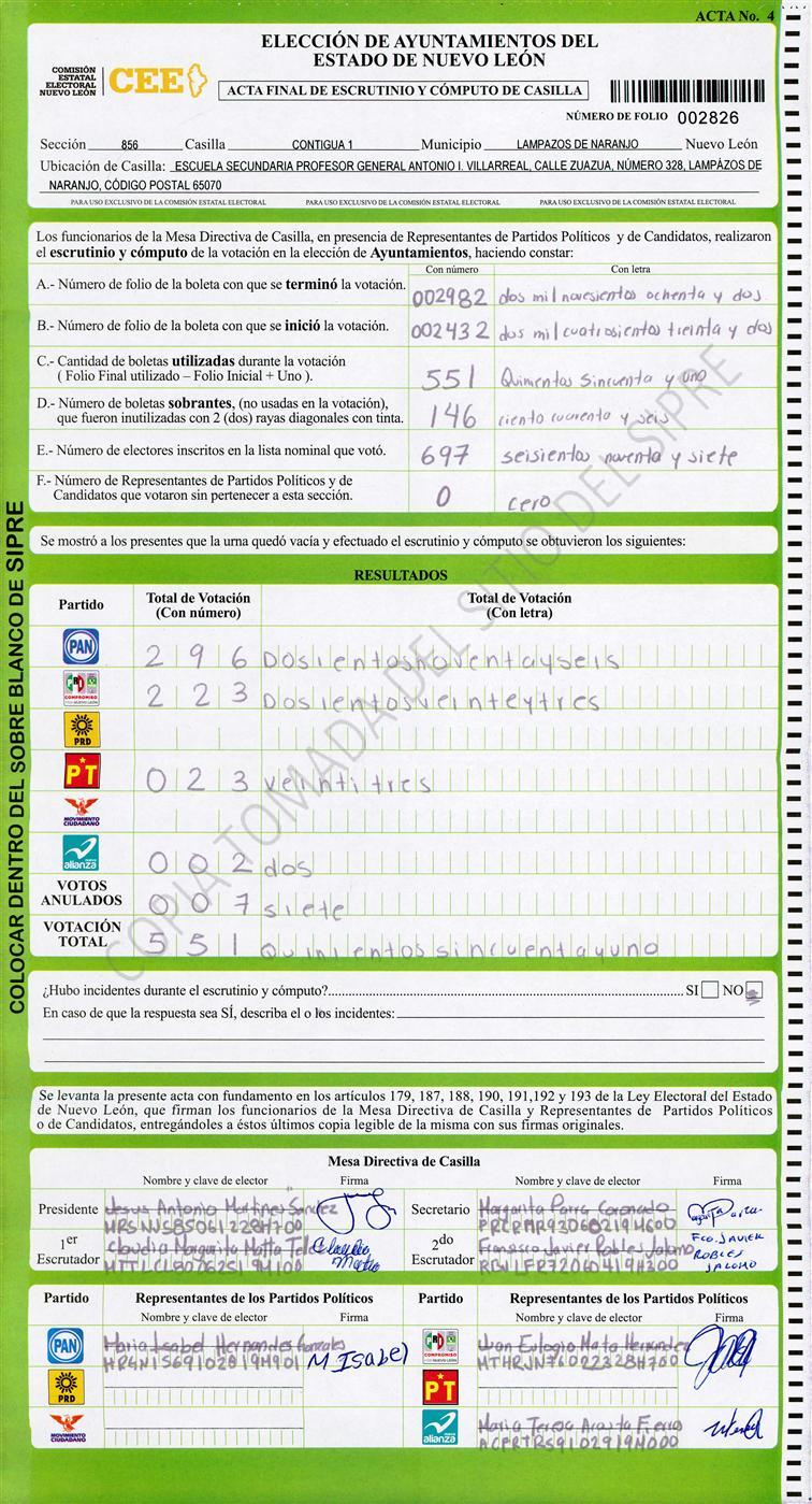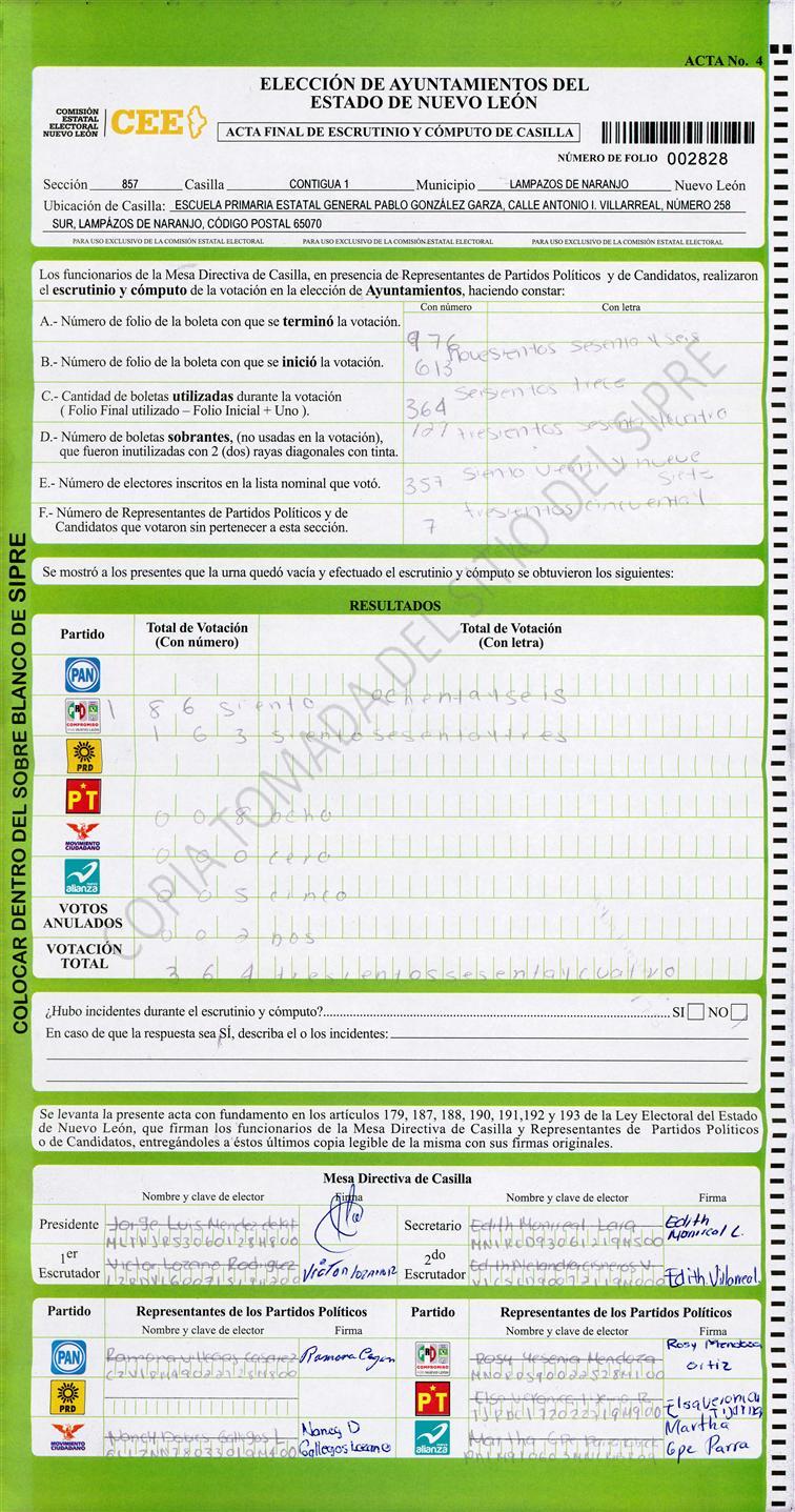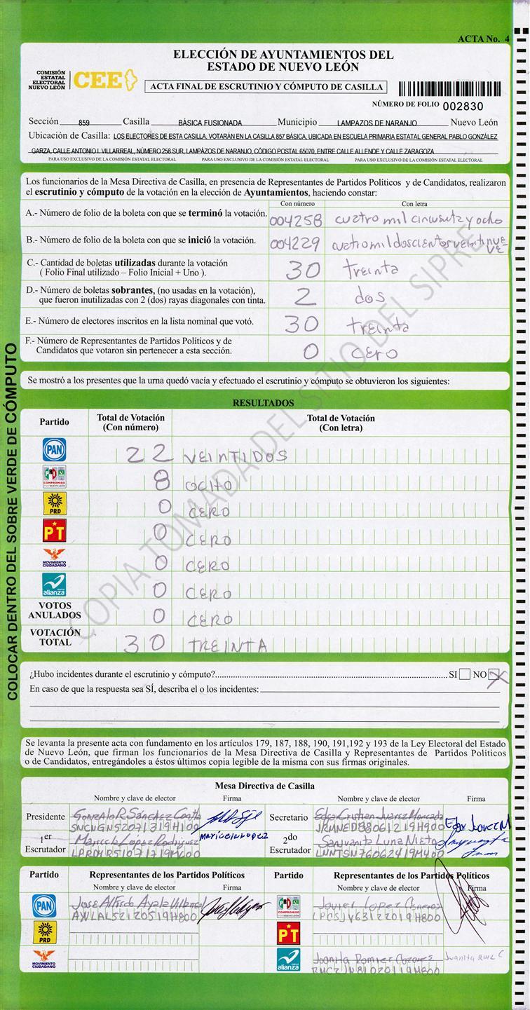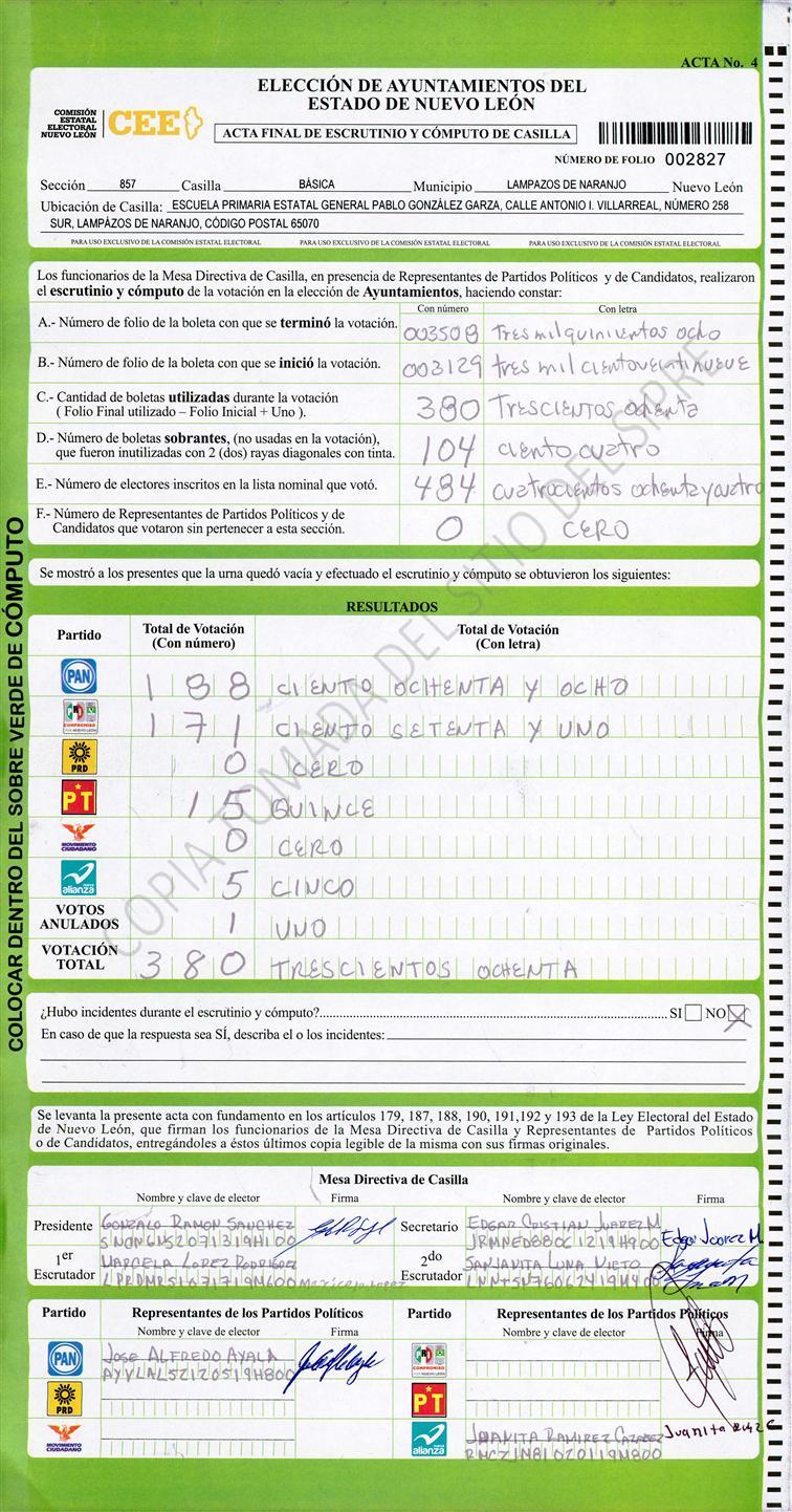 | Lampazos de Naranjo | 1,556 | 1,216 | 81 | 52 | 28 | 2,933 | 4,260 | 77.7 | ||||
