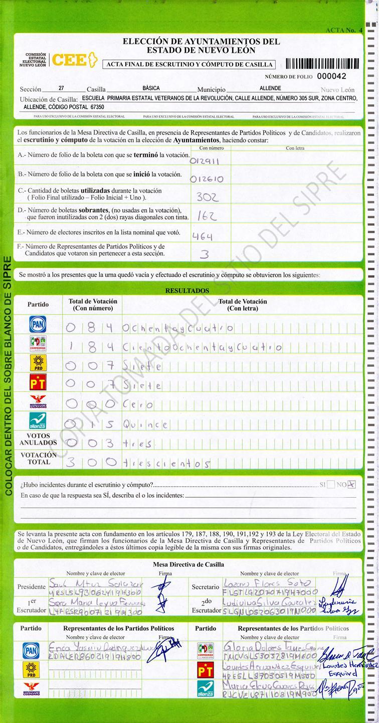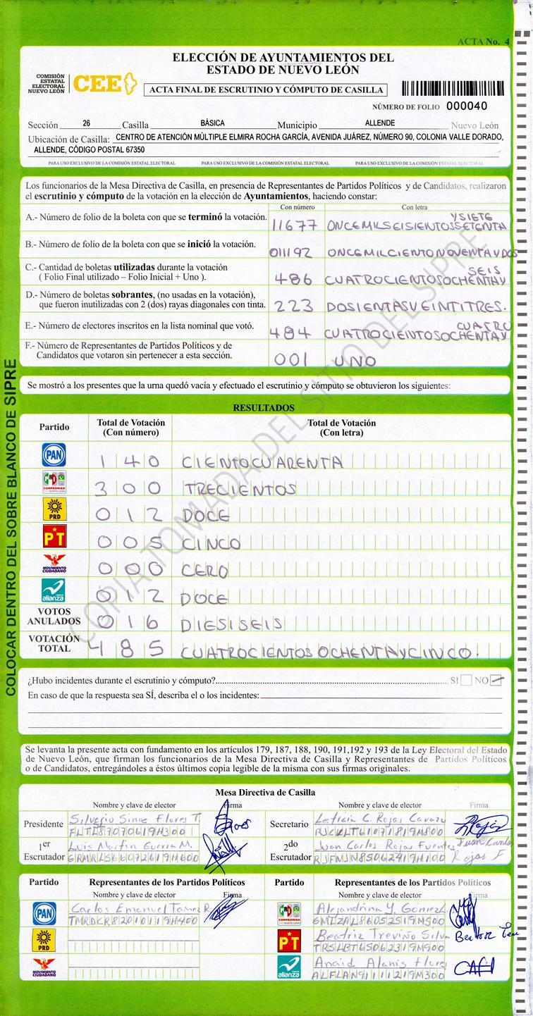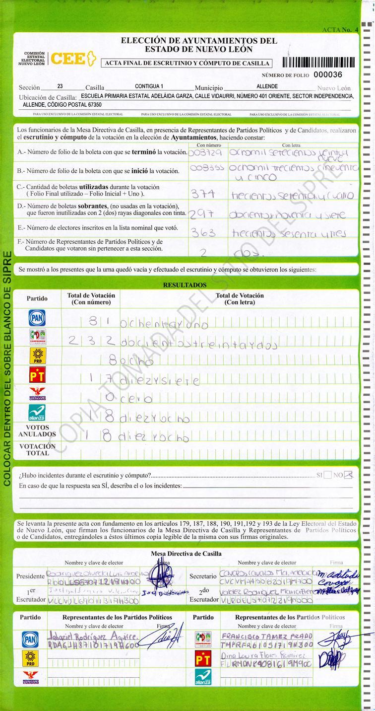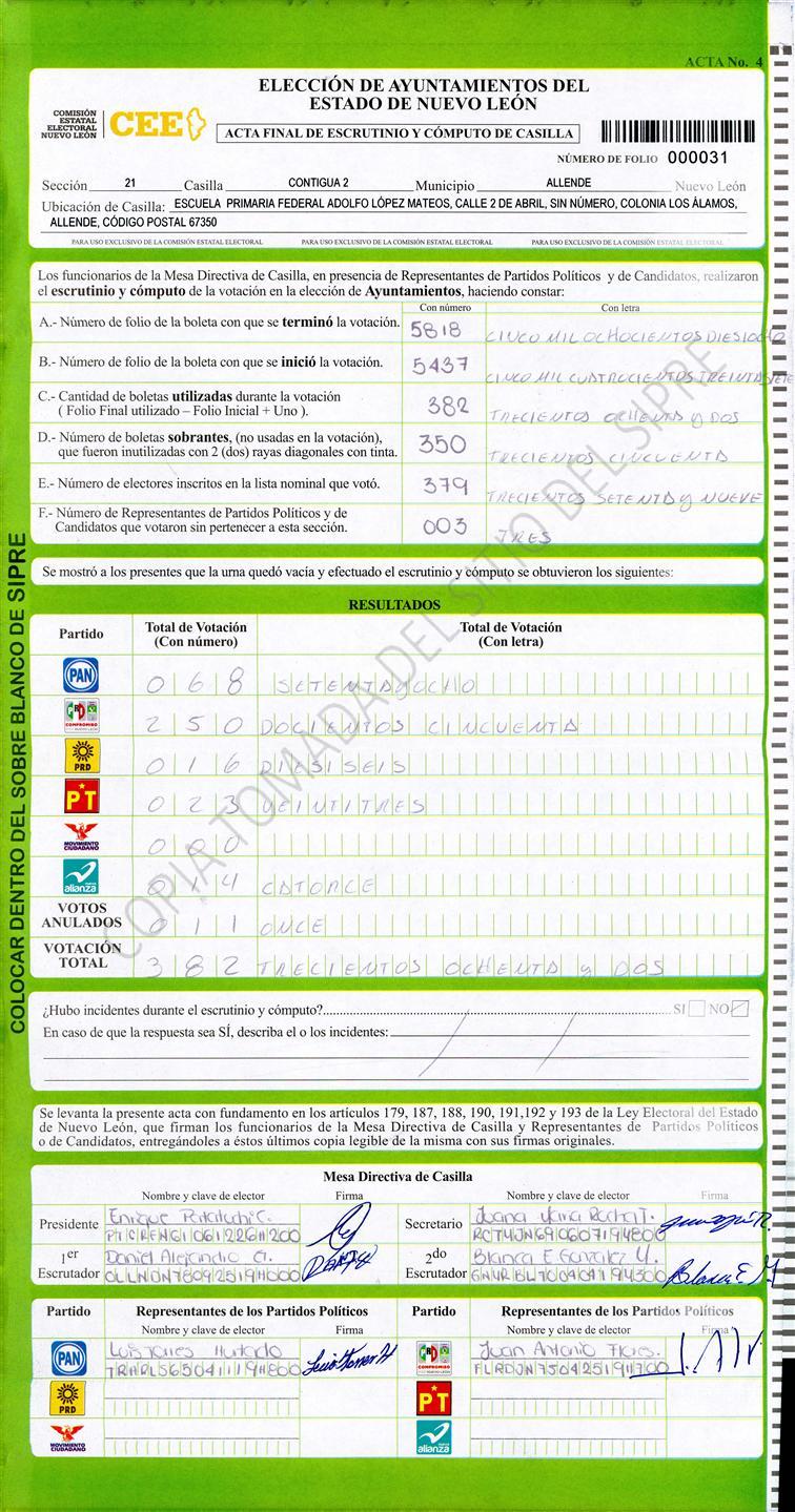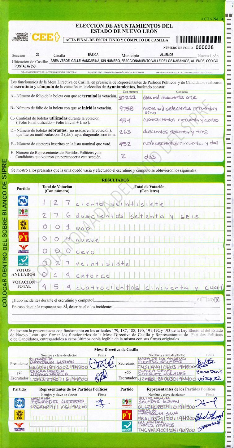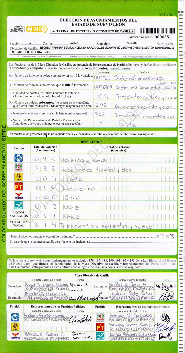 , (8) Copiado Movido , (9) Con Signos Inválidos , (10) Excede Lista Nominal , (11) Otra |