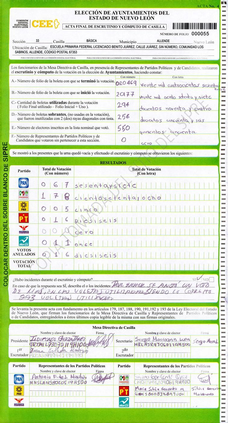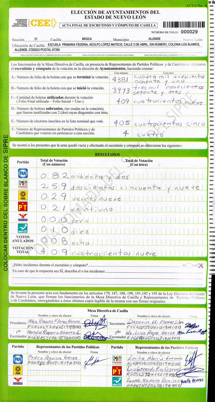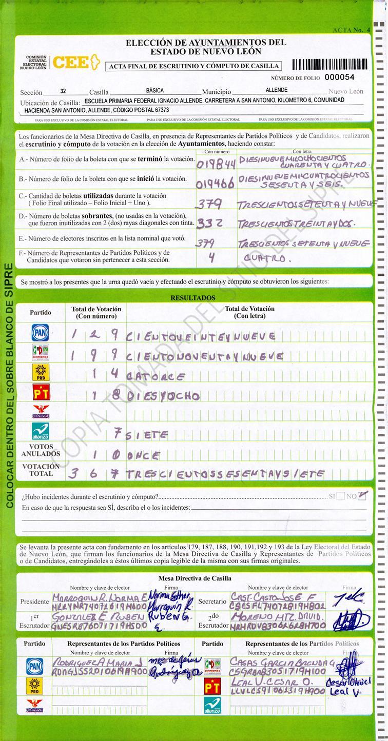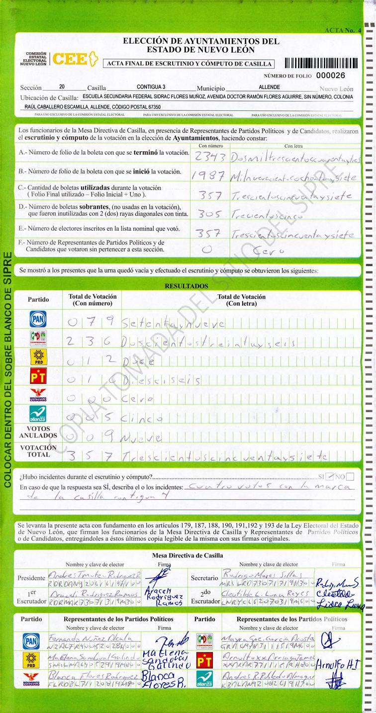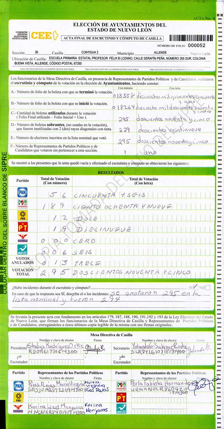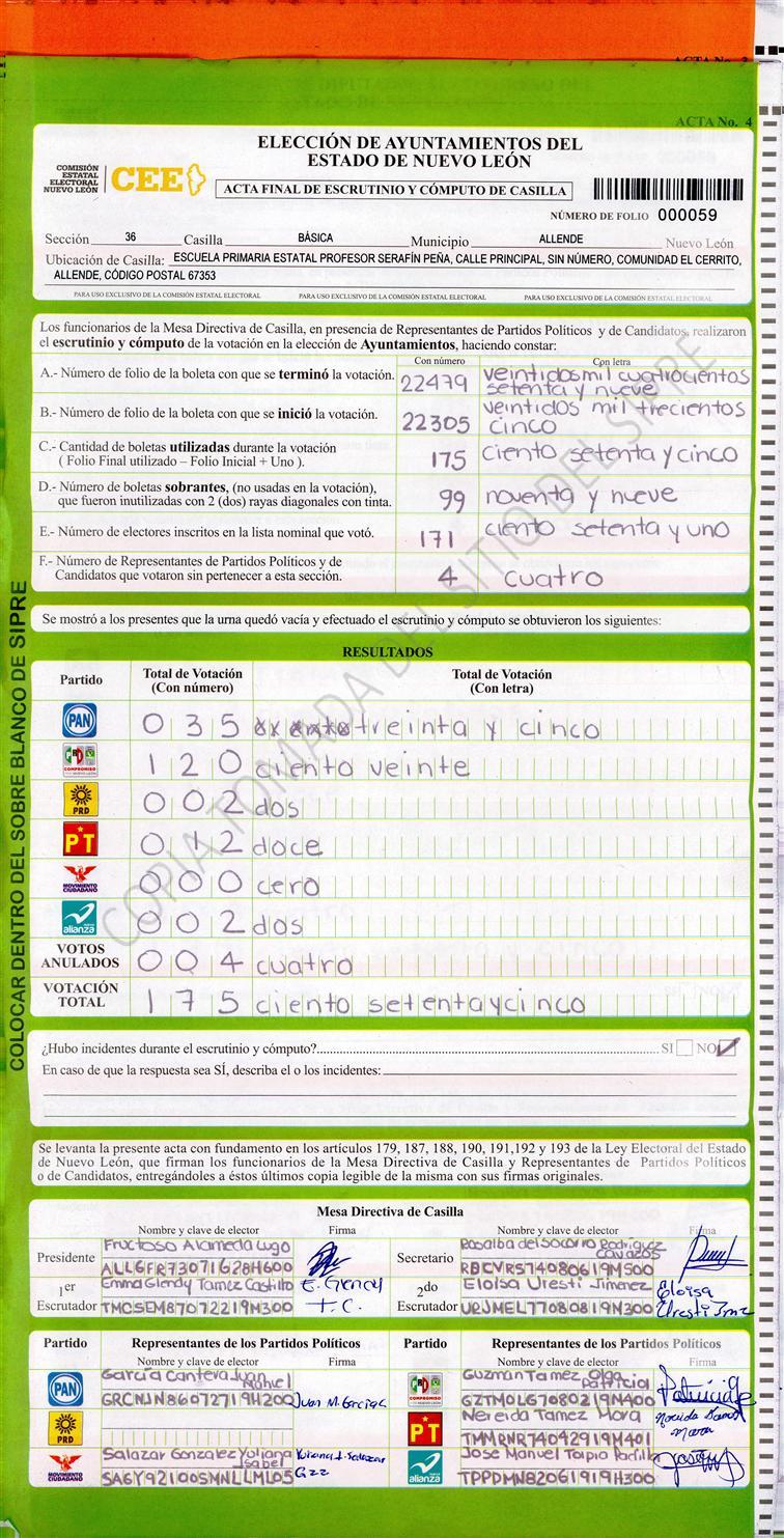 , (8) Copiado Movido , (9) Con Signos Inválidos , (10) Excede Lista Nominal , (11) Otra |