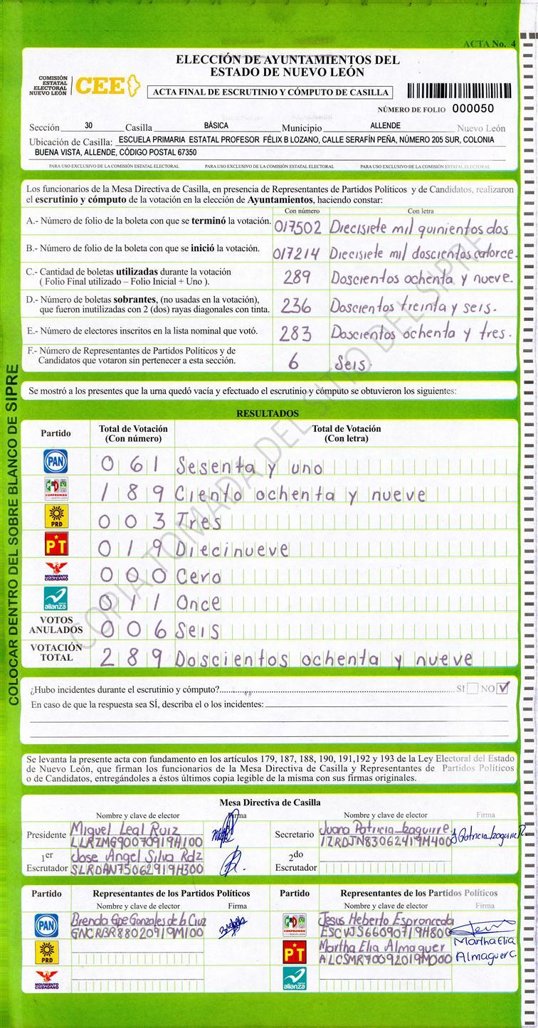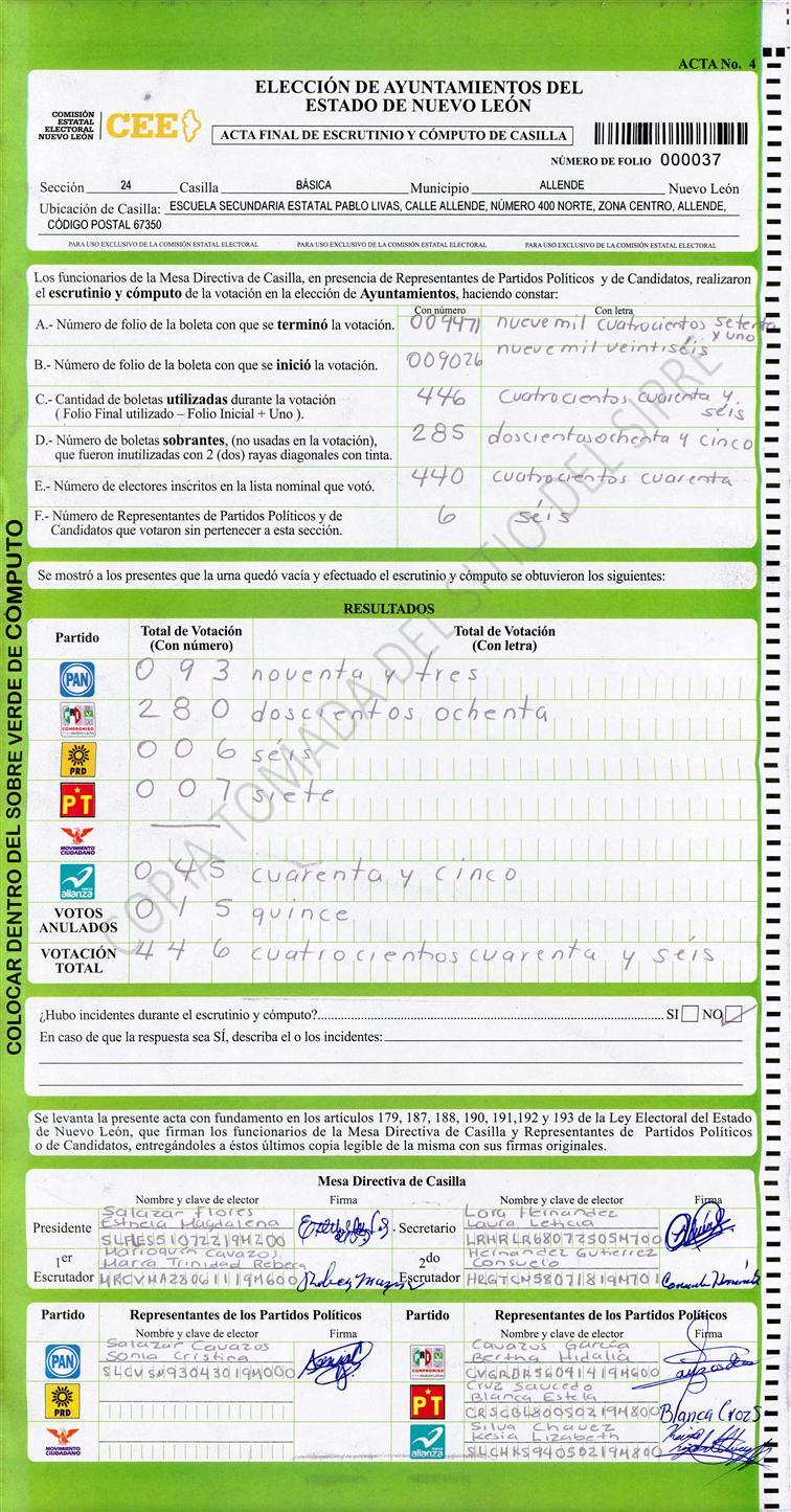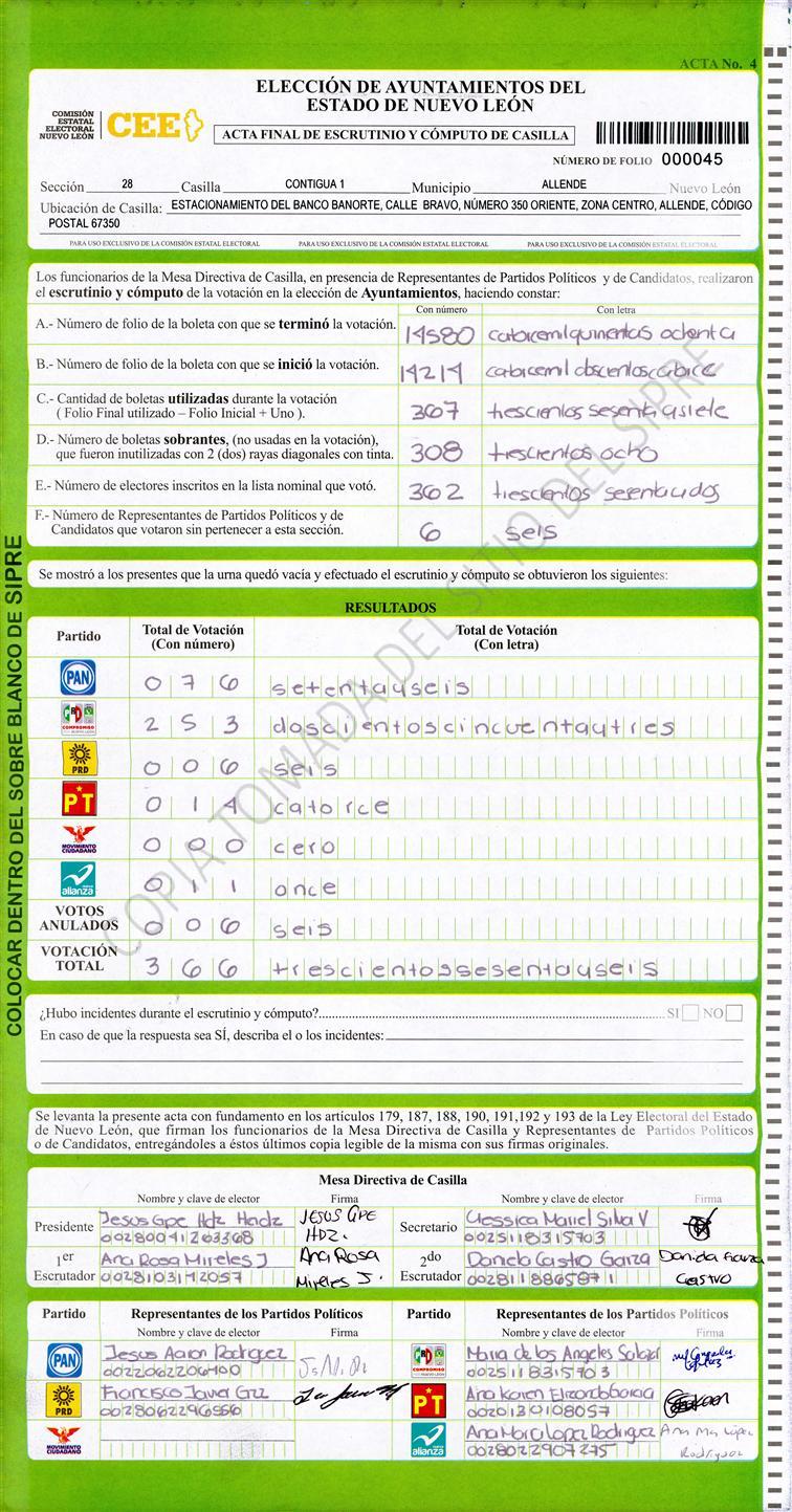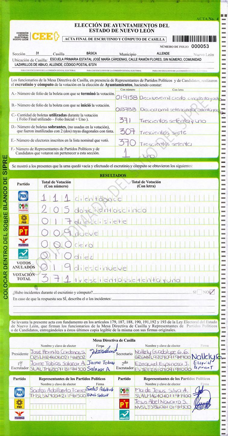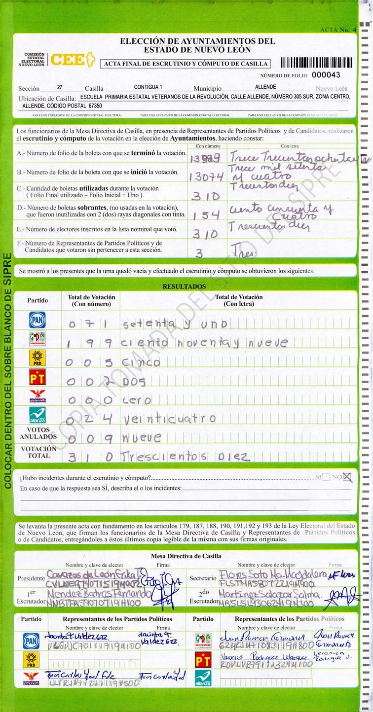 , (8) Copiado Movido , (9) Con Signos Inválidos , (10) Excede Lista Nominal , (11) Otra |
