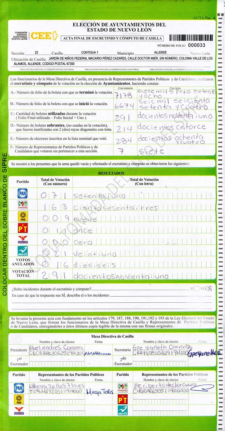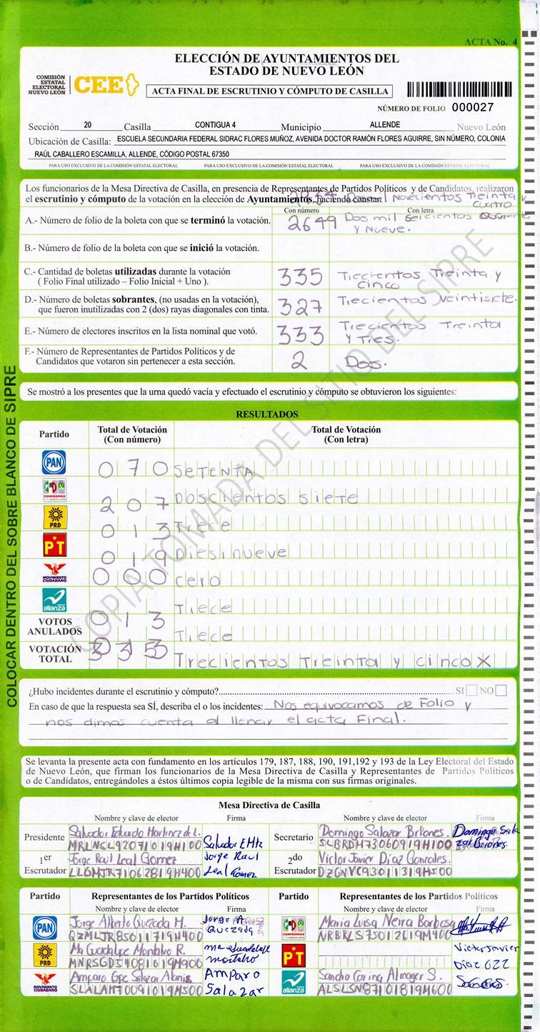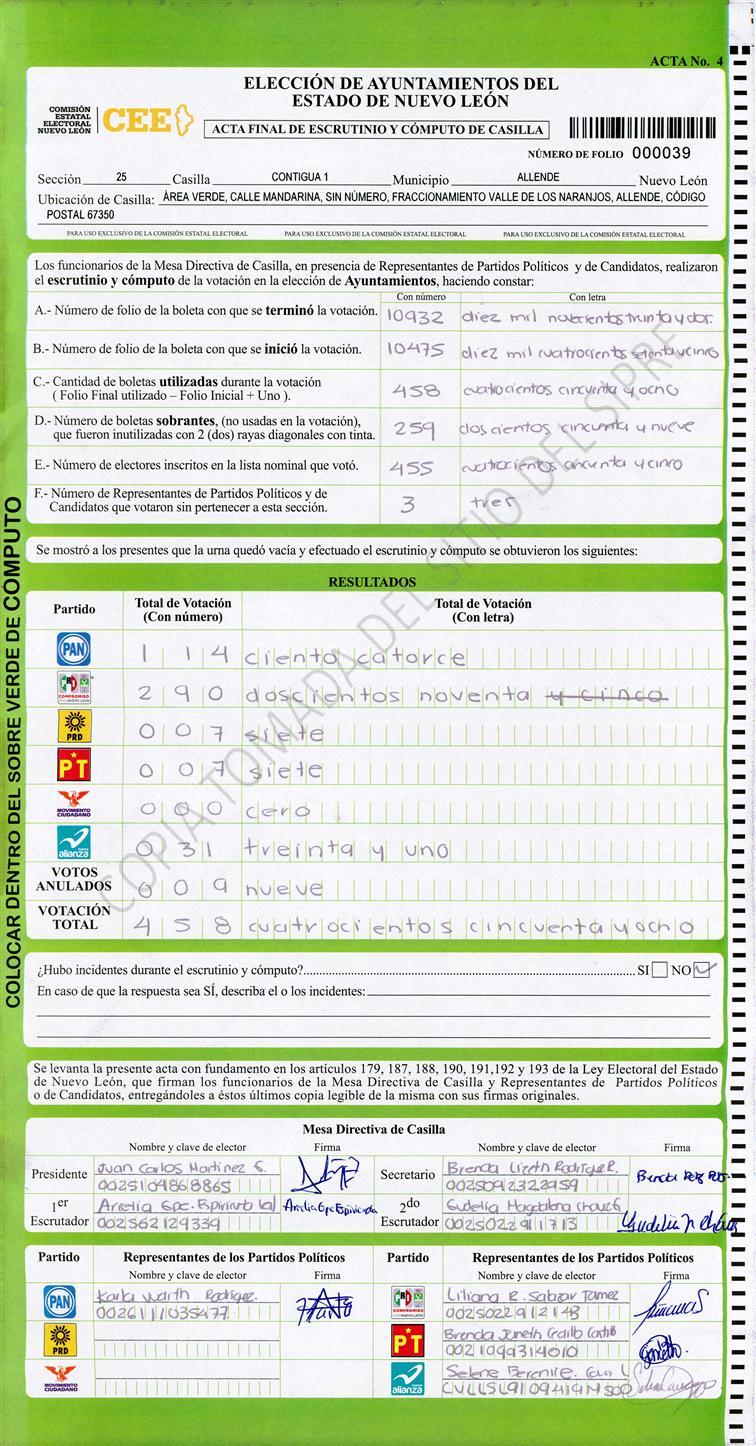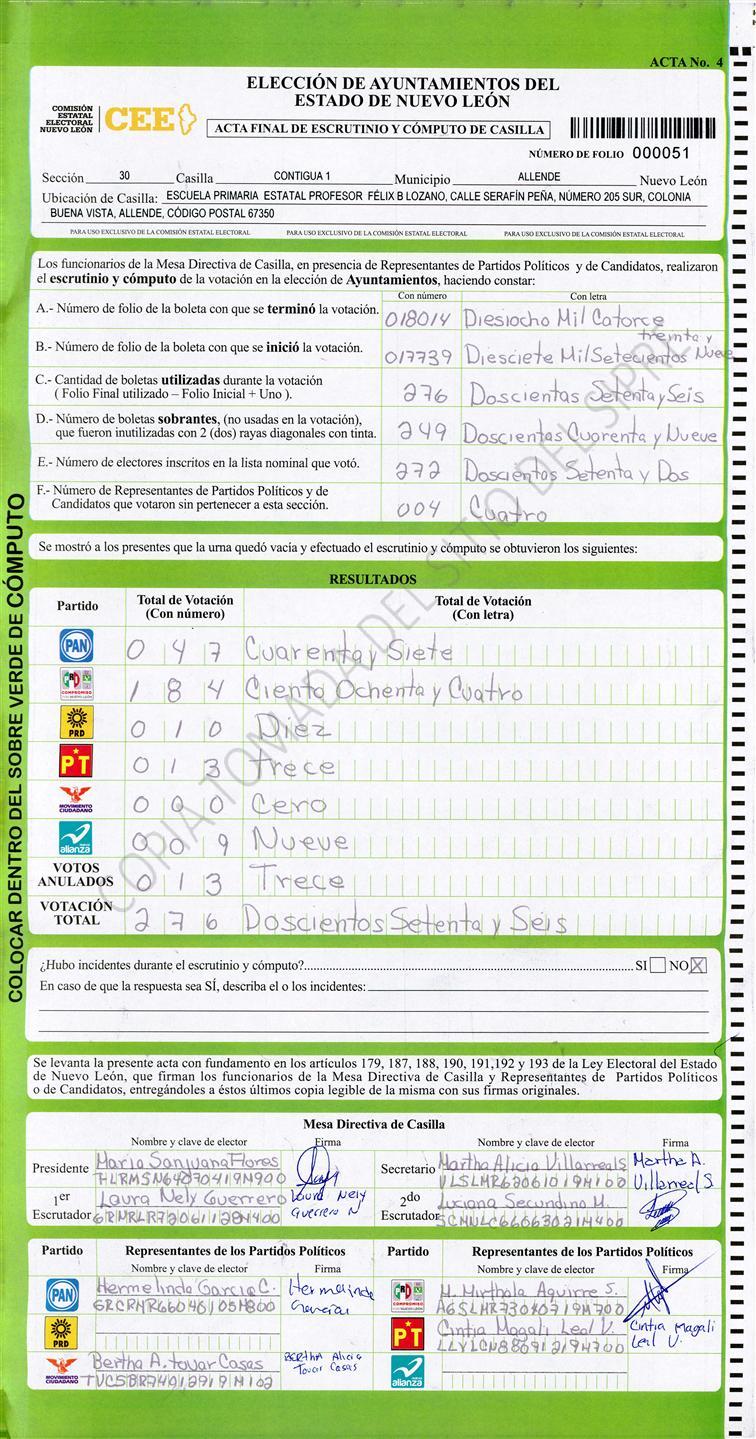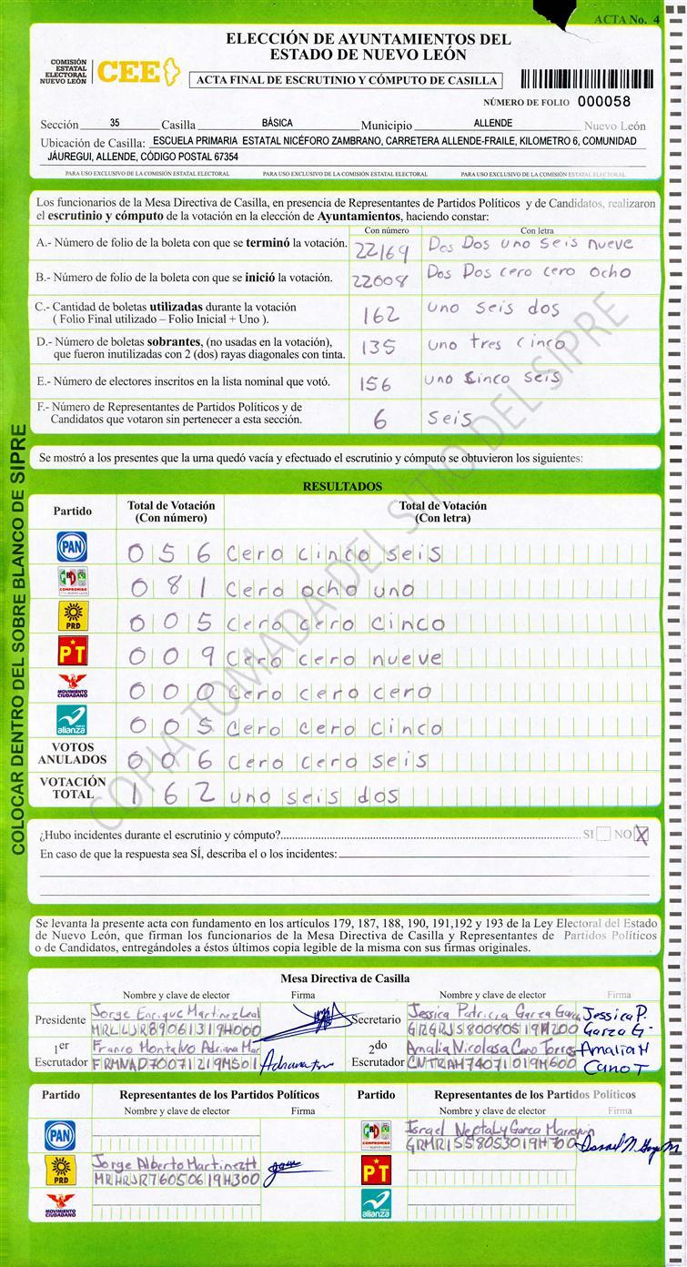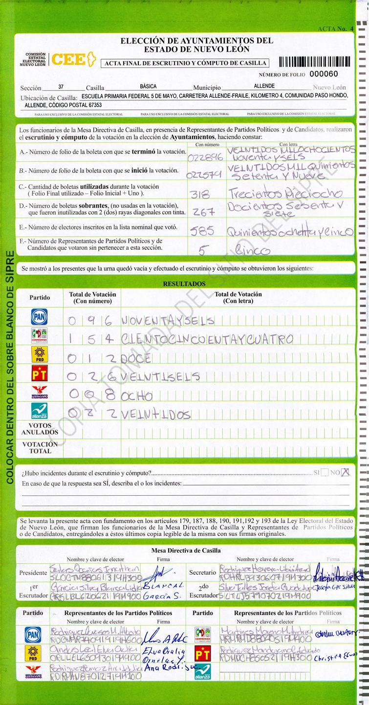 , (8) Copiado Movido , (9) Con Signos Inválidos , (10) Excede Lista Nominal , (11) Otra |