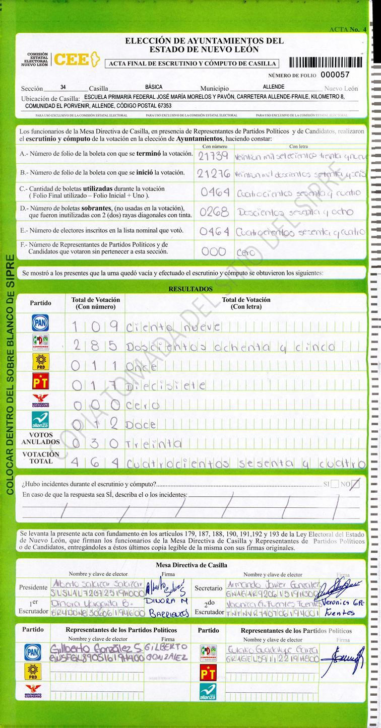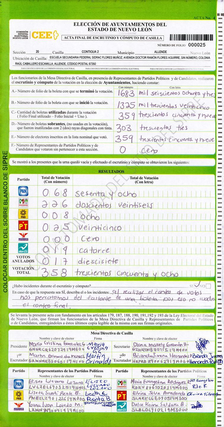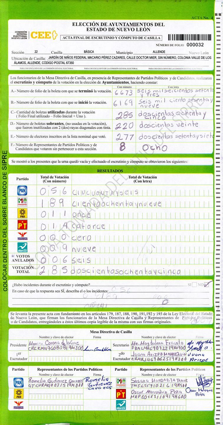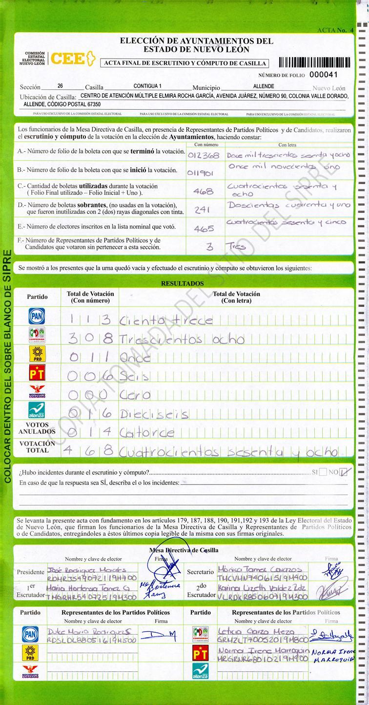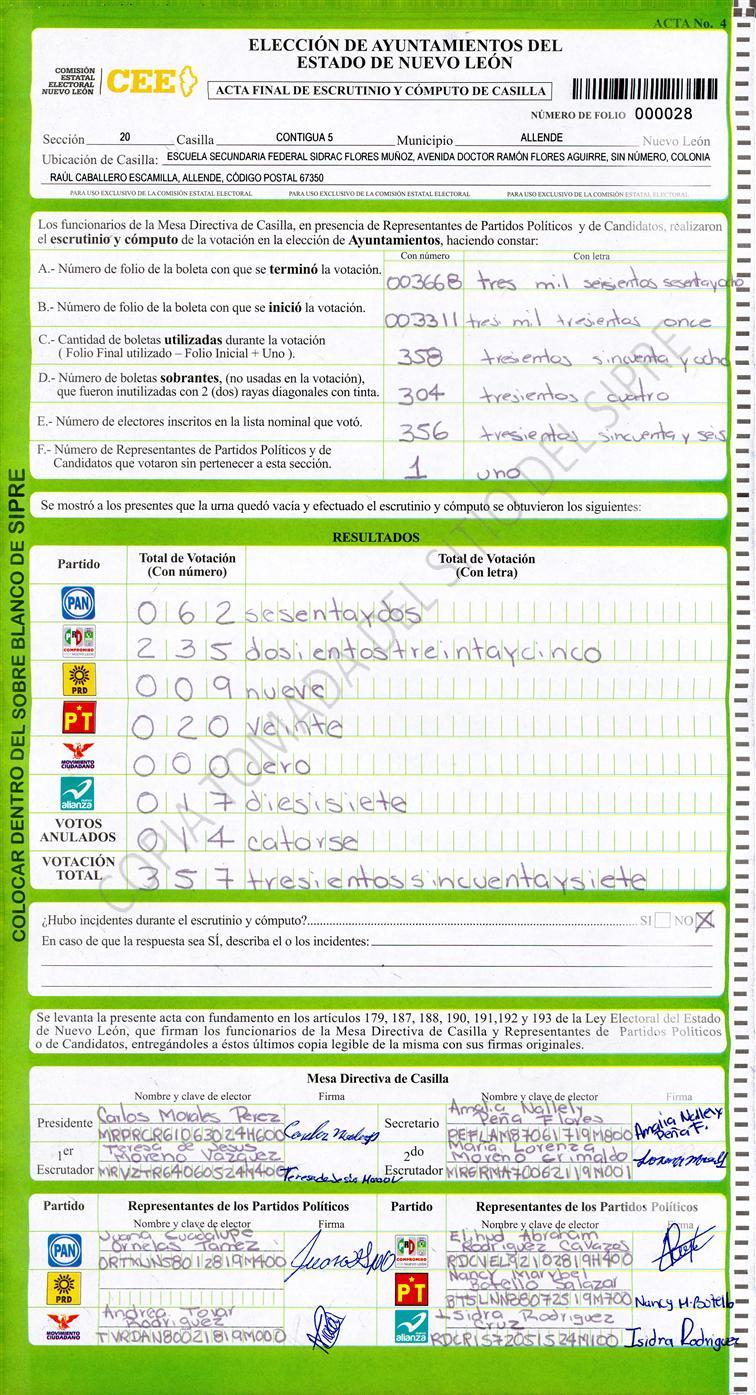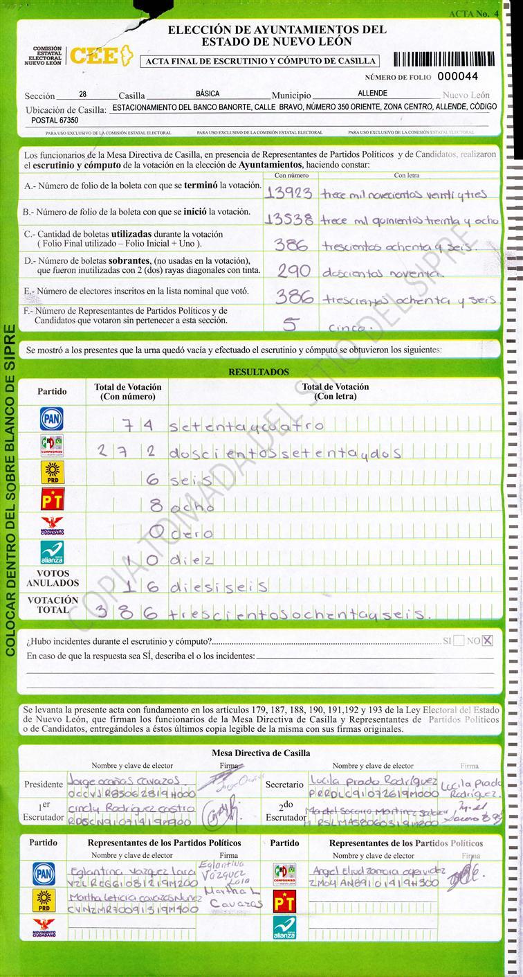 , (8) Copiado Movido , (9) Con Signos Inválidos , (10) Excede Lista Nominal , (11) Otra |