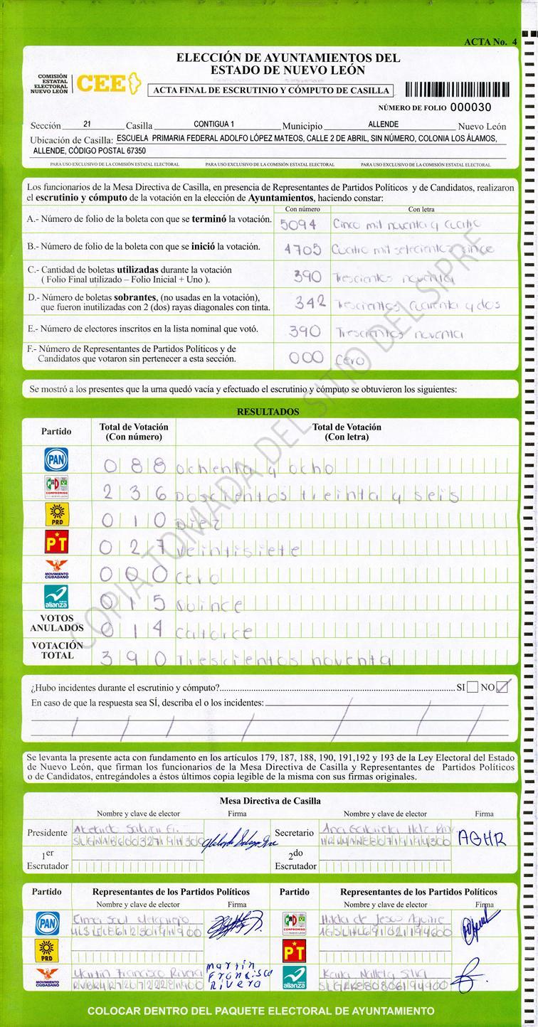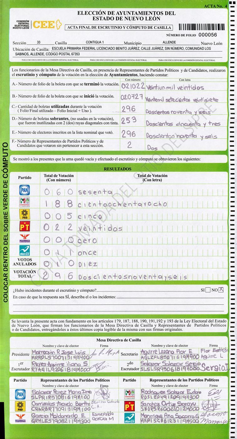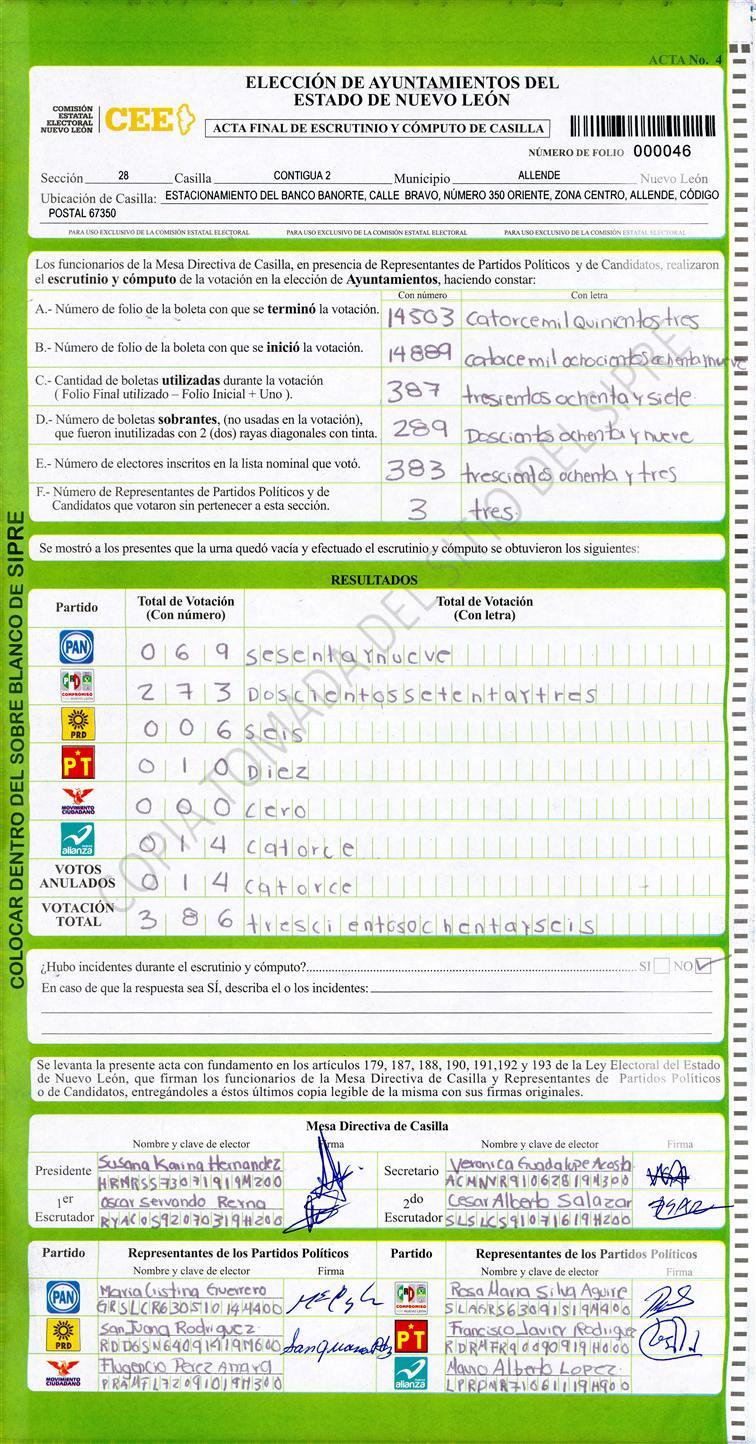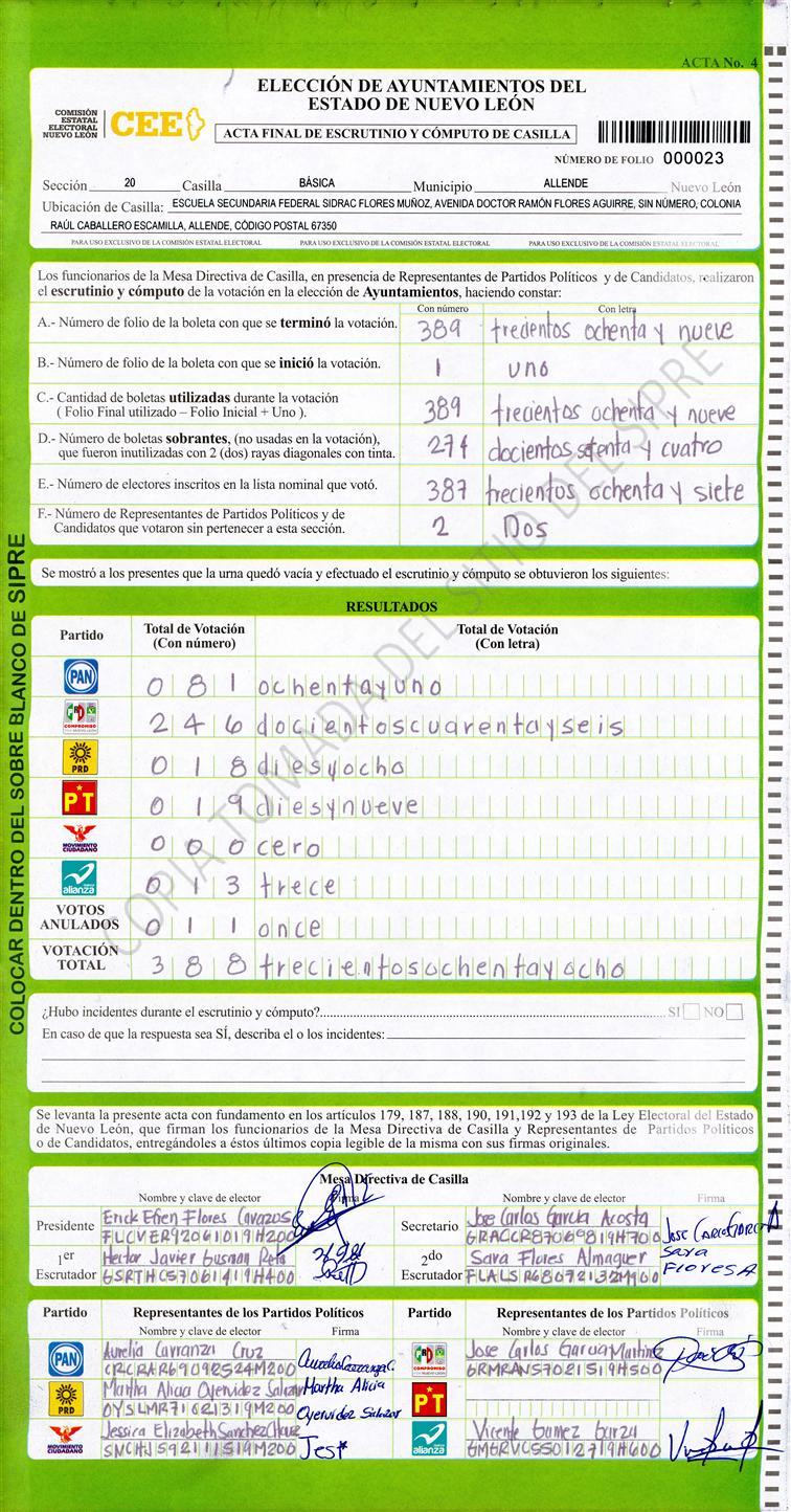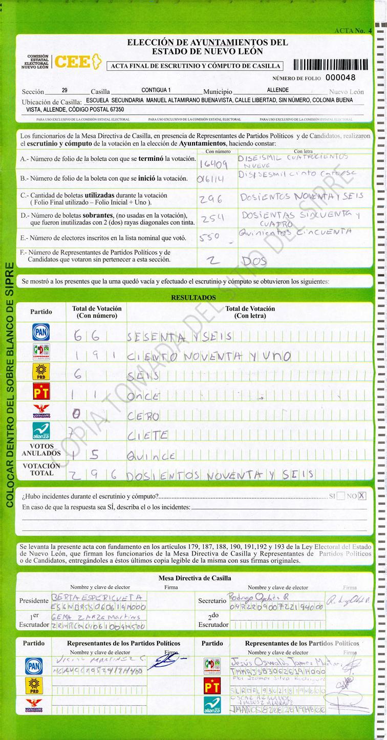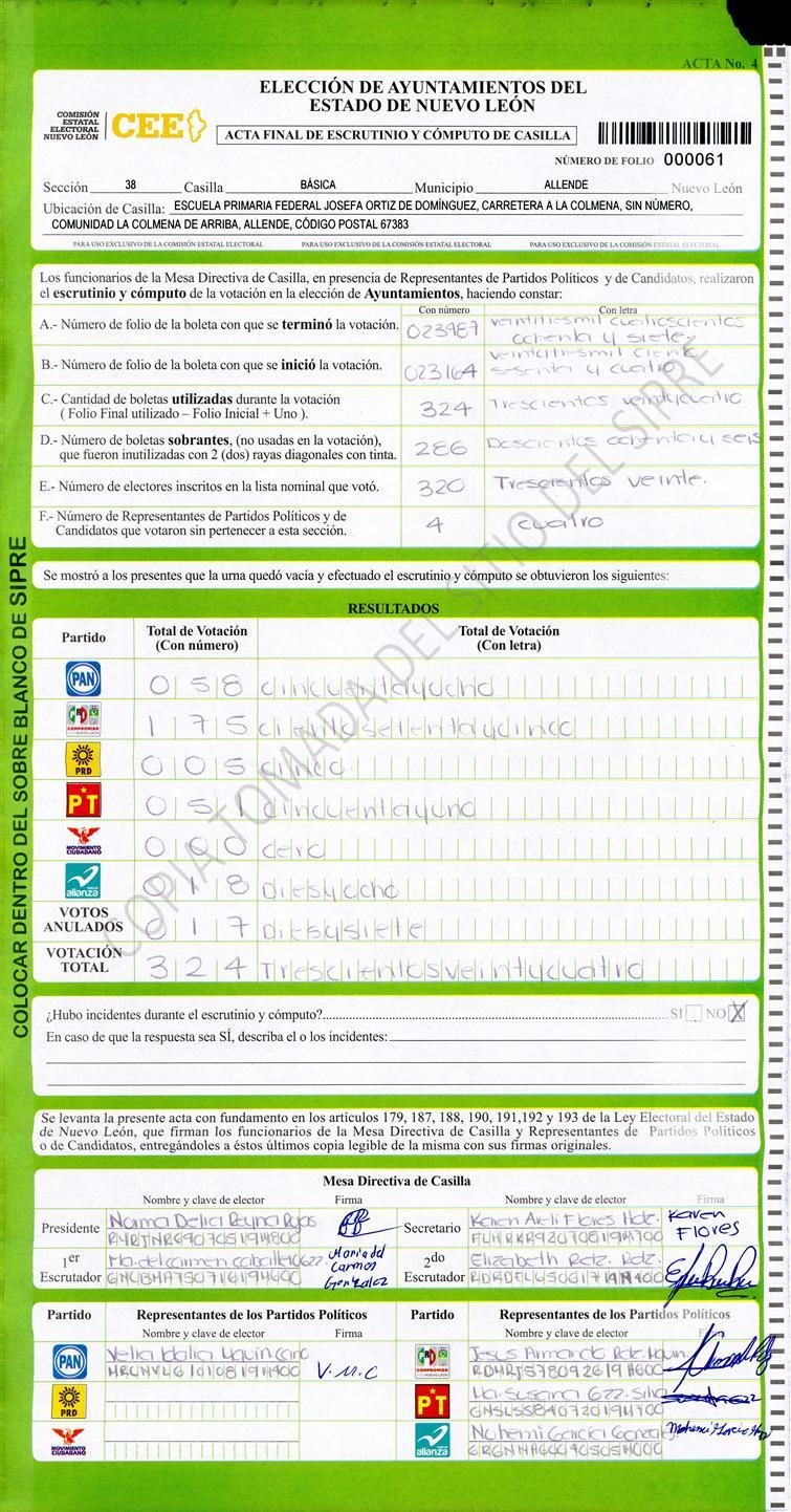 , (8) Copiado Movido , (9) Con Signos Inválidos , (10) Excede Lista Nominal , (11) Otra |