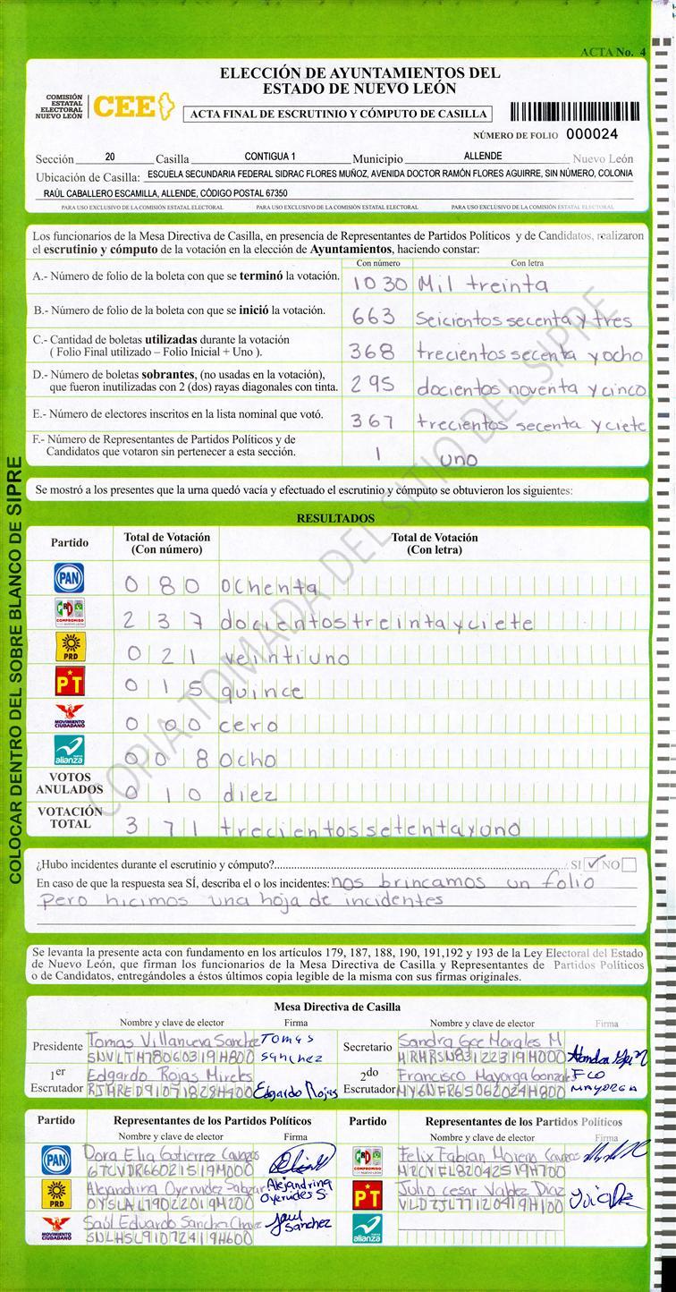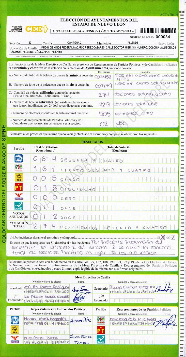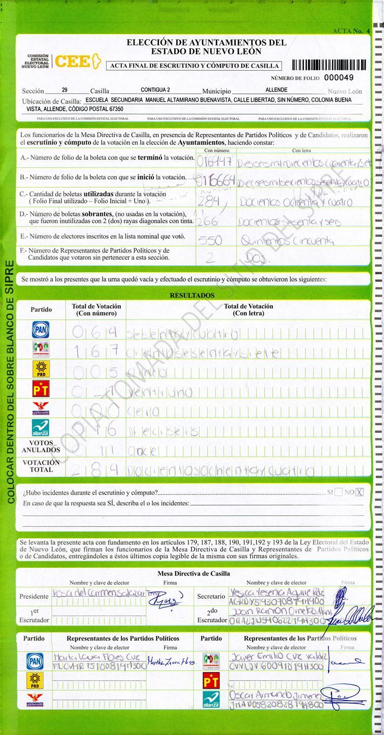 Acta con Incidencia: No hay acta |