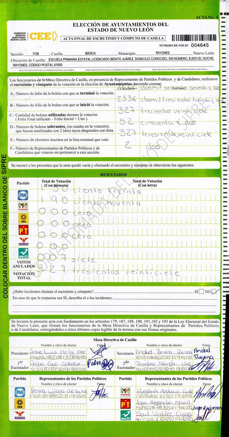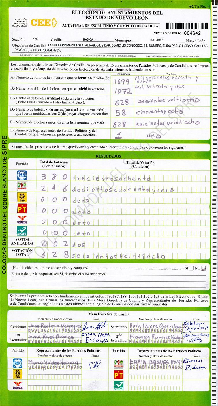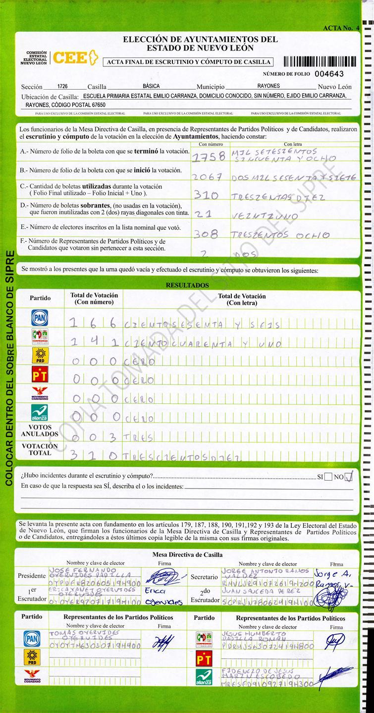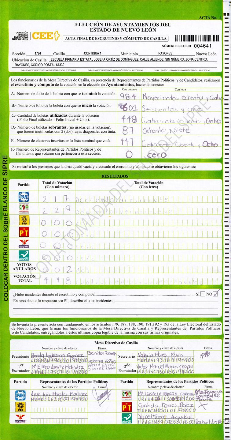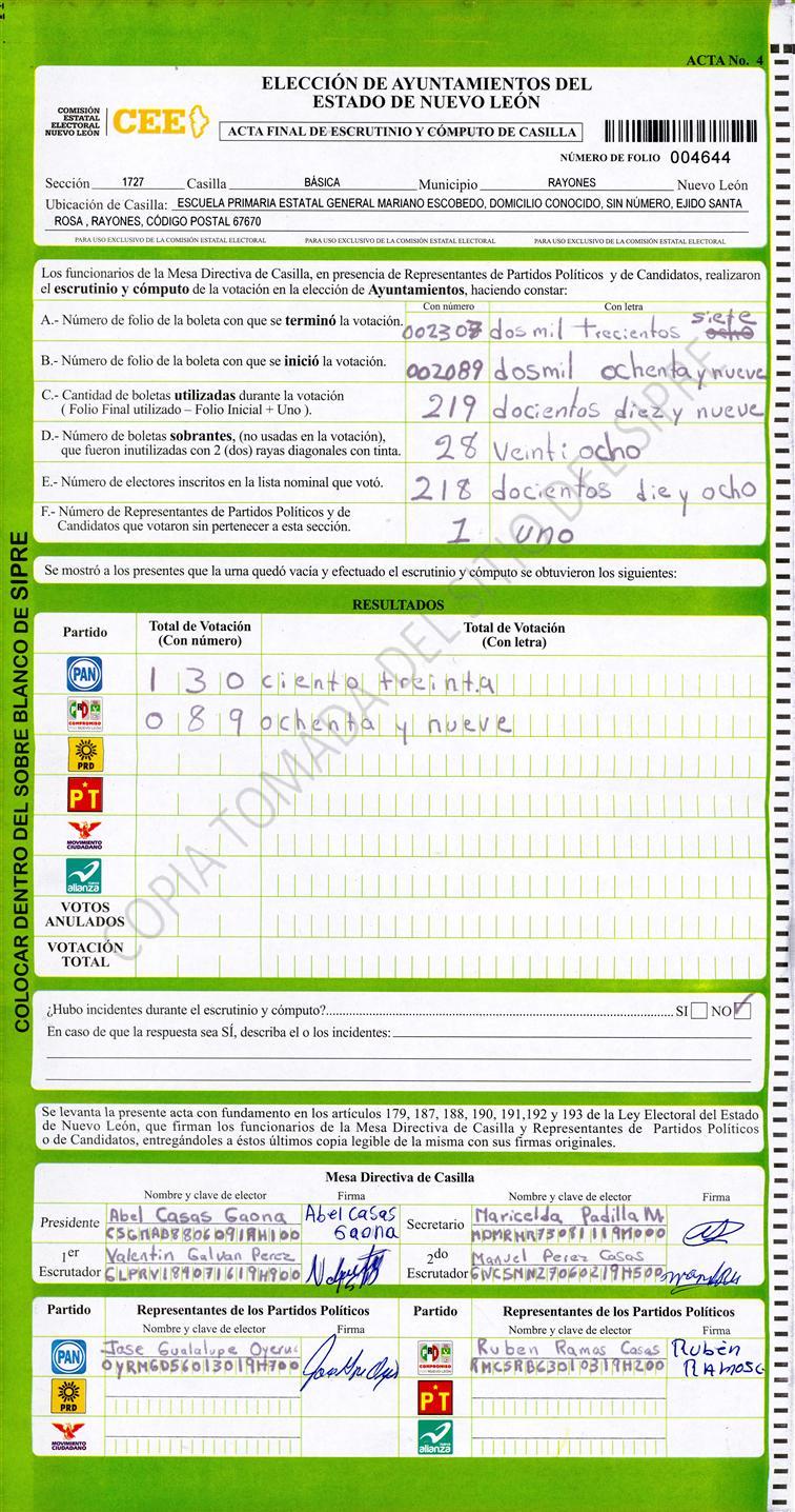 , (8) Copiado Movido , (9) Con Signos Inválidos , (10) Excede Lista Nominal , (11) Otra |