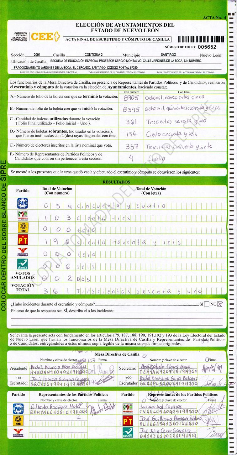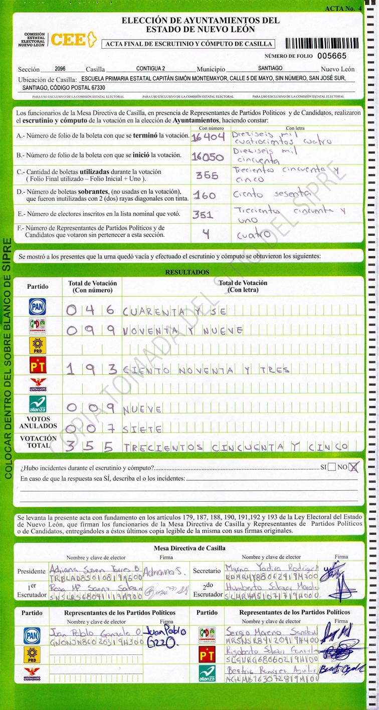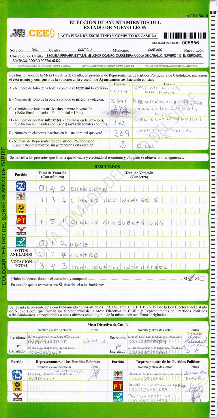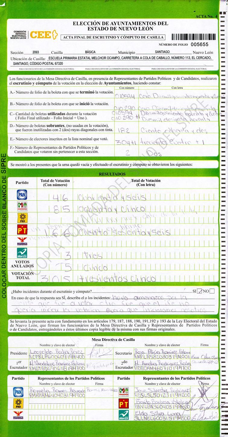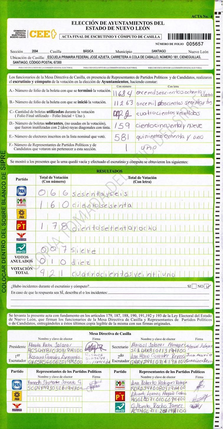 , (8) Copiado Movido , (9) Con Signos Inválidos , (10) Excede Lista Nominal , (11) Otra |