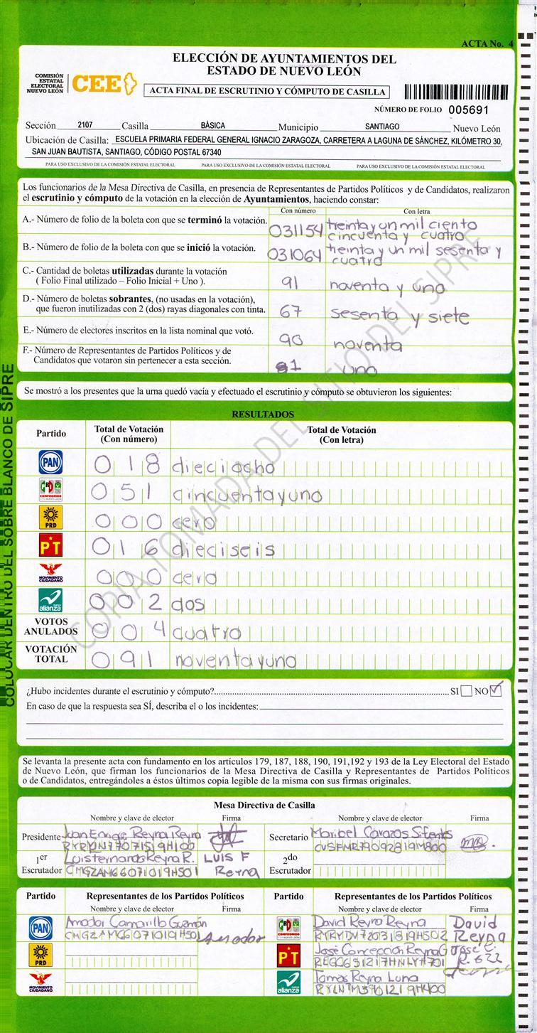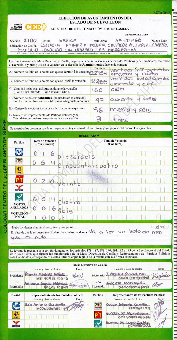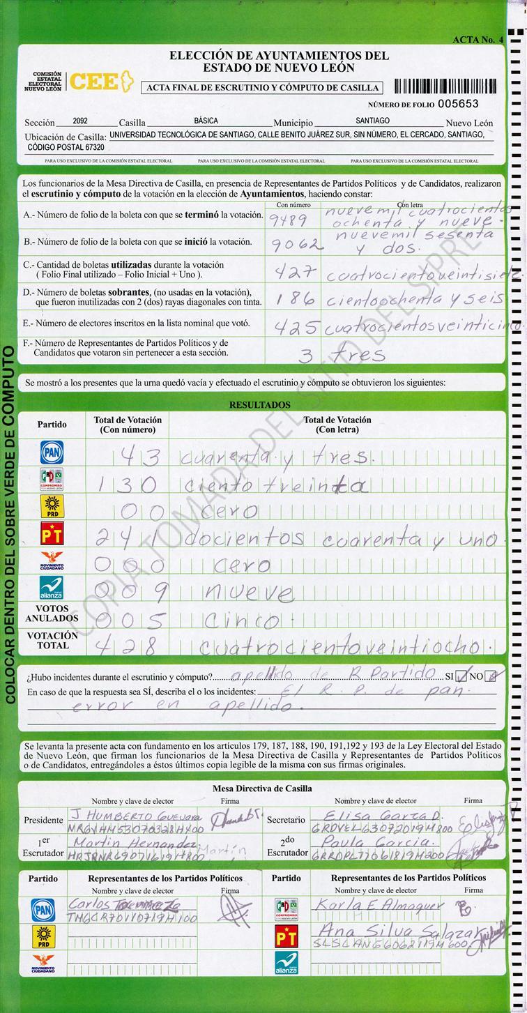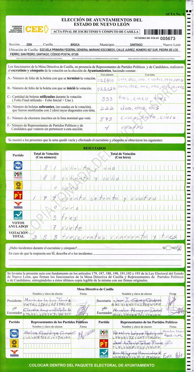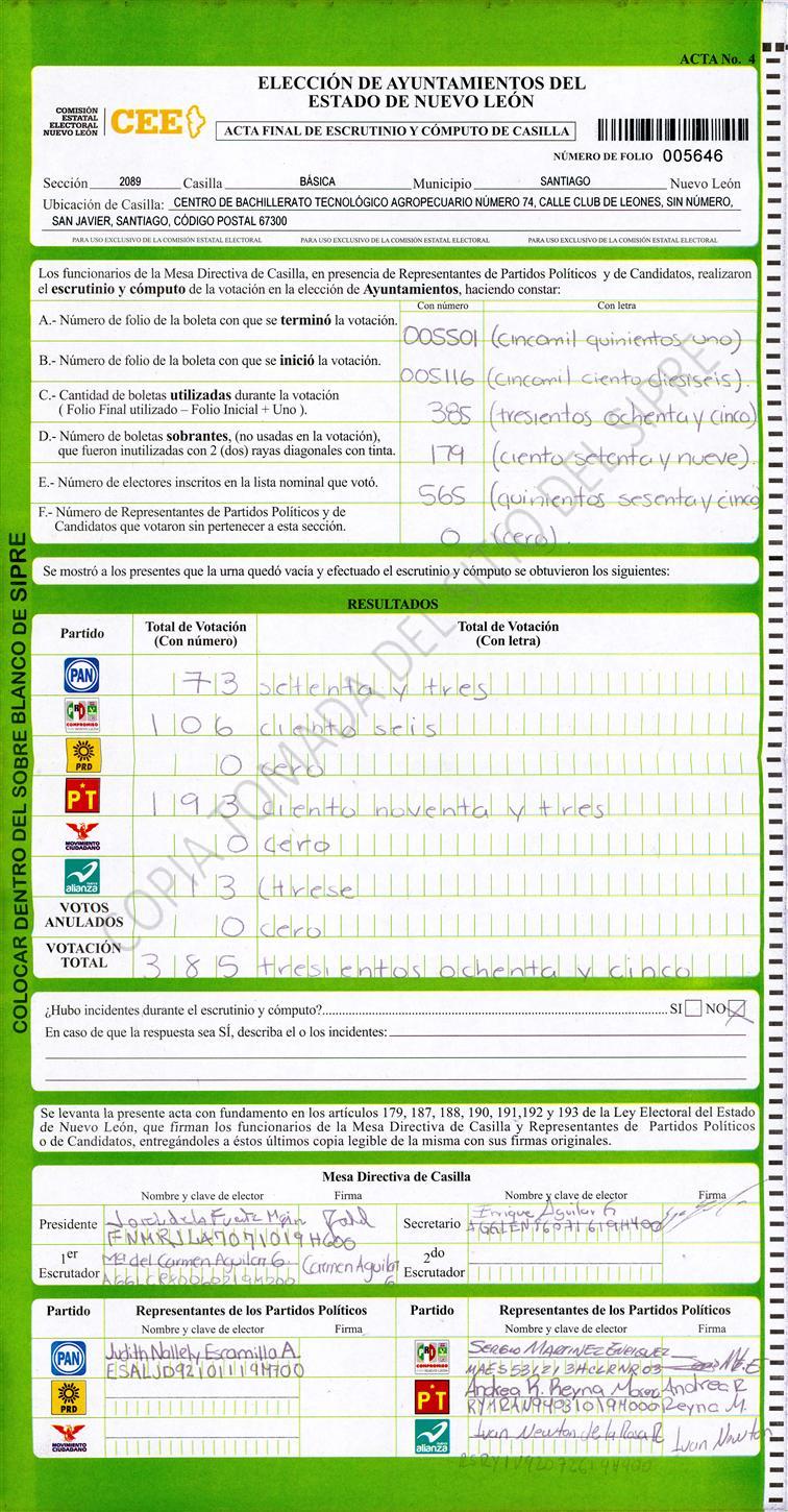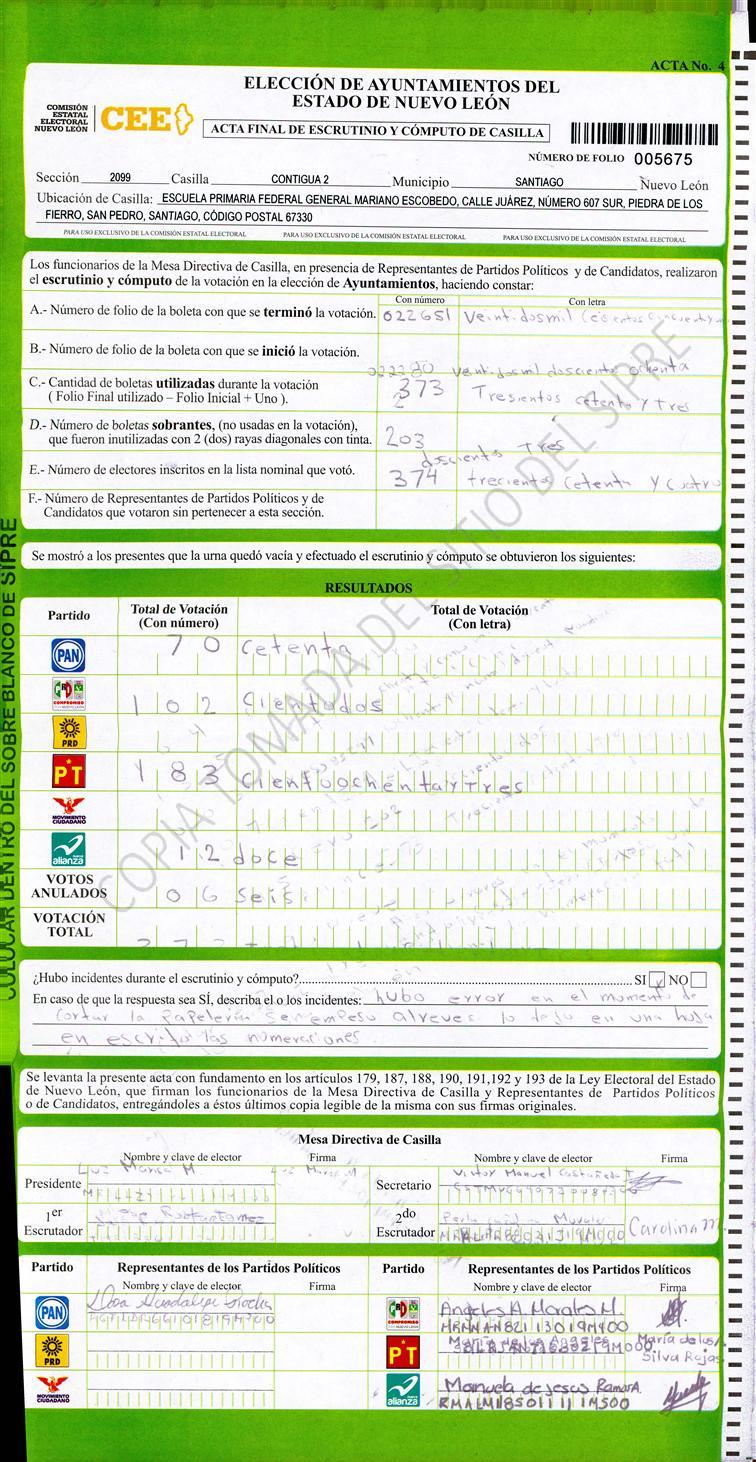 , (8) Copiado Movido , (9) Con Signos Inválidos , (10) Excede Lista Nominal , (11) Otra |