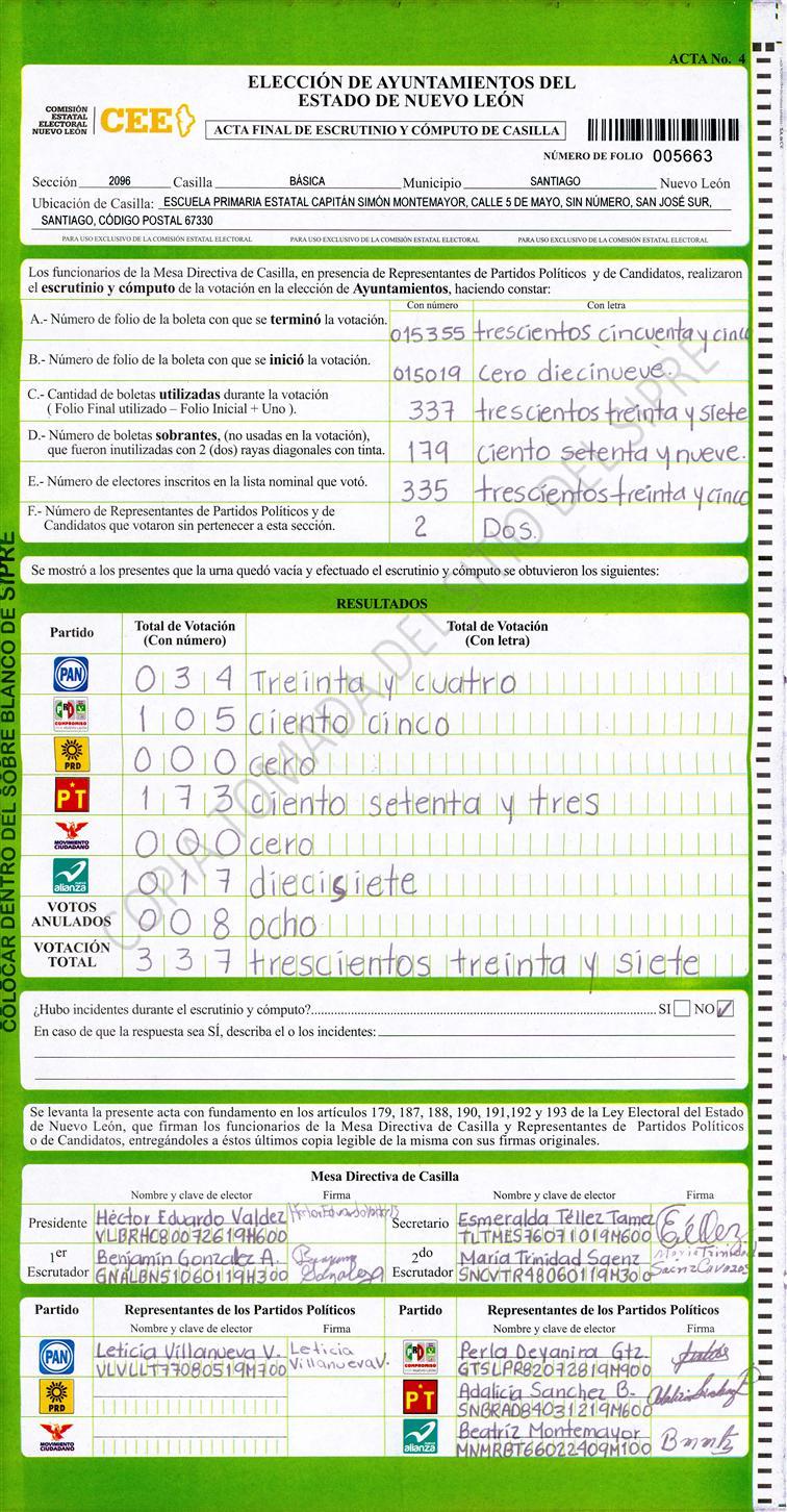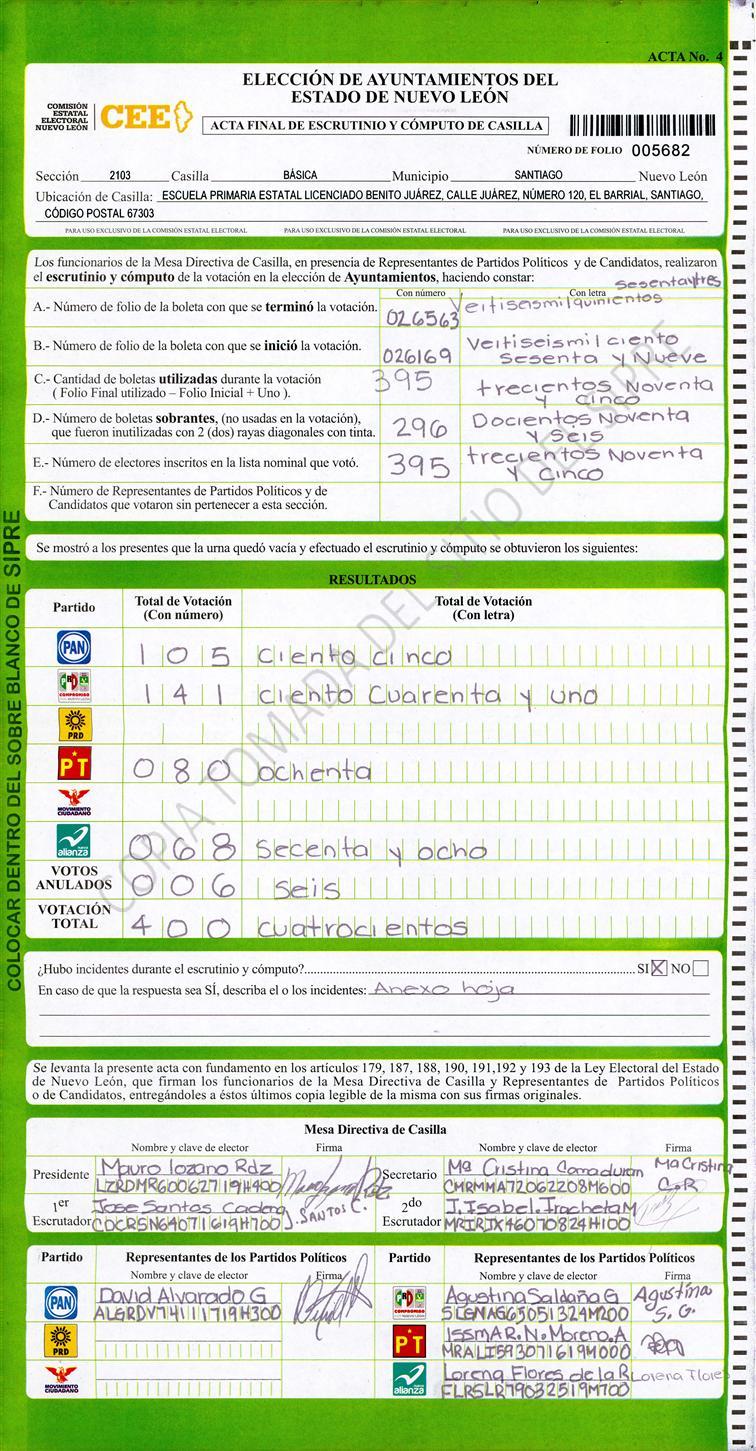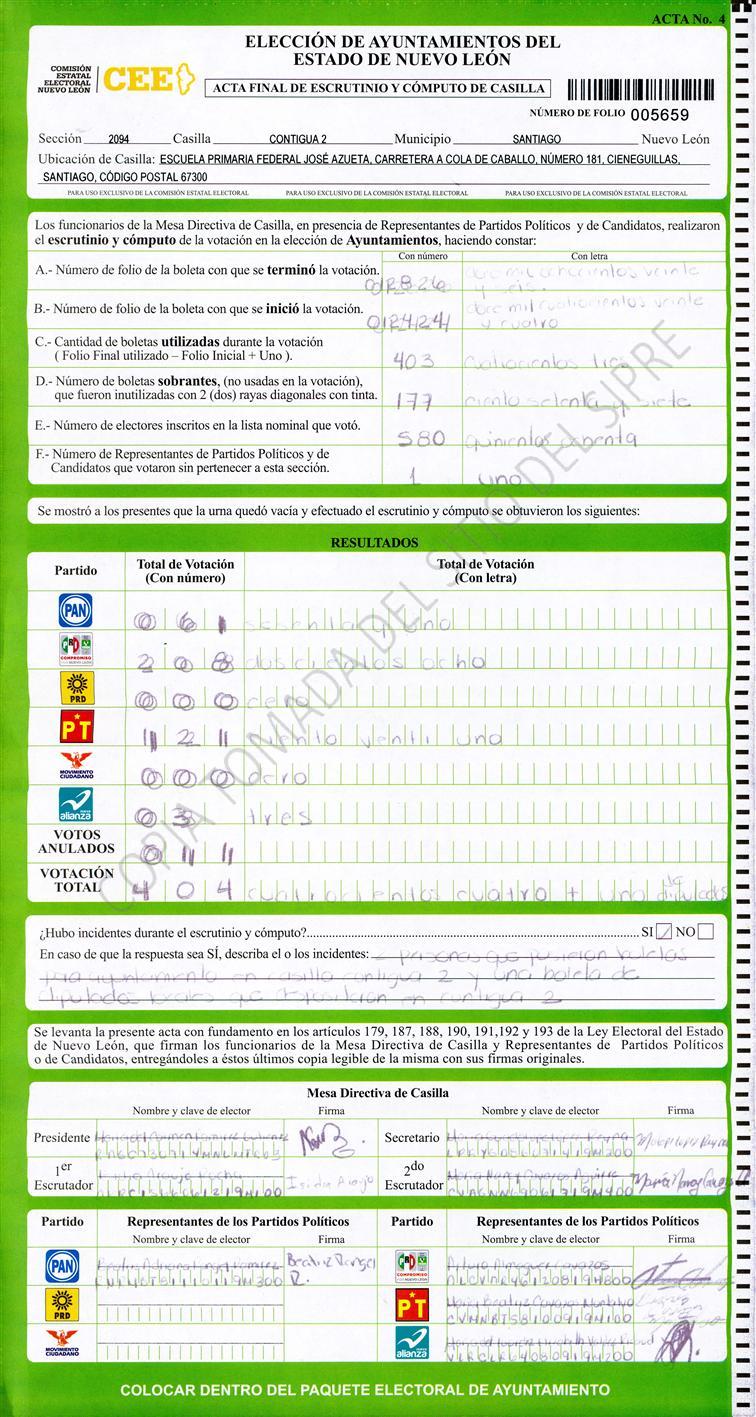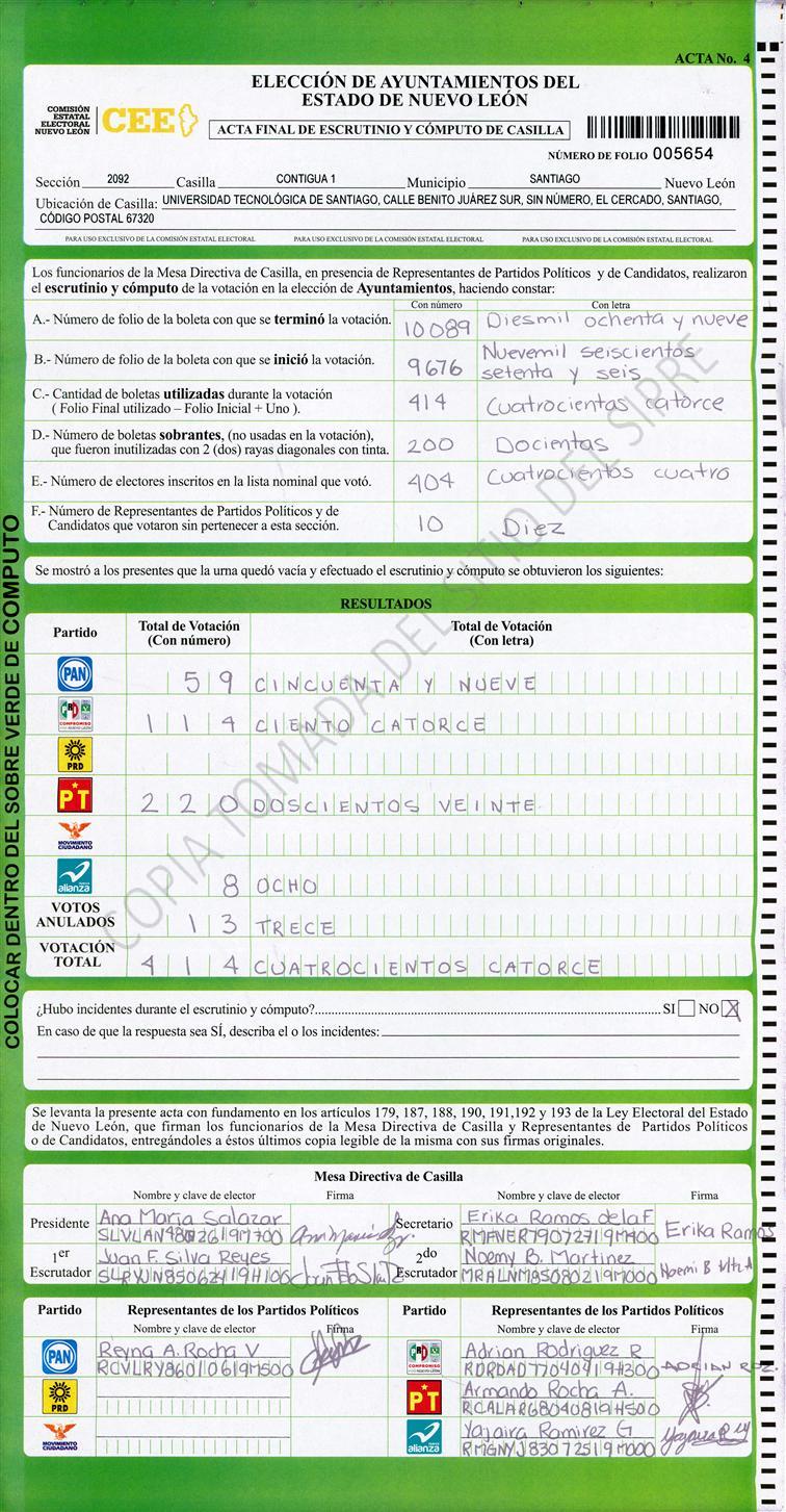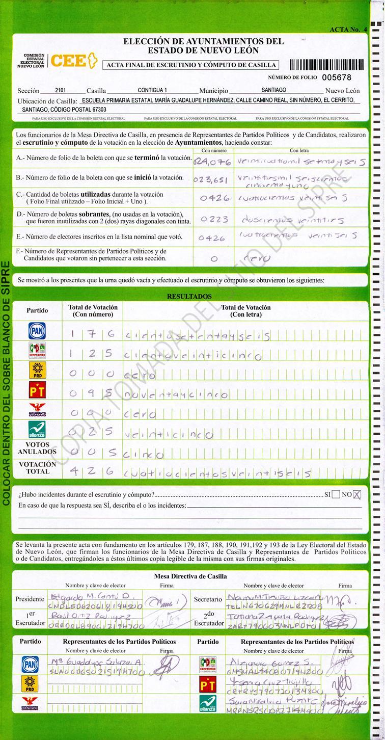 , (8) Copiado Movido , (9) Con Signos Inválidos , (10) Excede Lista Nominal , (11) Otra |