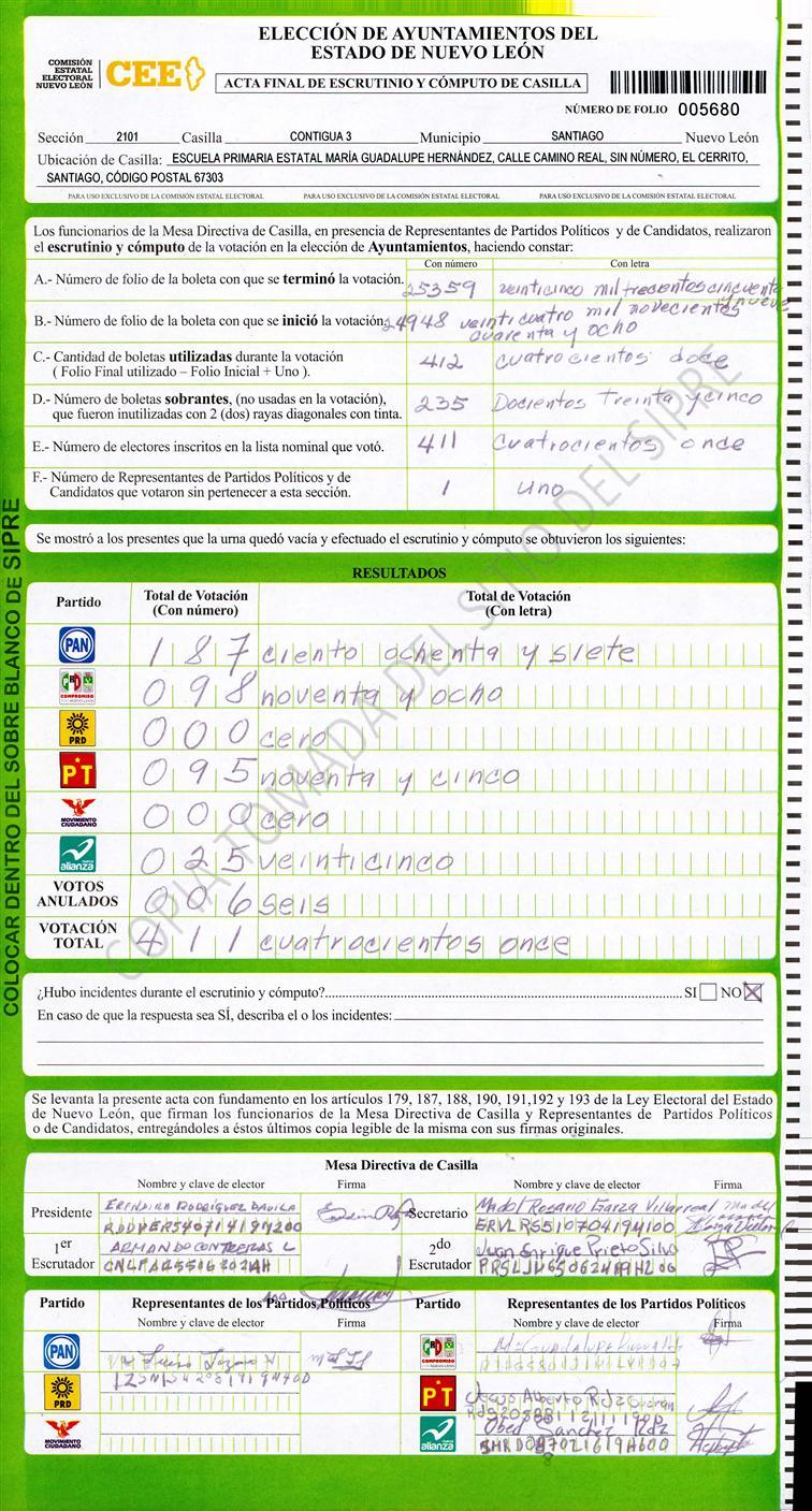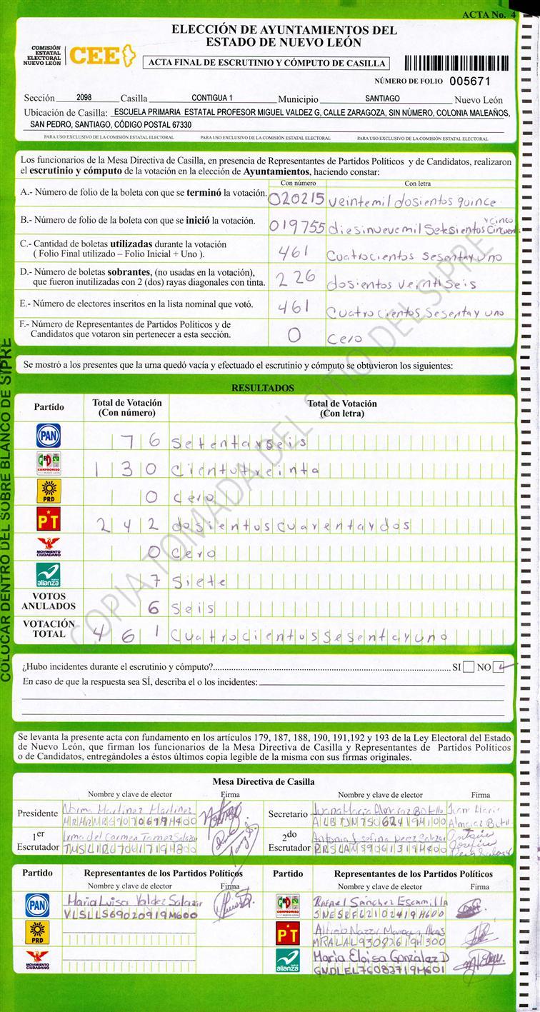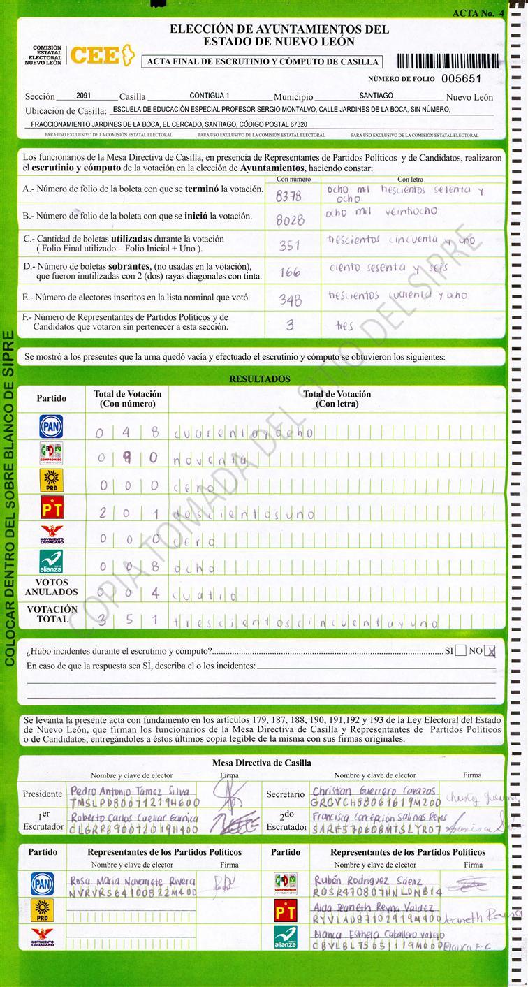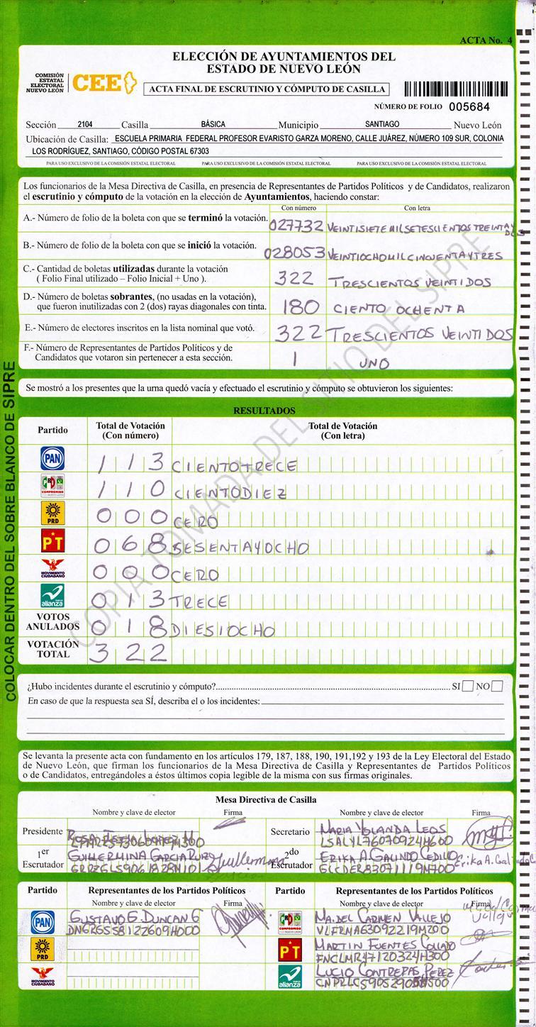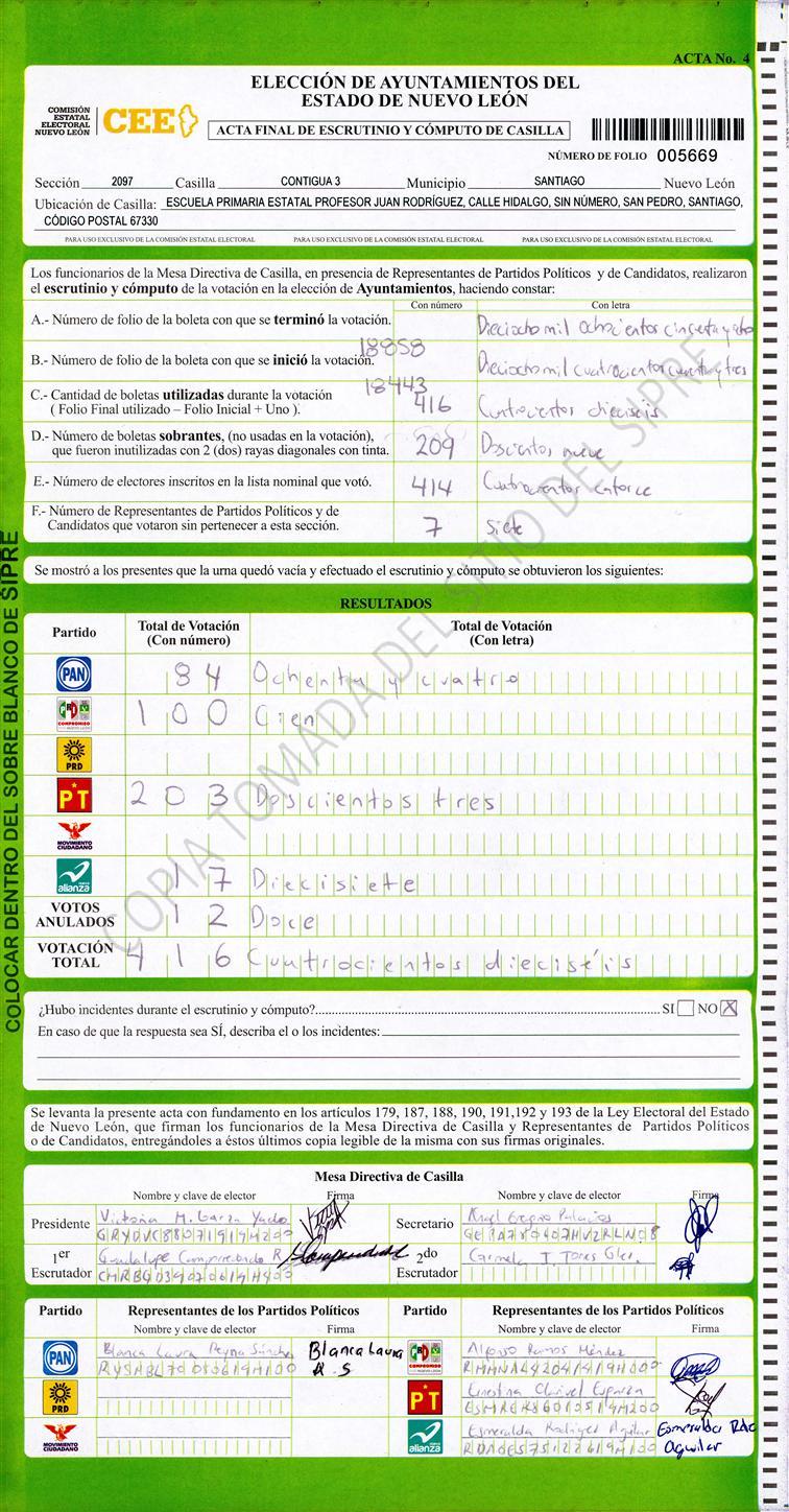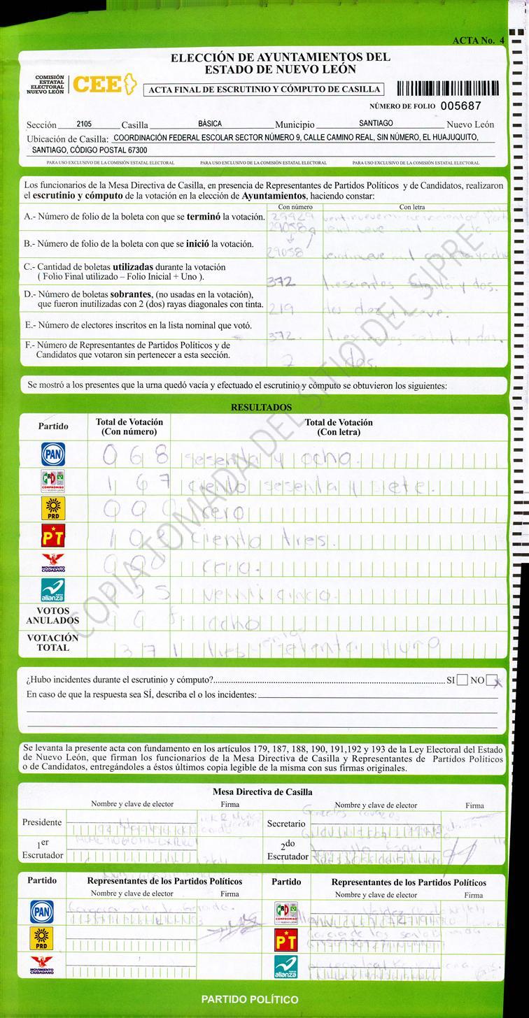 , (8) Copiado Movido , (9) Con Signos Inválidos , (10) Excede Lista Nominal , (11) Otra |