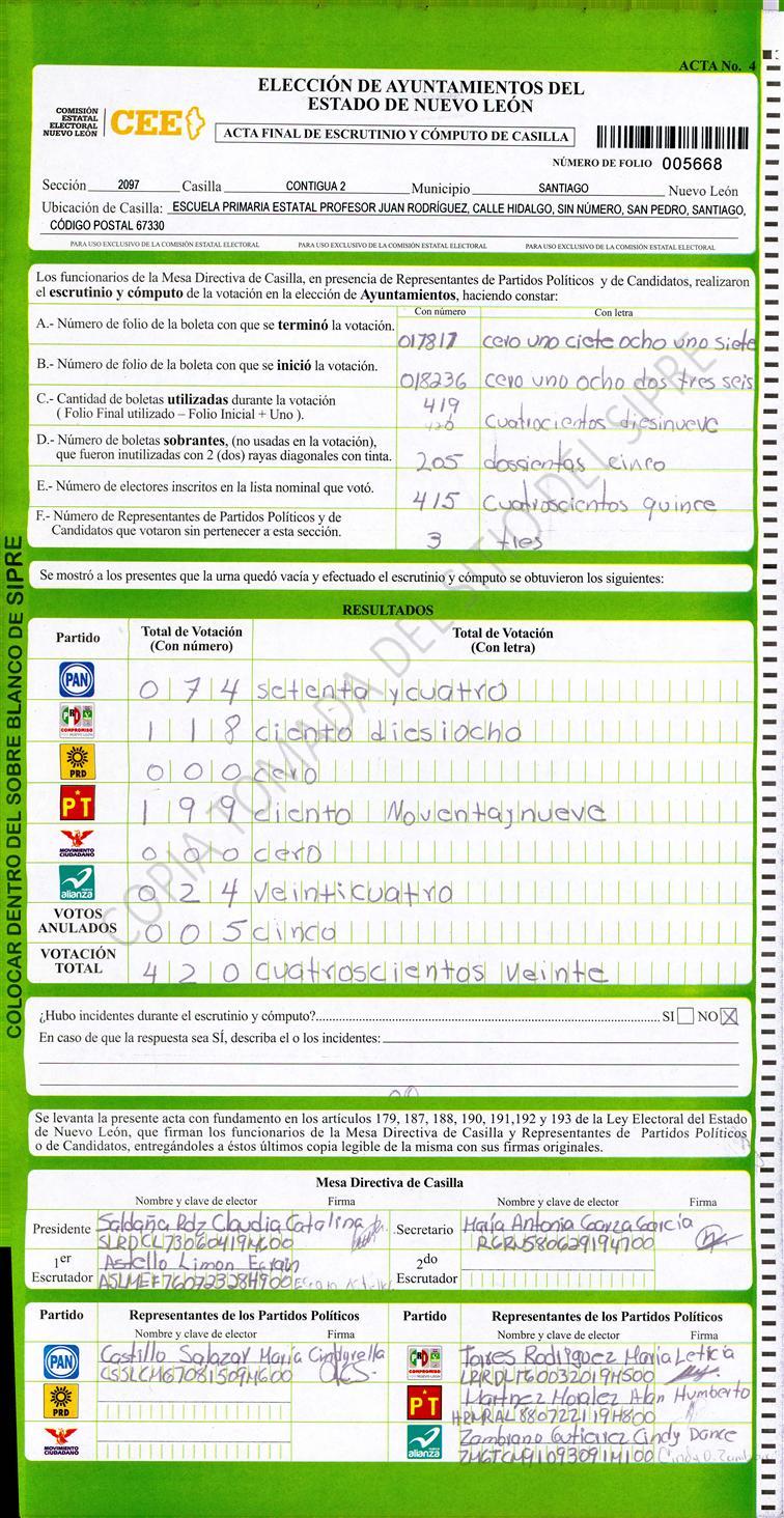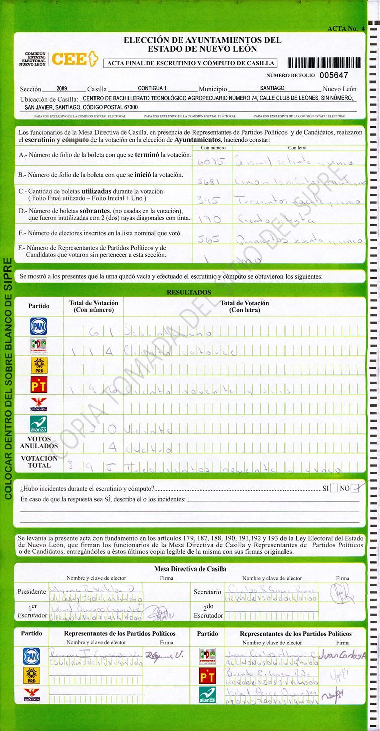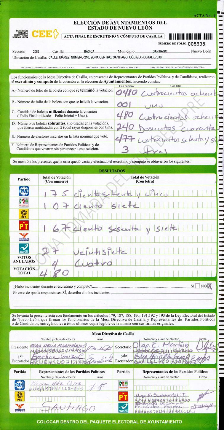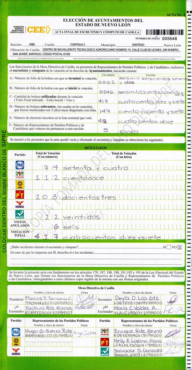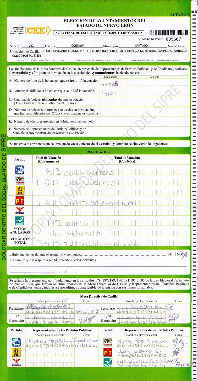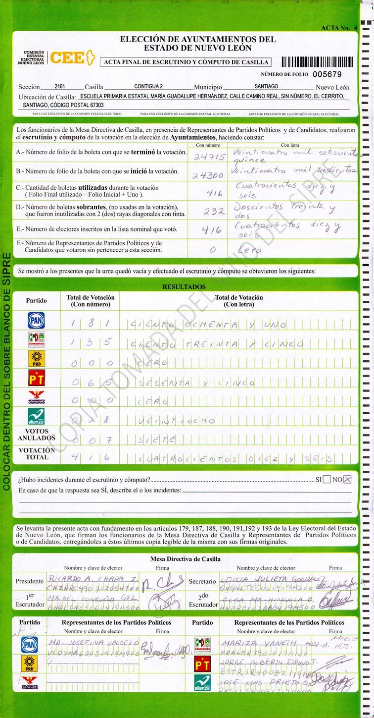 , (8) Copiado Movido , (9) Con Signos Inválidos , (10) Excede Lista Nominal , (11) Otra |