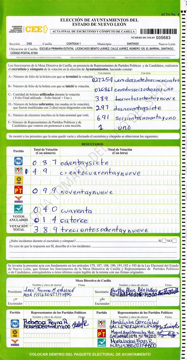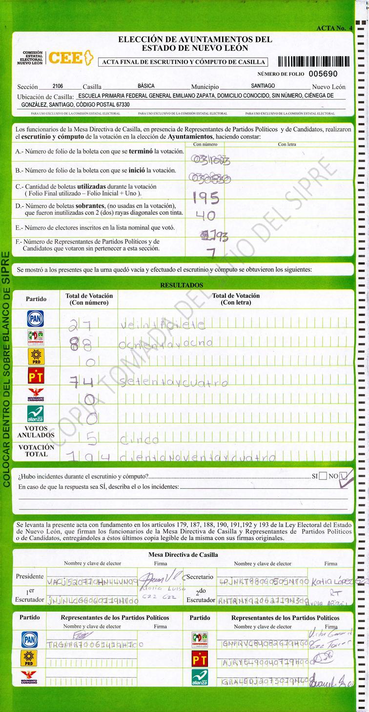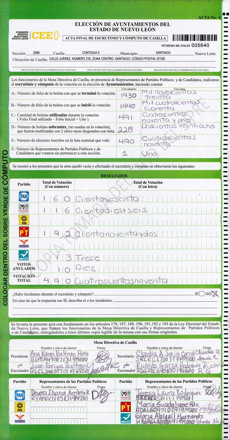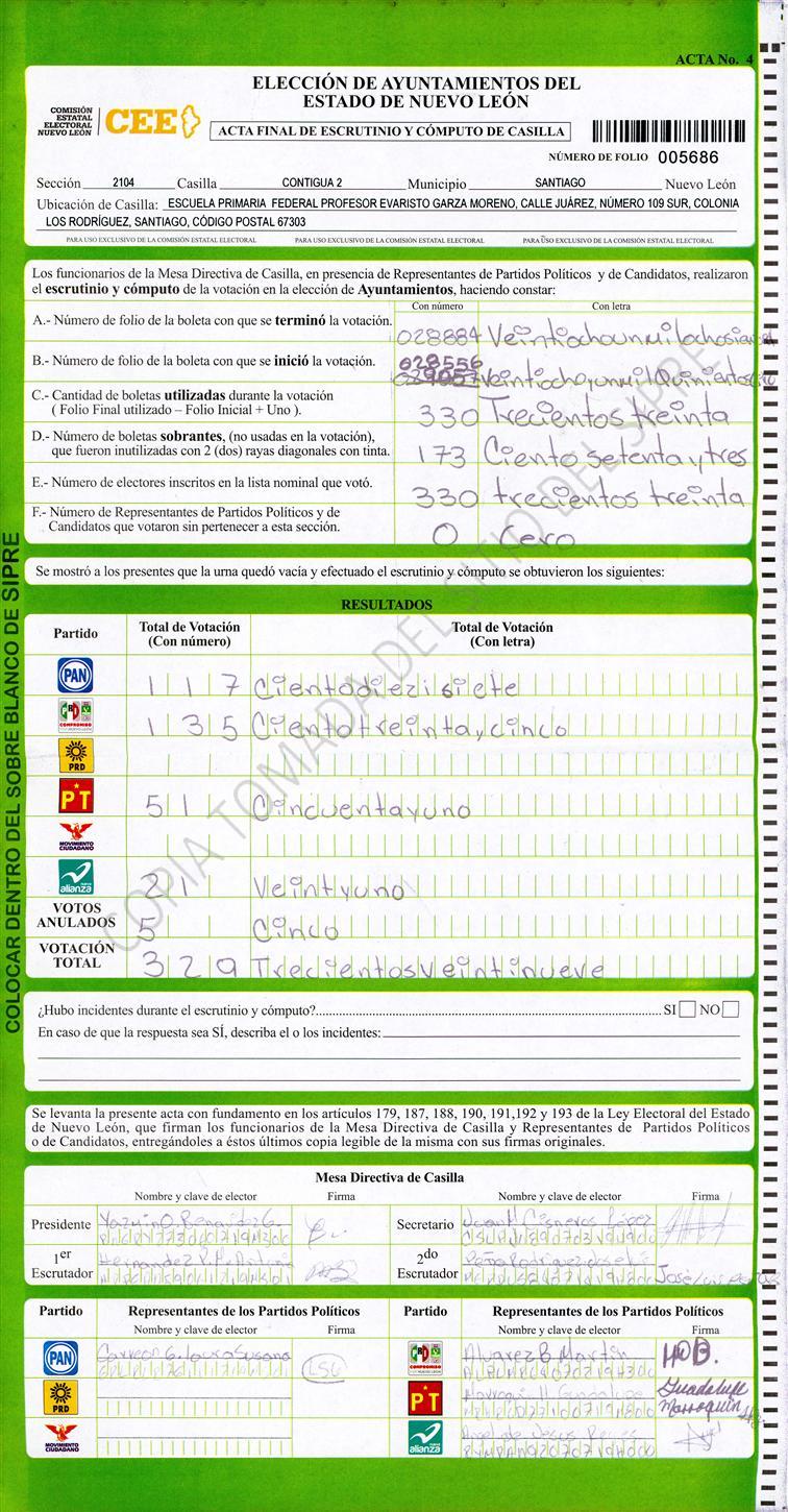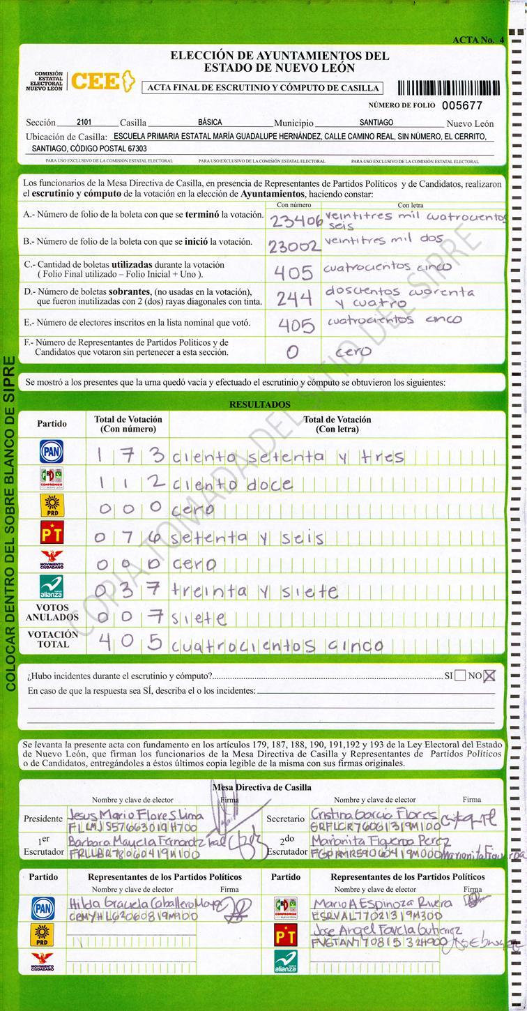 , (8) Copiado Movido , (9) Con Signos Inválidos , (10) Excede Lista Nominal , (11) Otra |