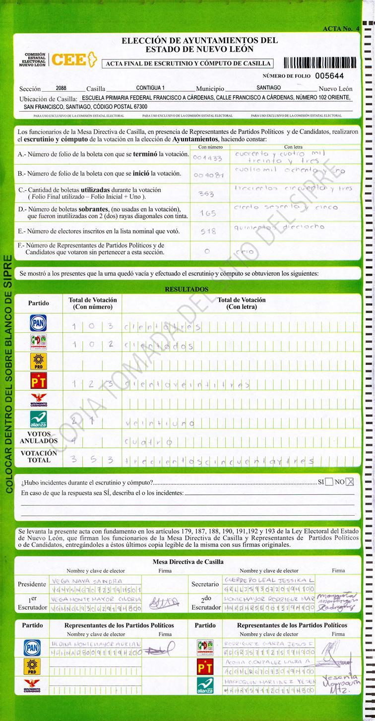 | Resultado | Casillas | Gráfica de Votación | Gráfica de Porcentajes |