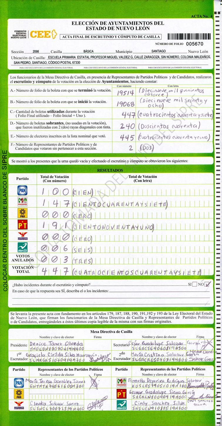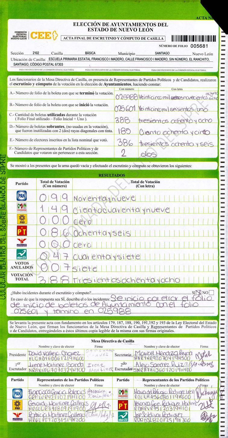 Acta con Incidencia: No hay acta |