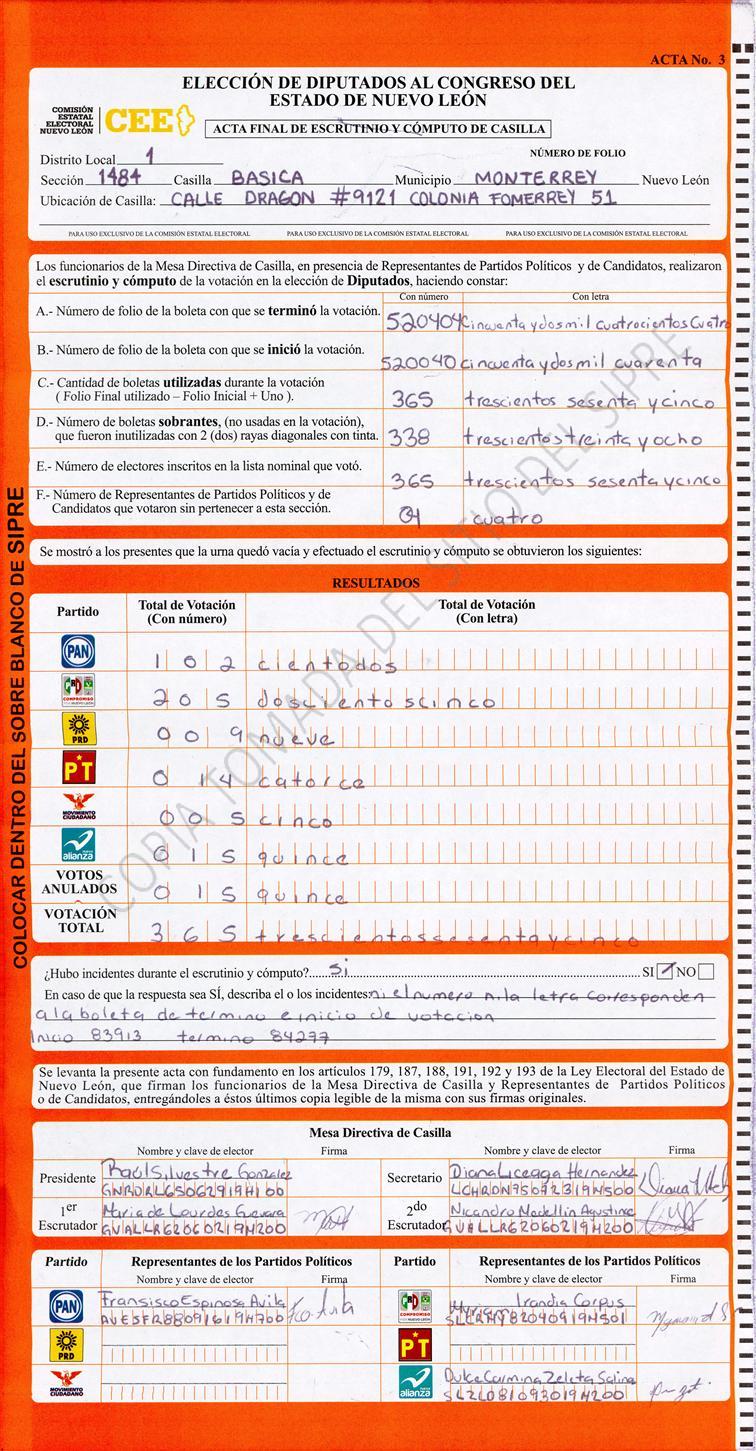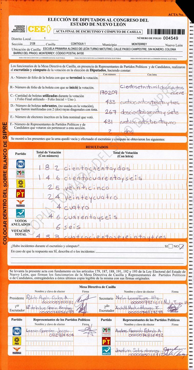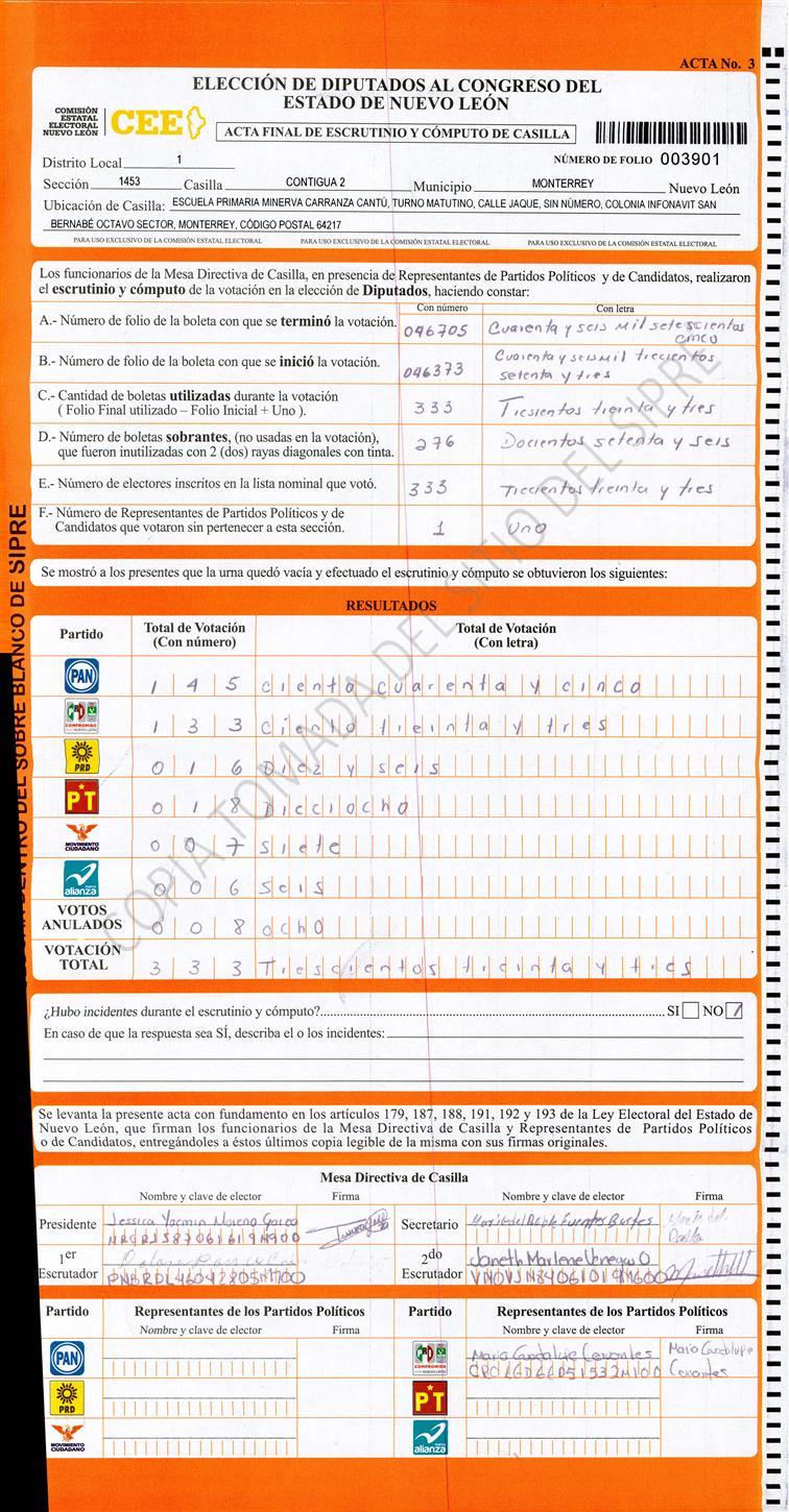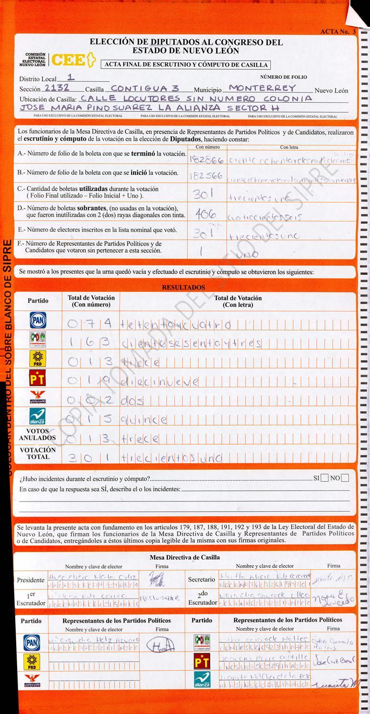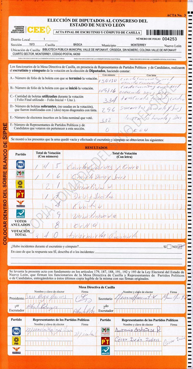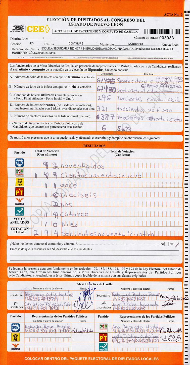 Diputados Locales, Primer Distrito |