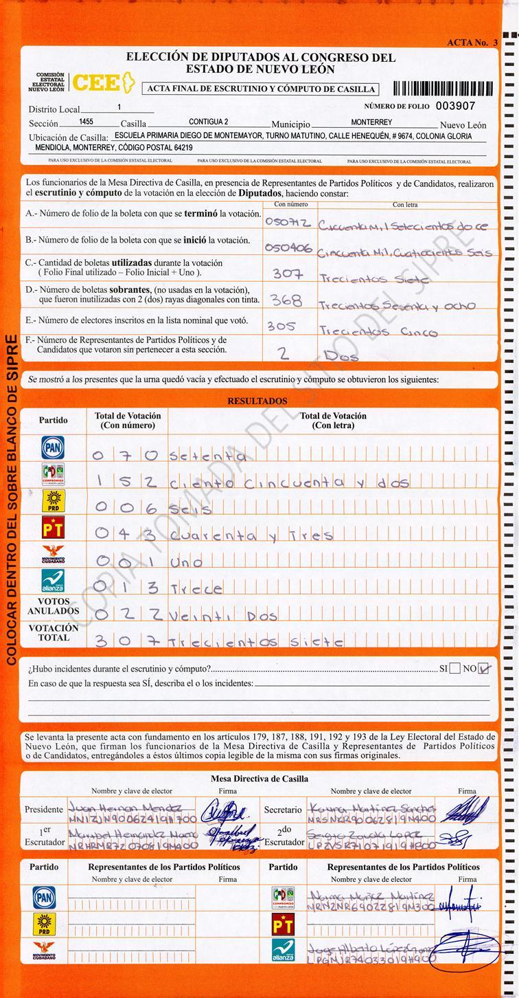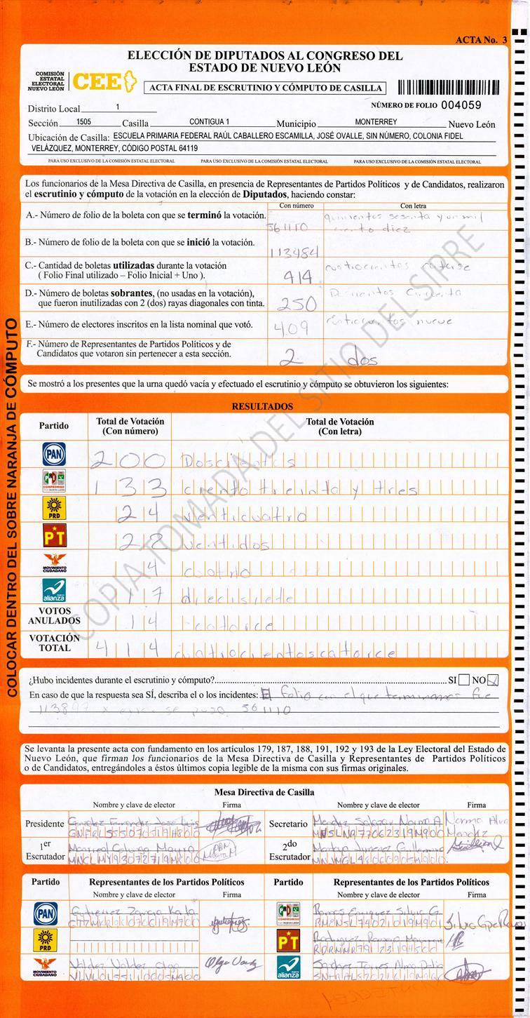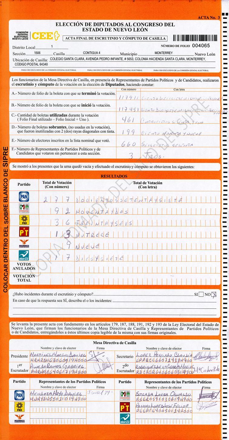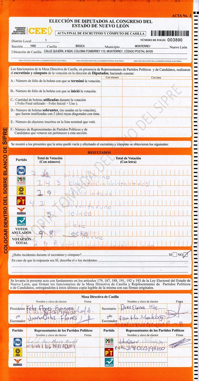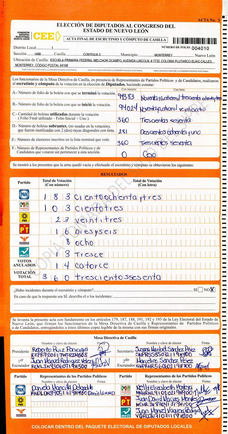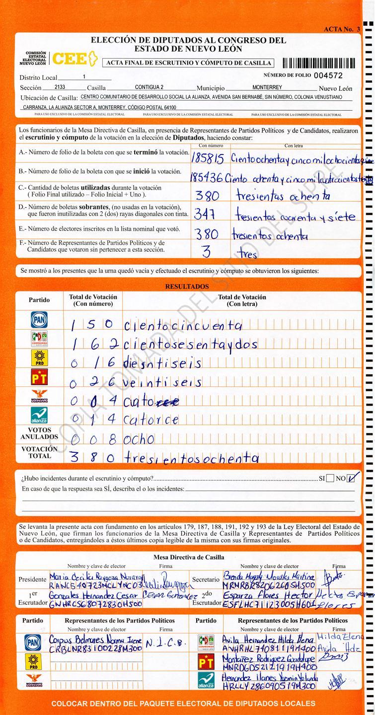 Diputados Locales, Primer Distrito |
