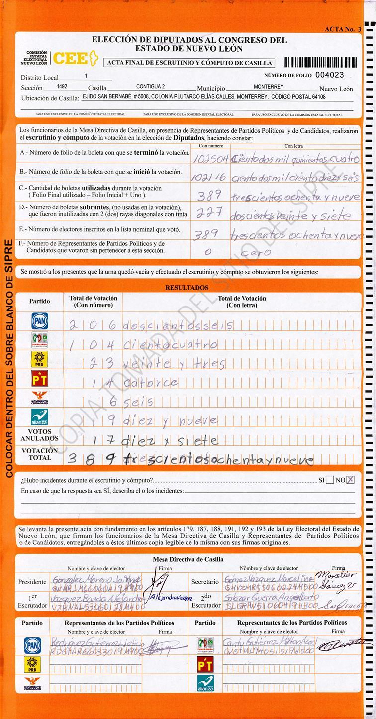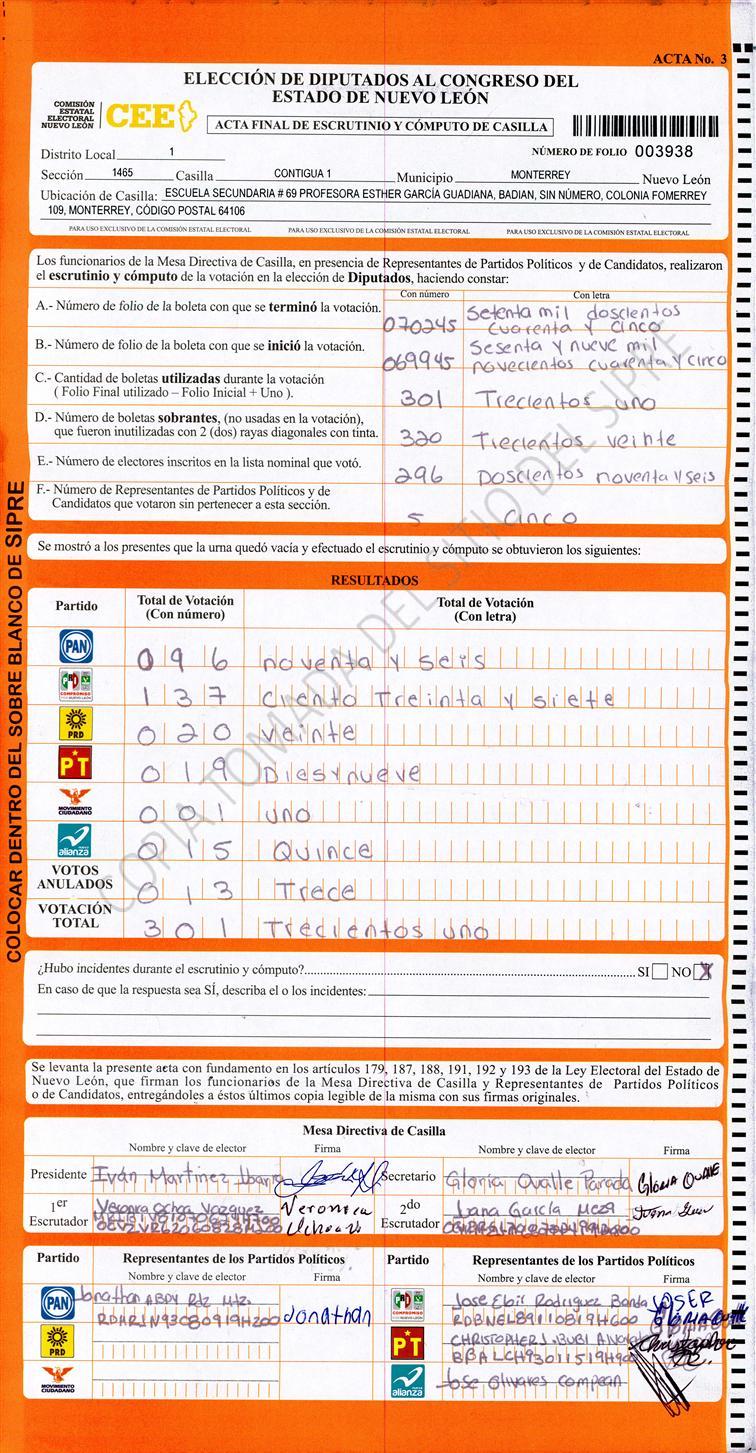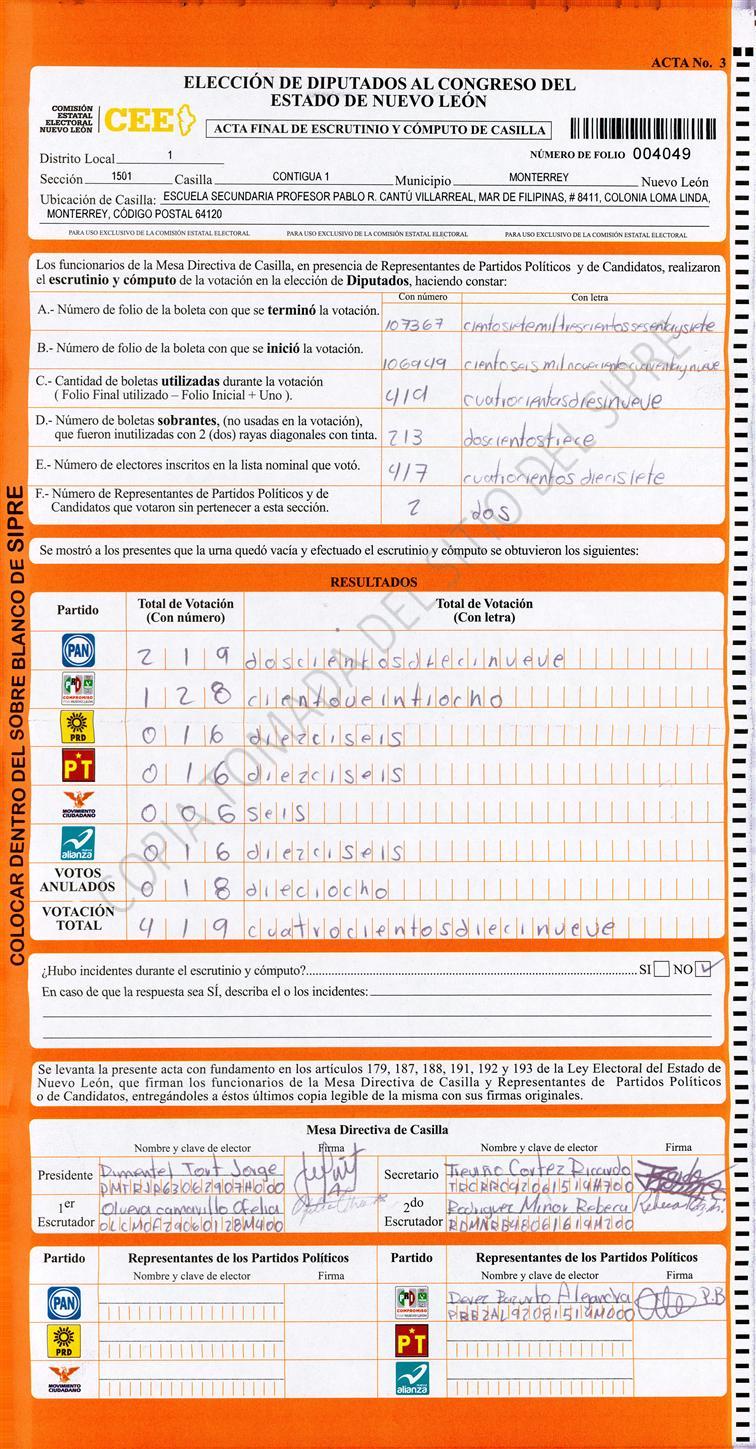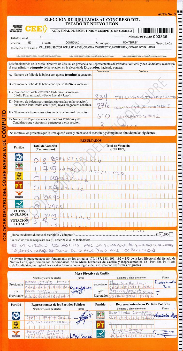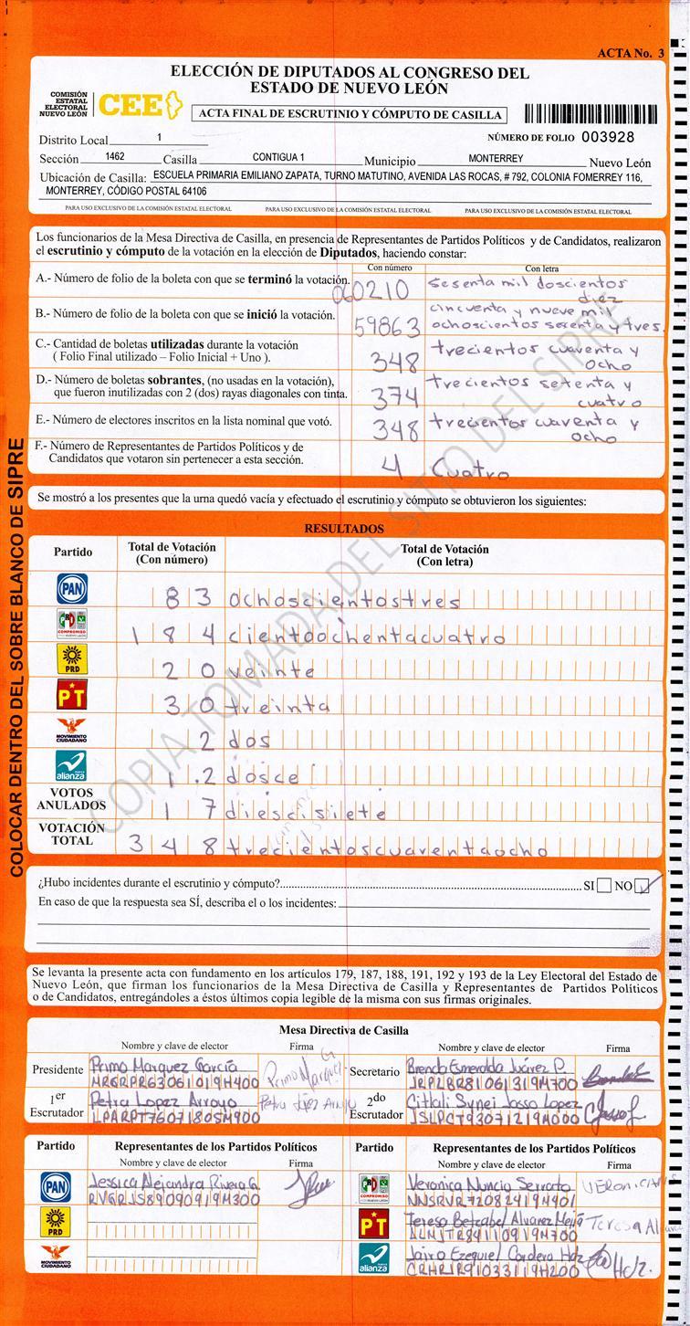 Diputados Locales, Primer Distrito |
