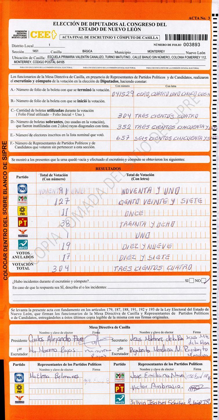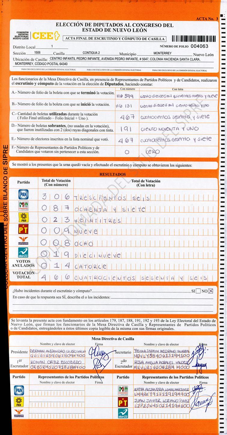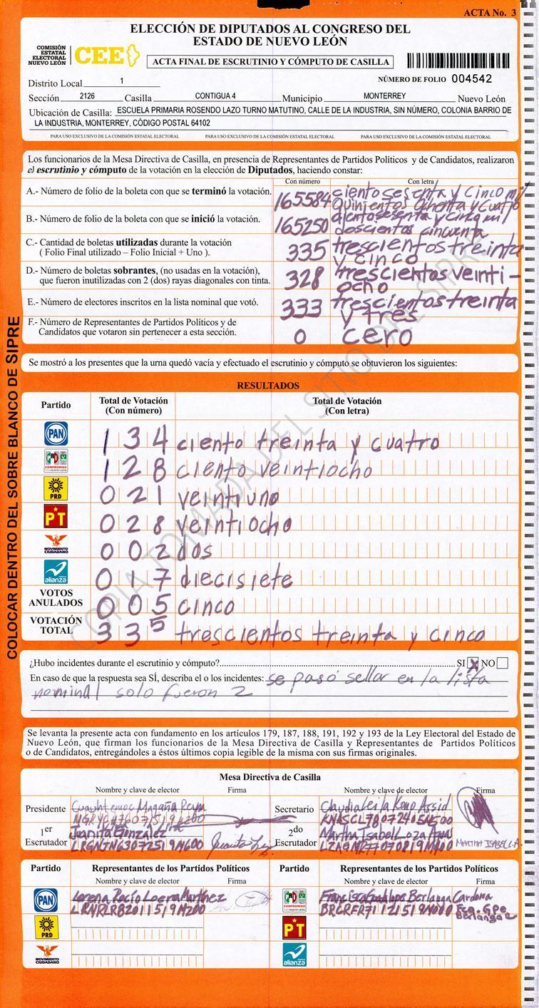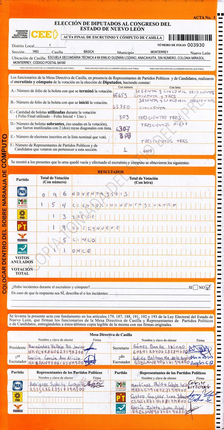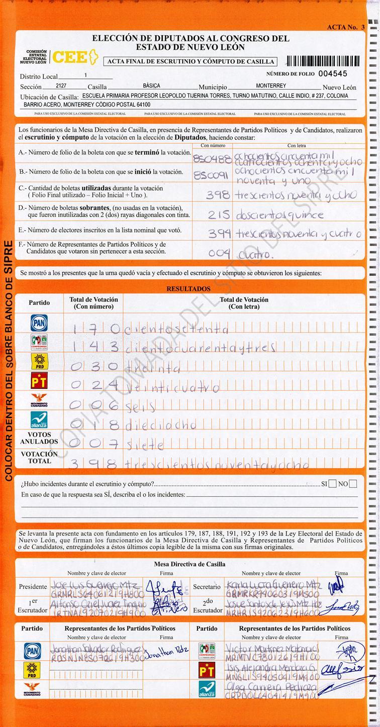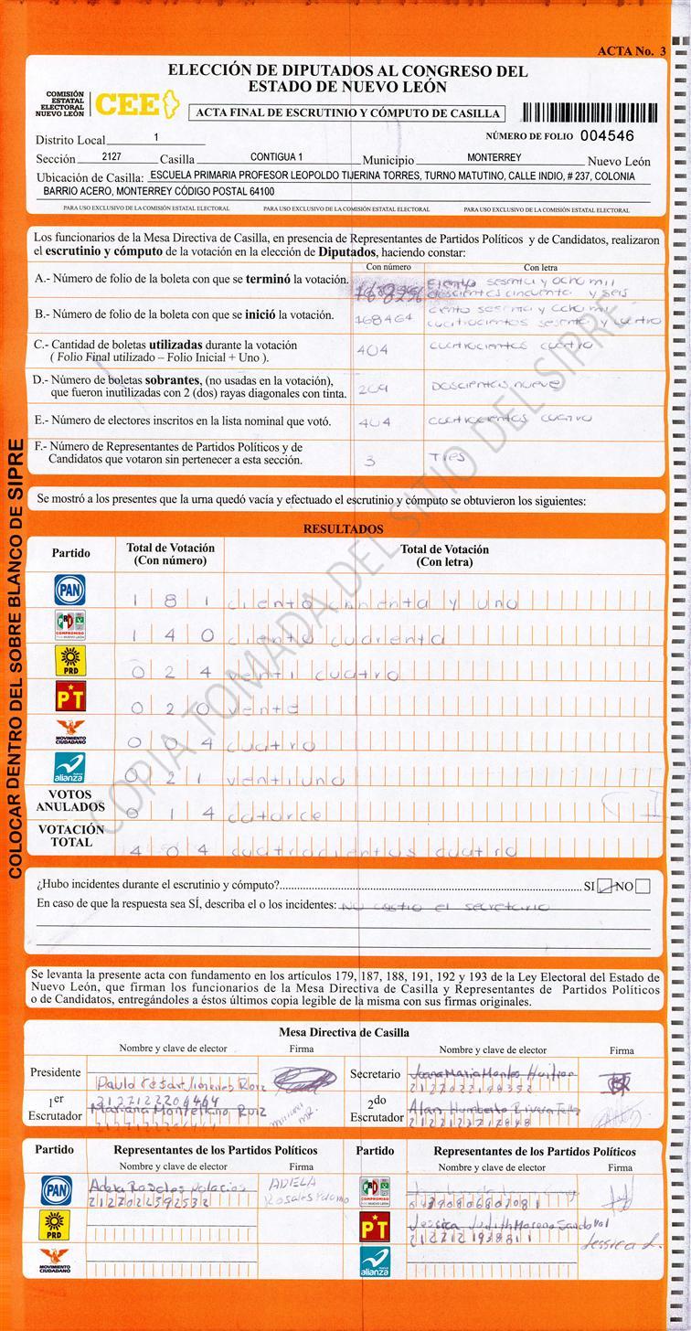 Diputados Locales, Primer Distrito |