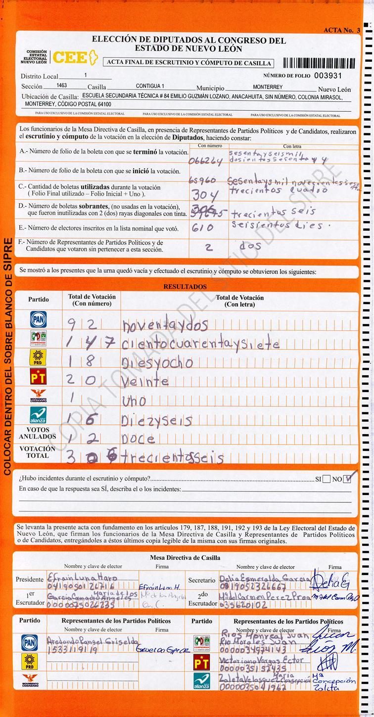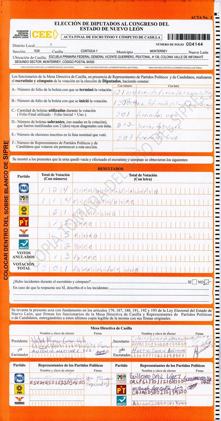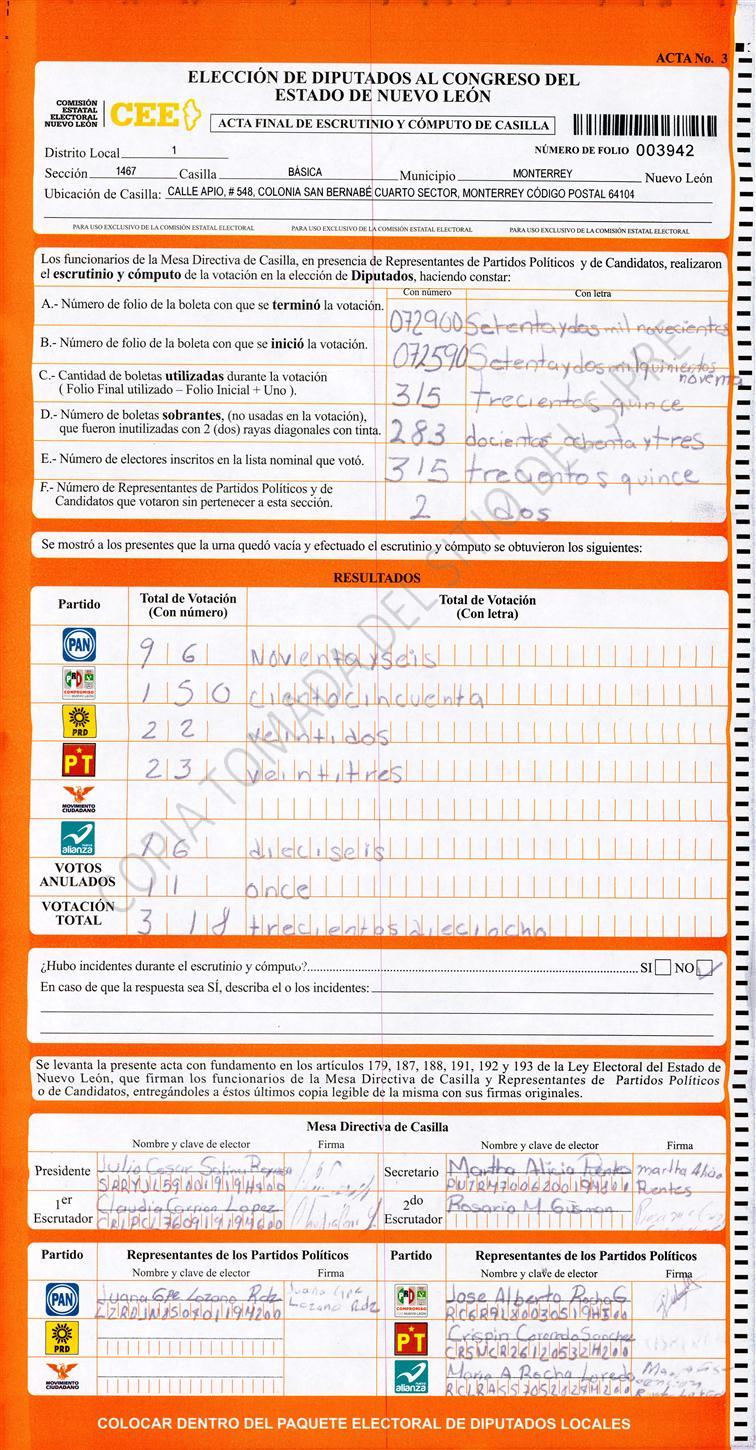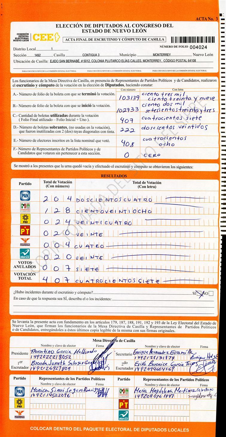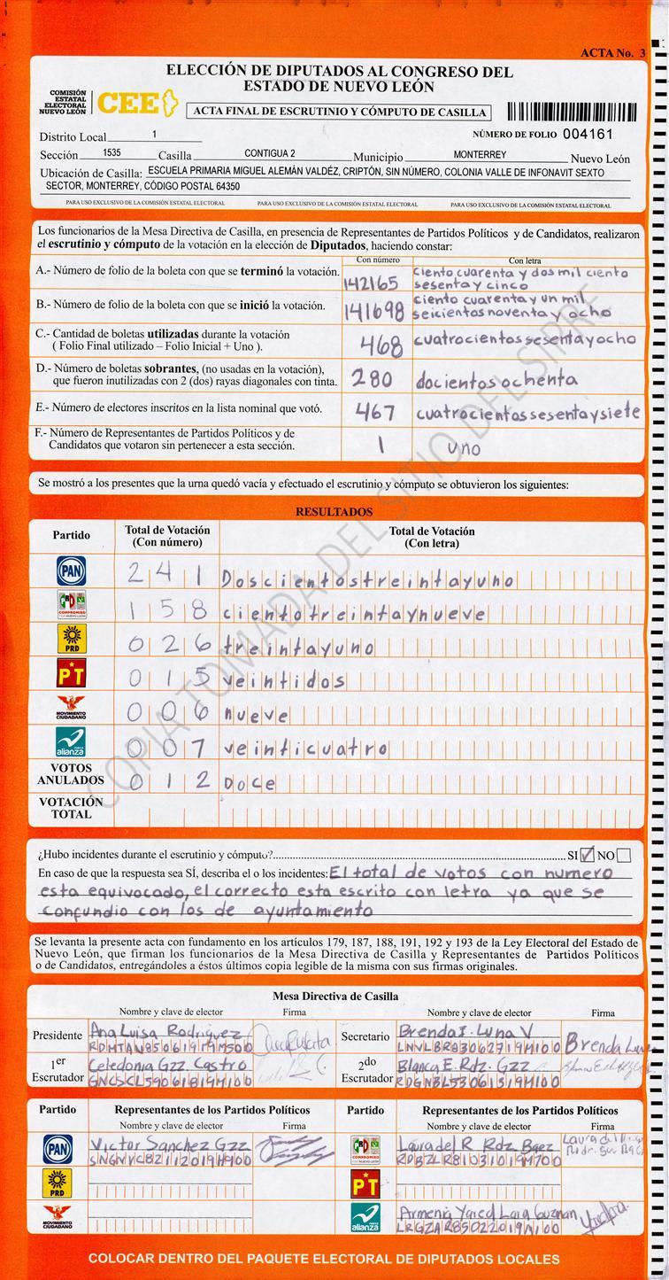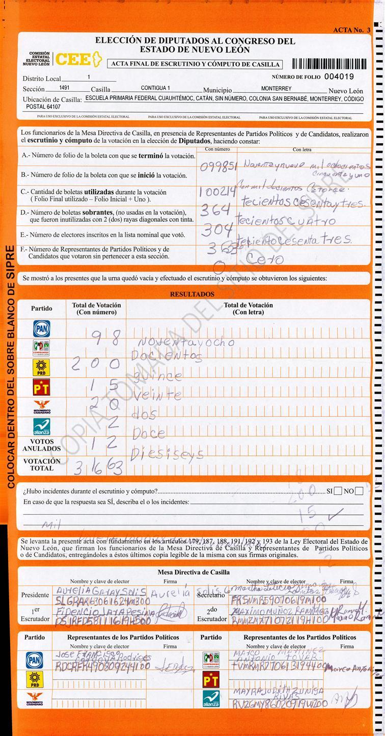 Diputados Locales, Primer Distrito |