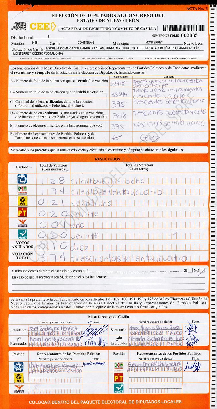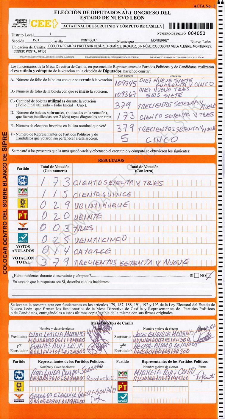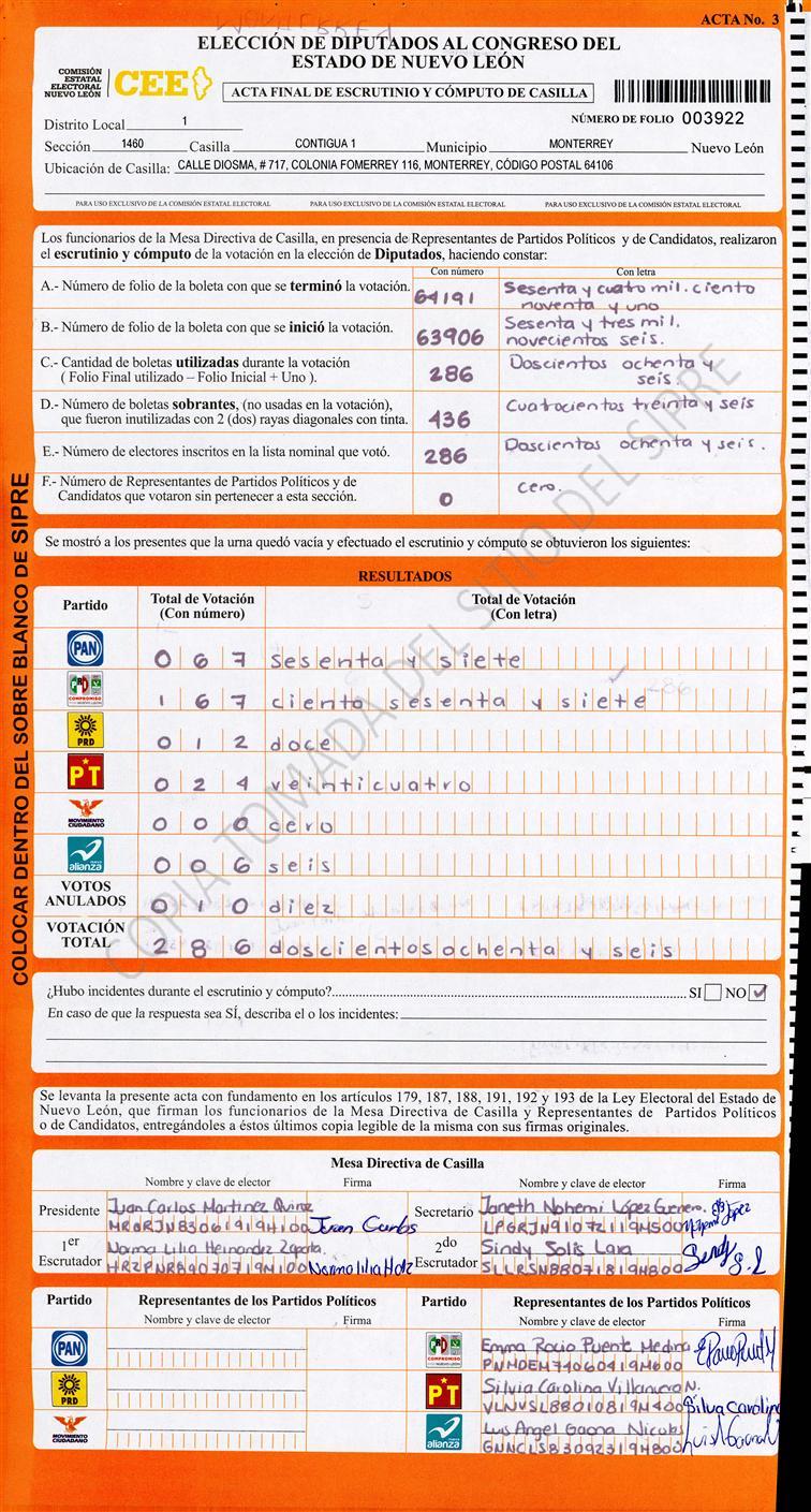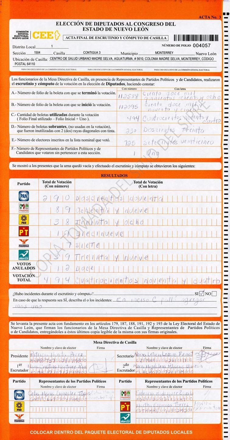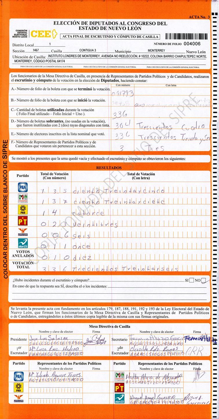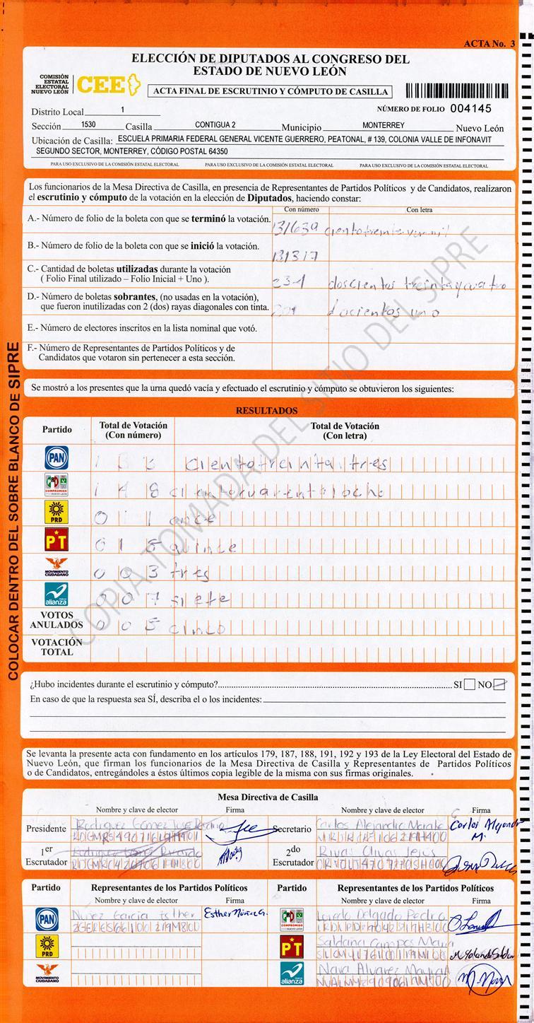 Diputados Locales, Primer Distrito |