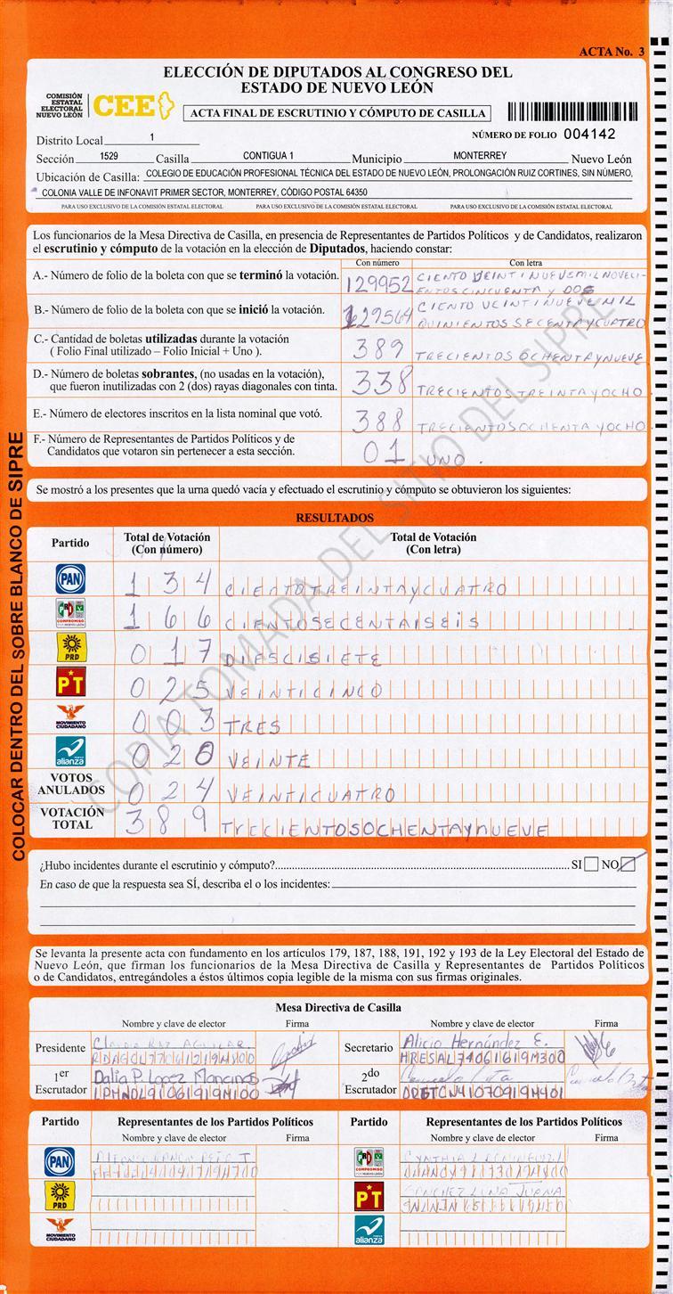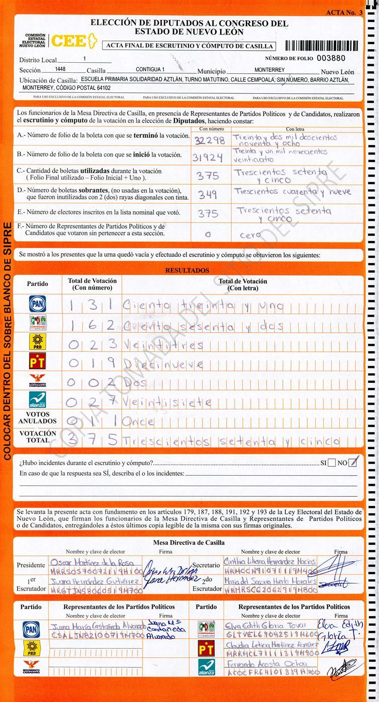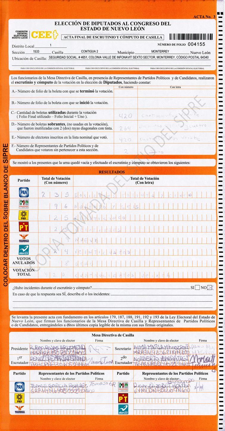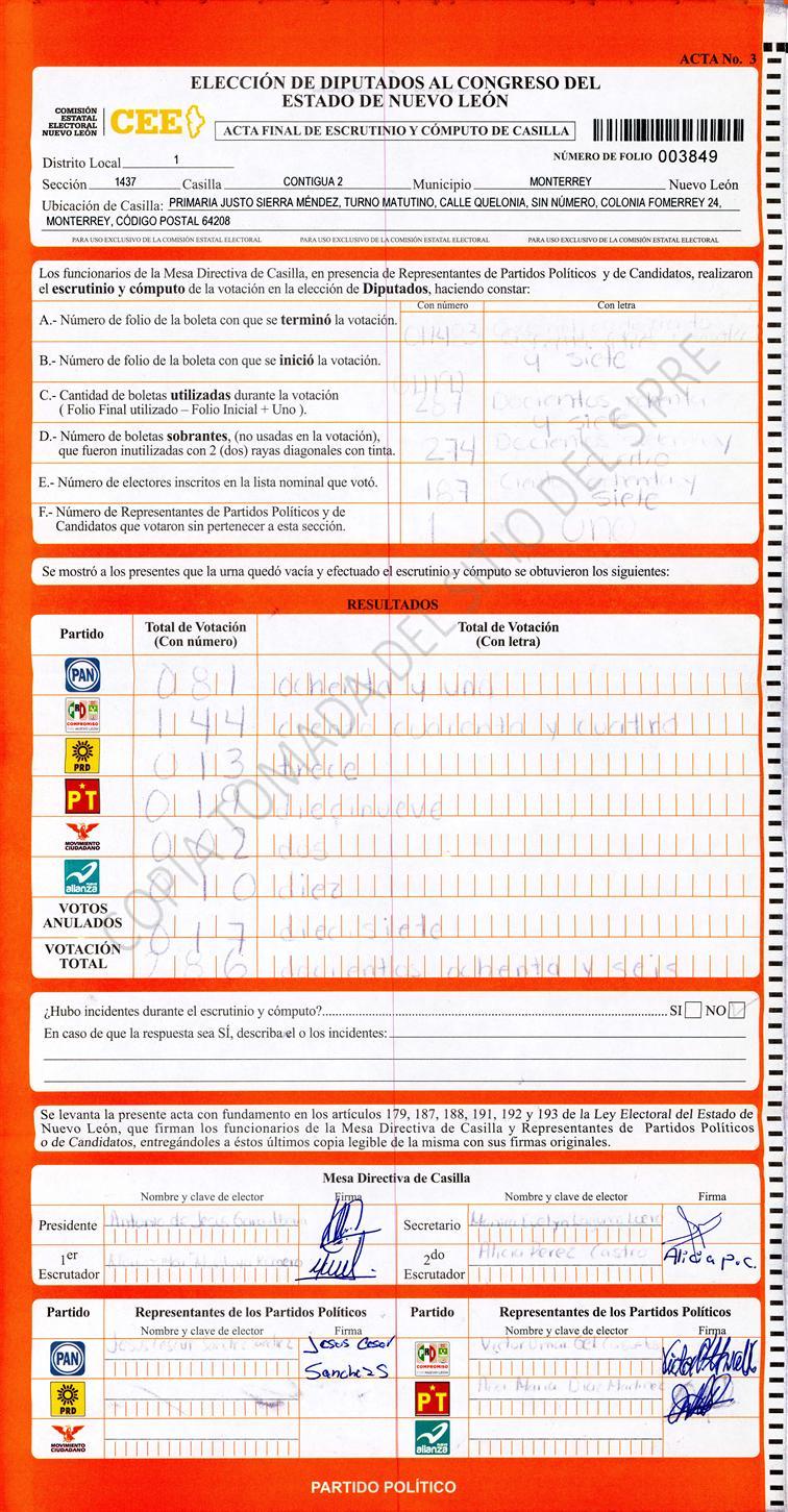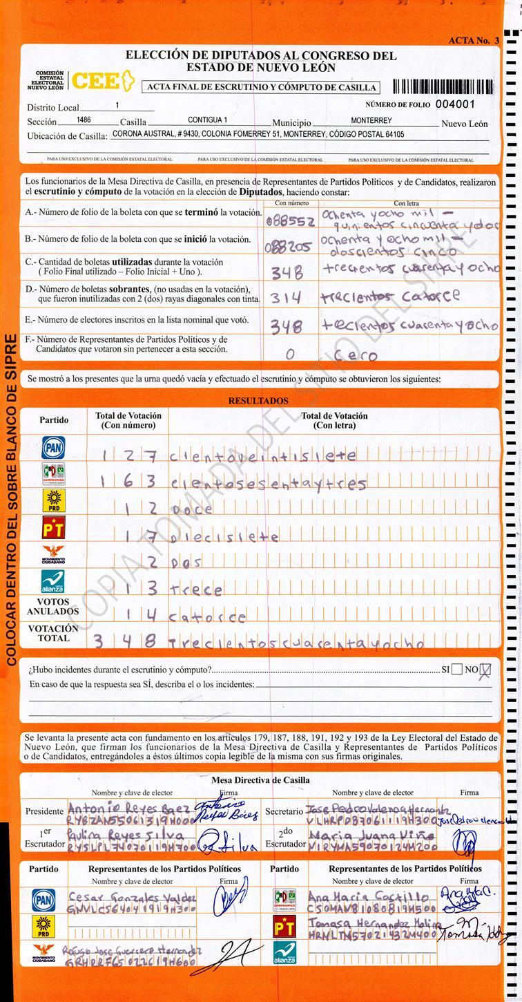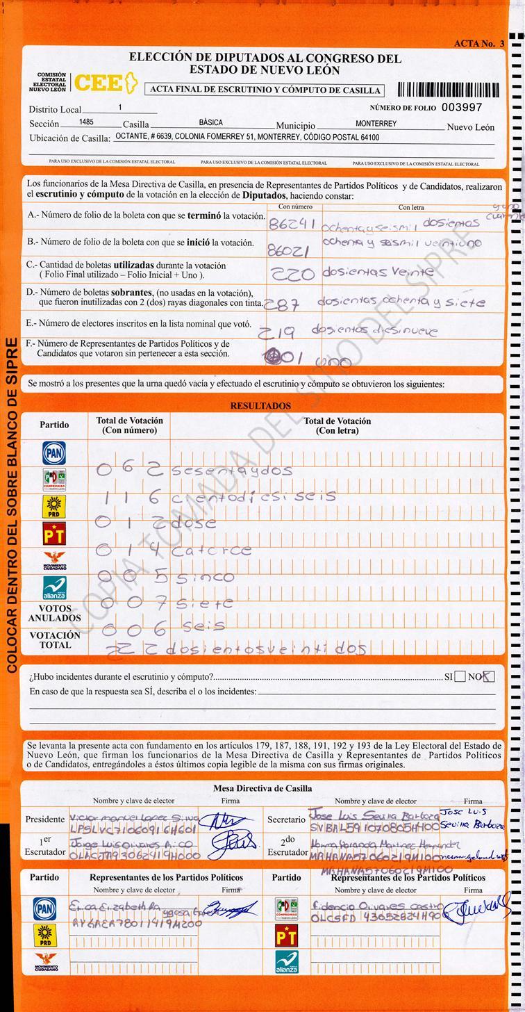 Diputados Locales, Primer Distrito |