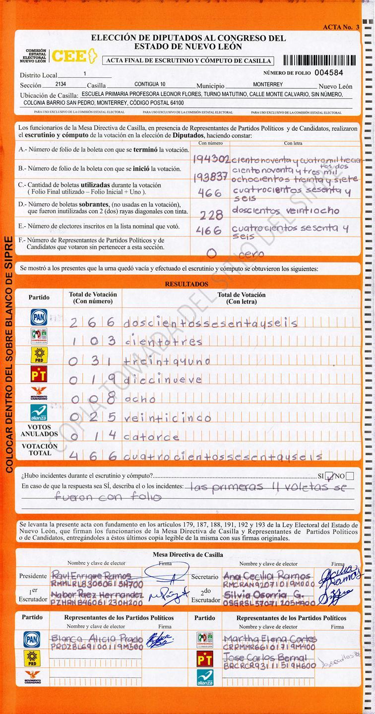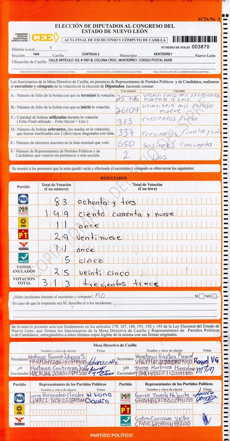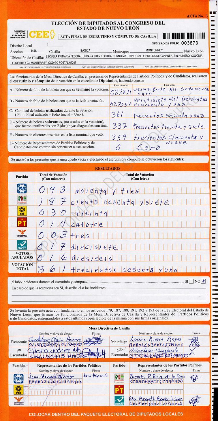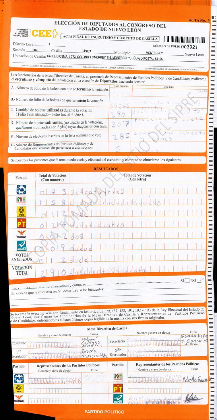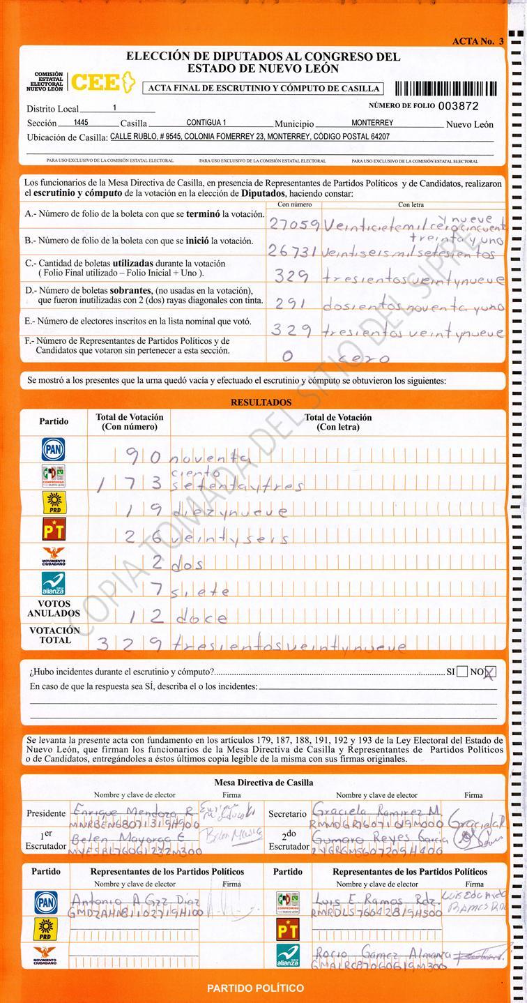 Diputados Locales, Primer Distrito |